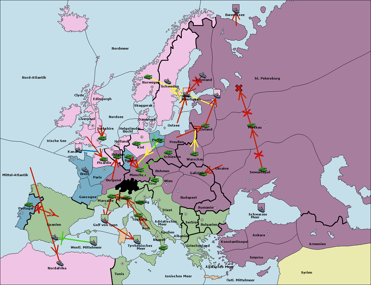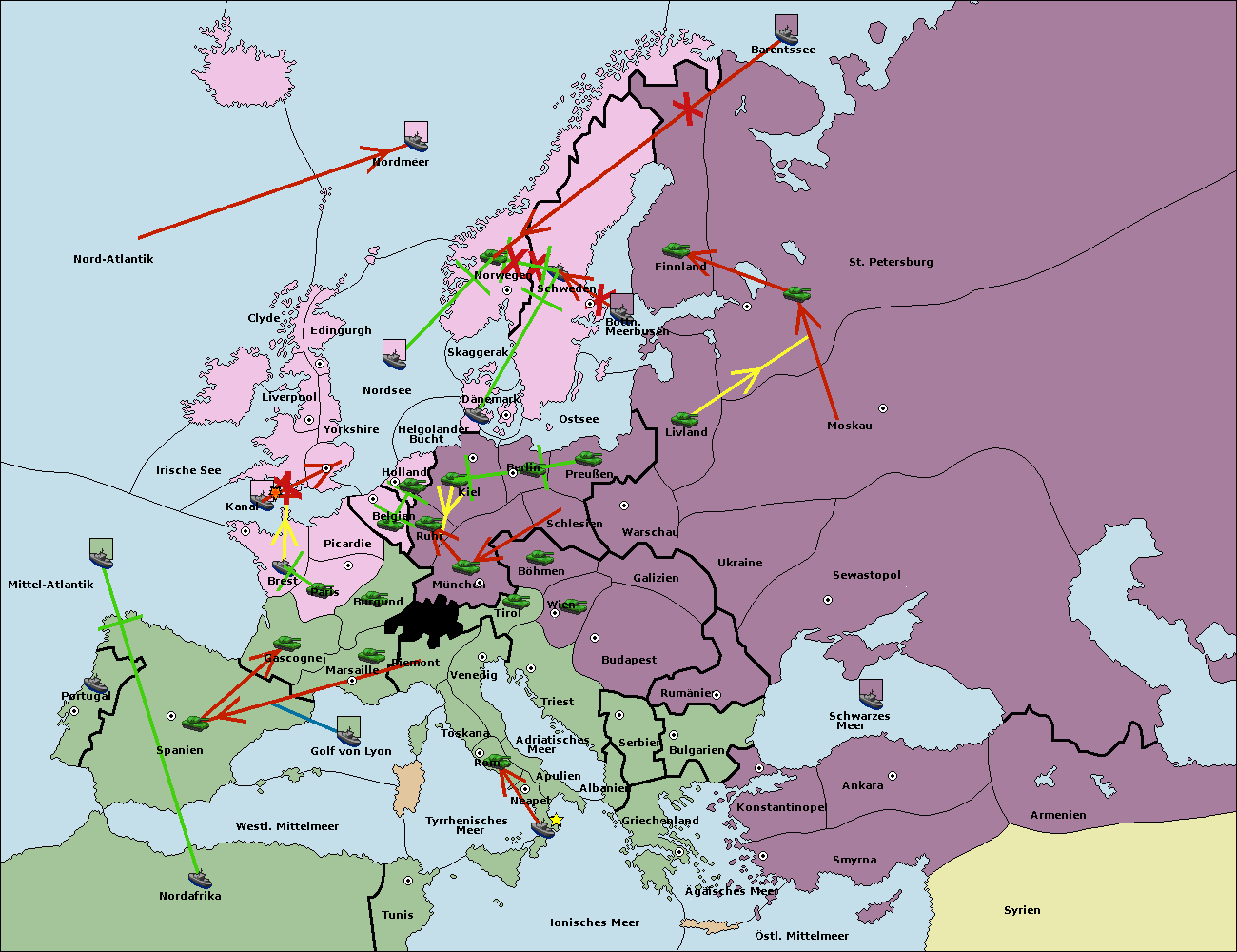 • Die Flotte in St. Petersburg (Nordküste) move nach Norwegen.