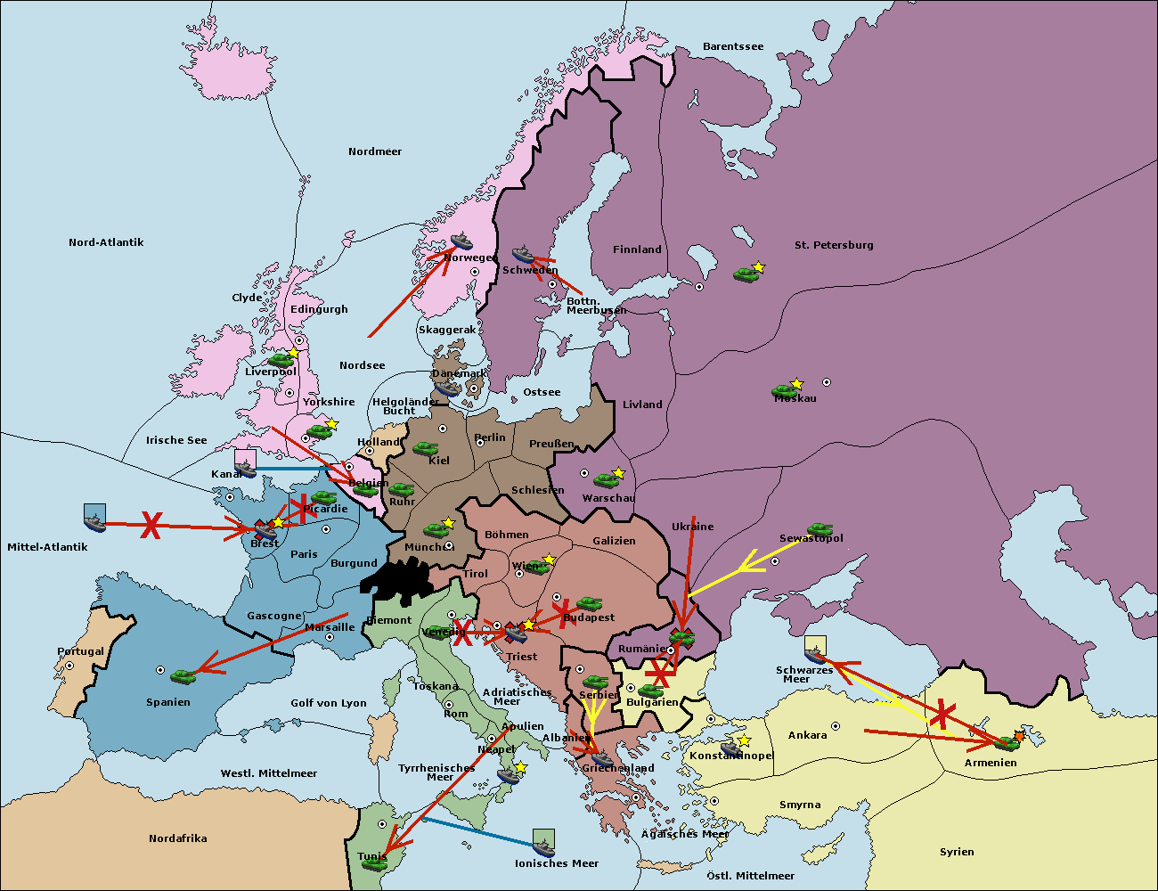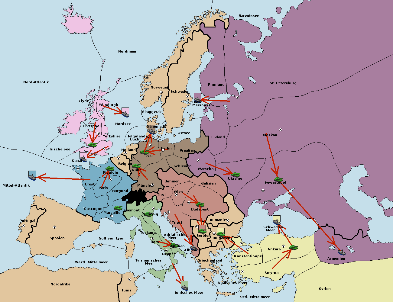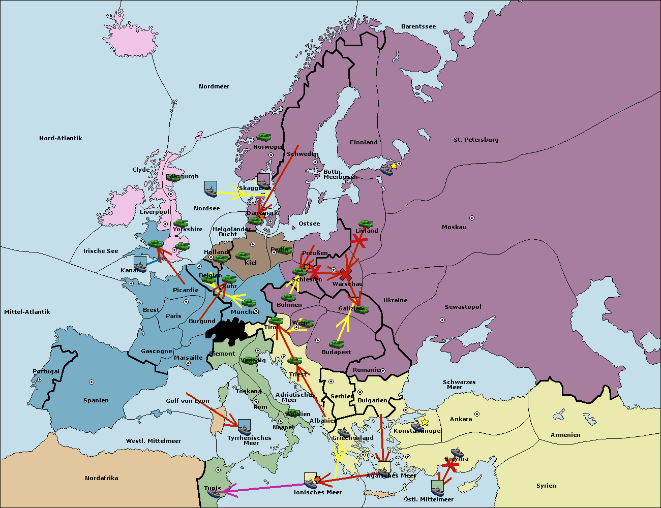 • Die Armee in Kiel wird zerstörtFlotte in Kiel gebaut.