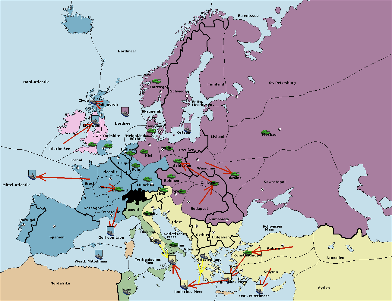 • Die Flotte in Smyrna move nach östl. Mittelmeer. (gescheitert)