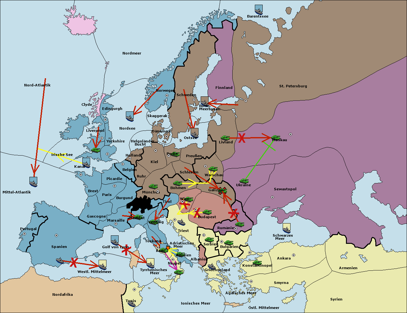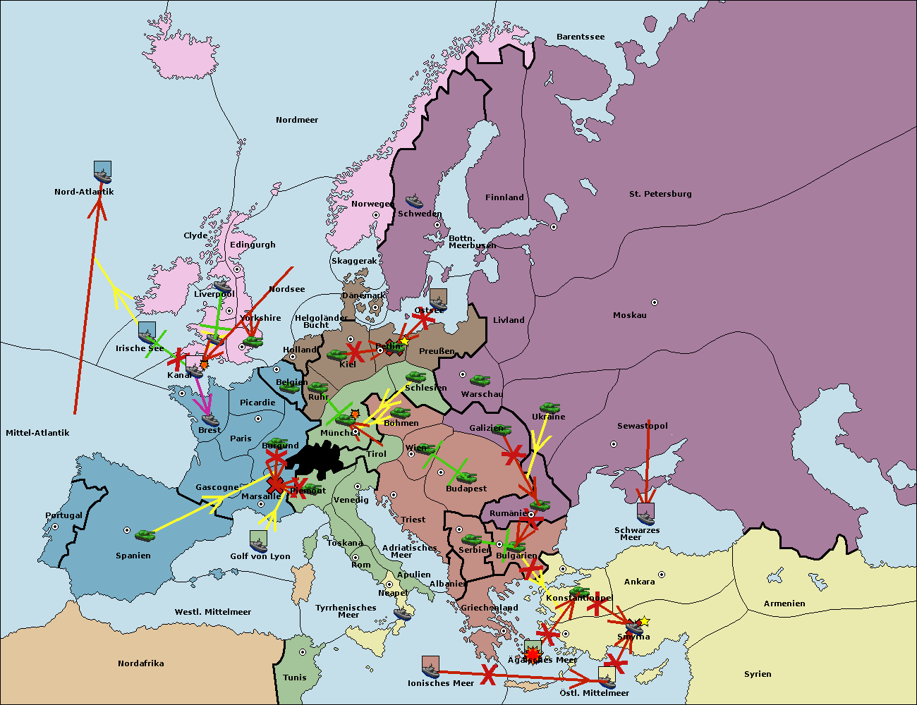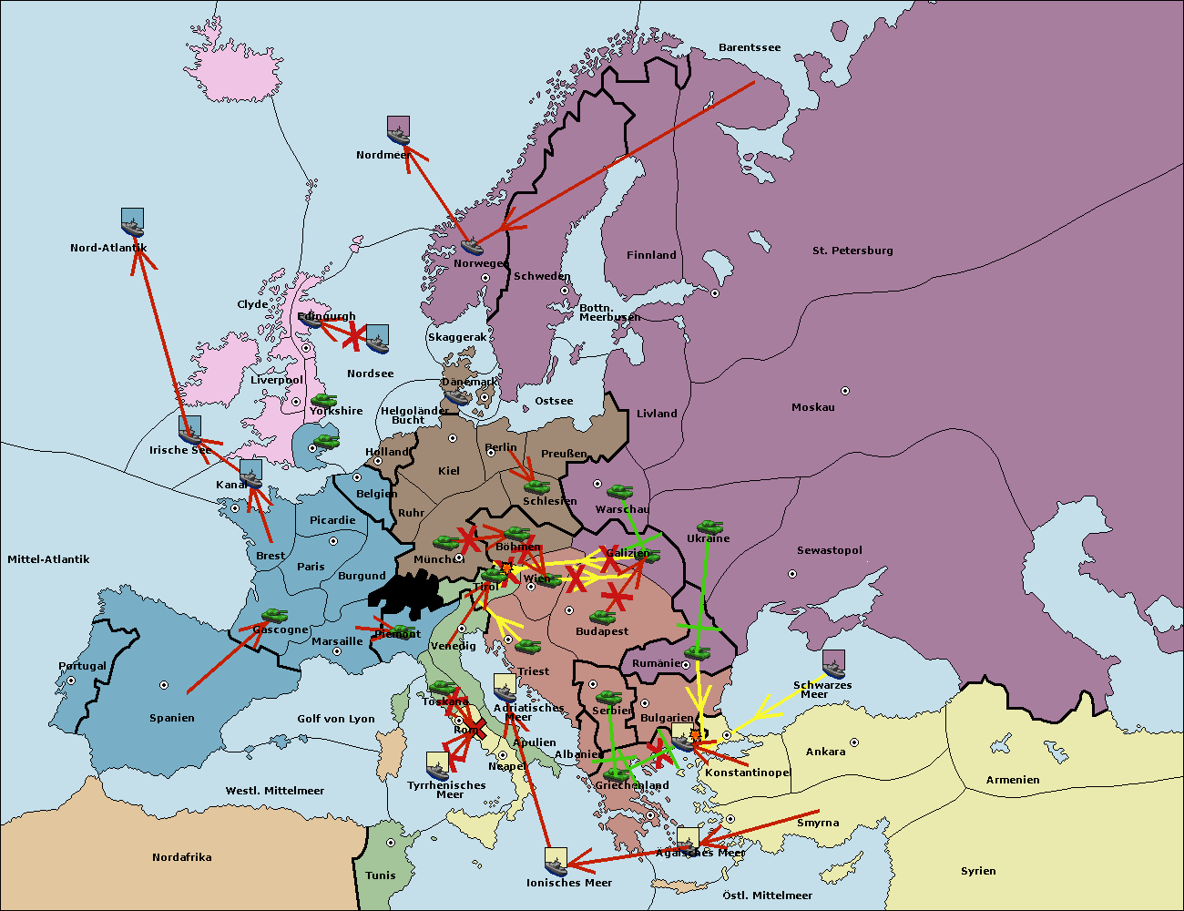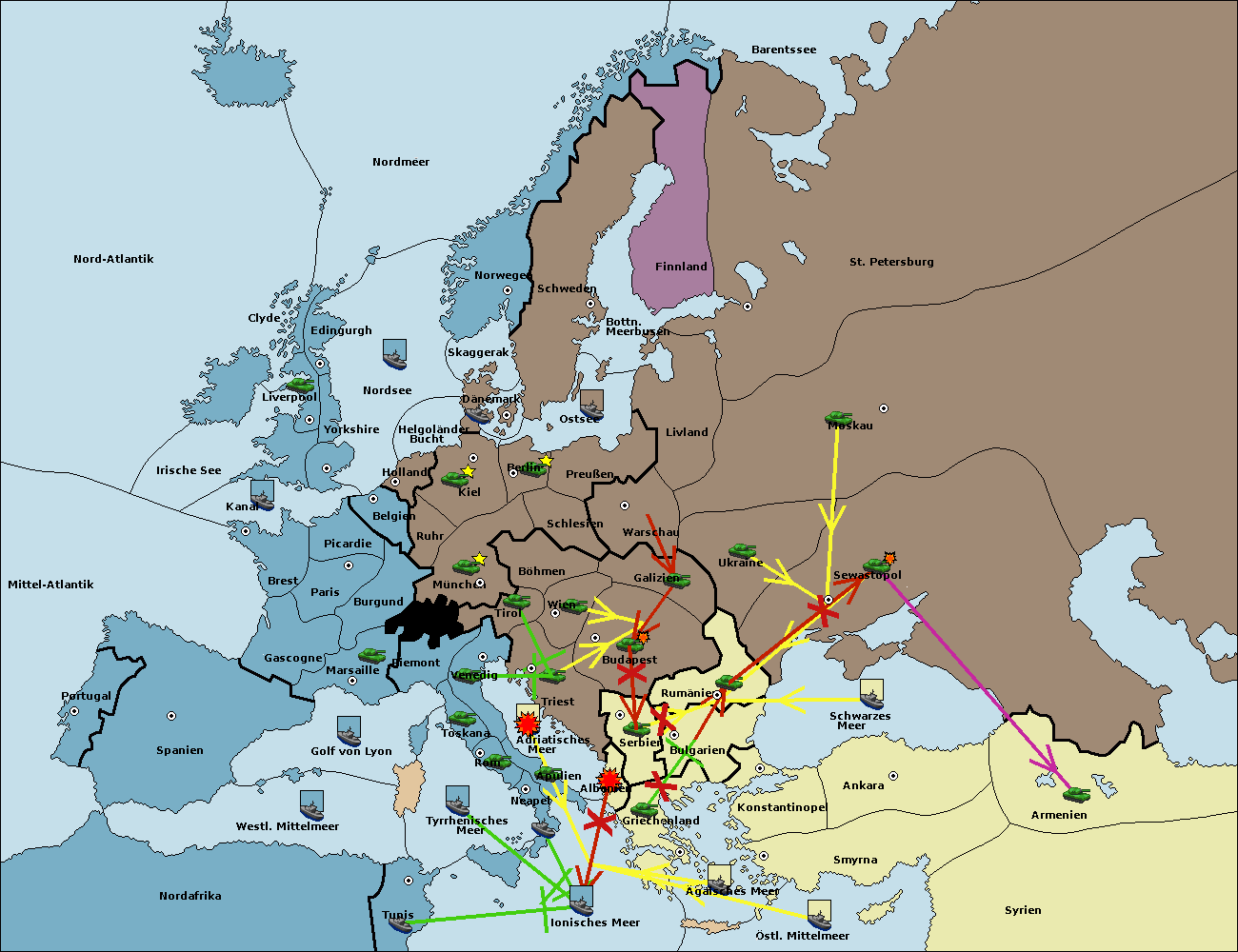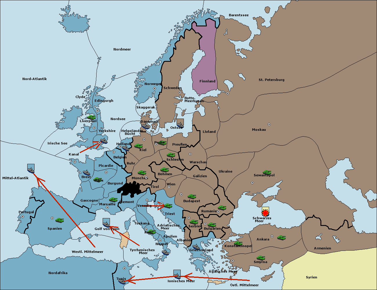 • Die Armee in München wird zerstörtFlotte in München gebaut.