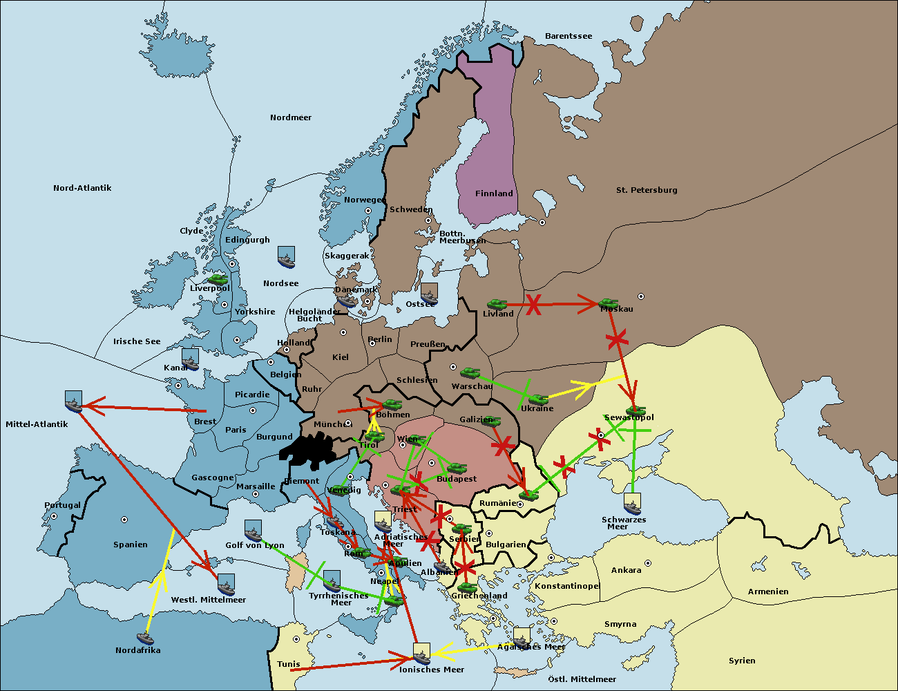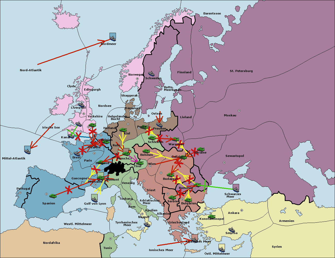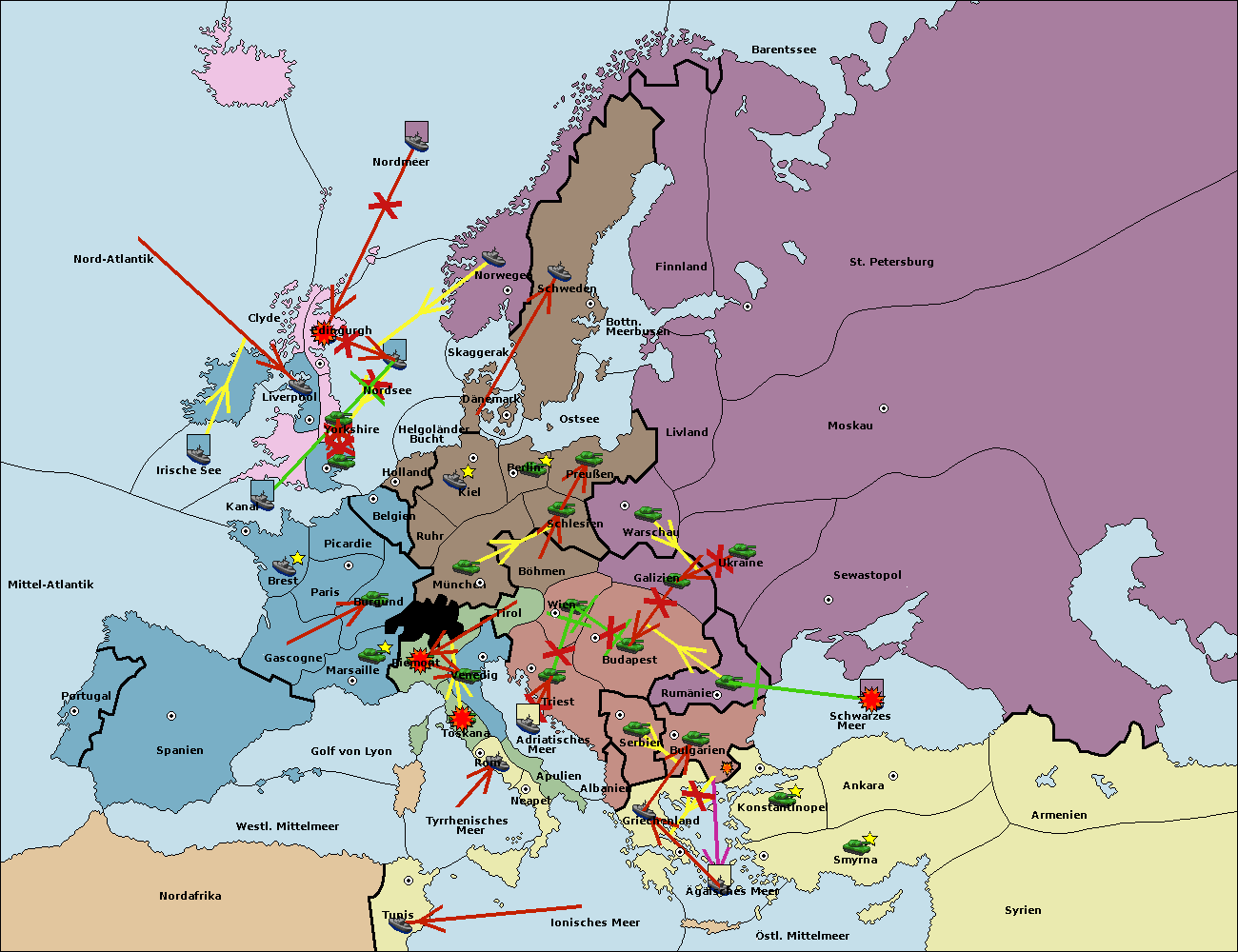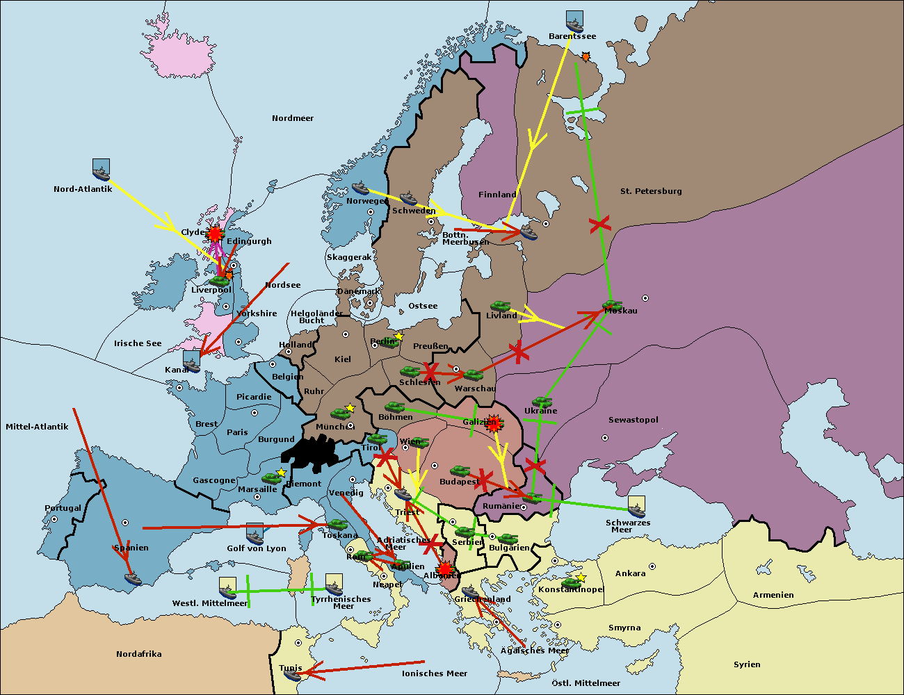 • Die Armee in München wird zerstörtFlotte in München gebaut.