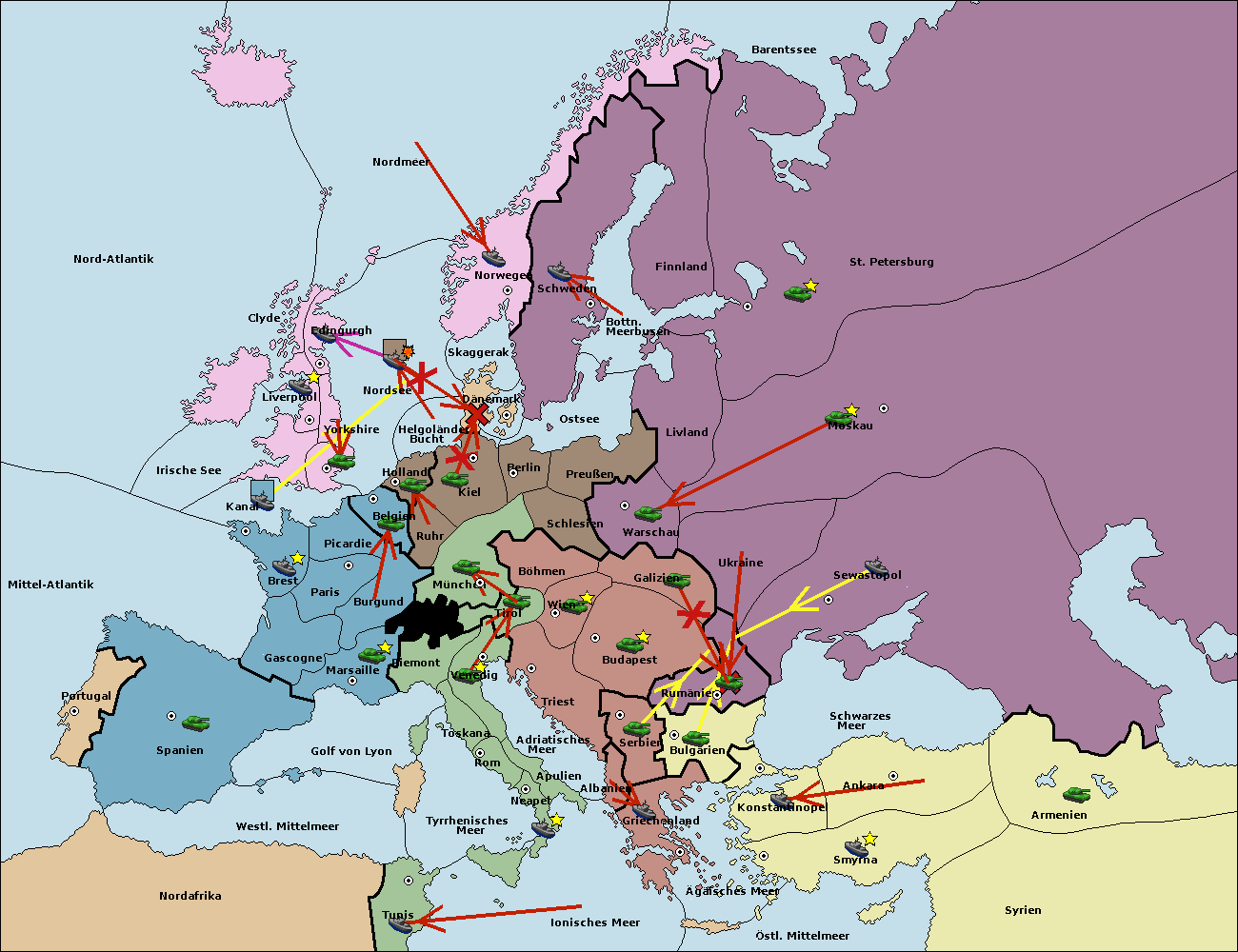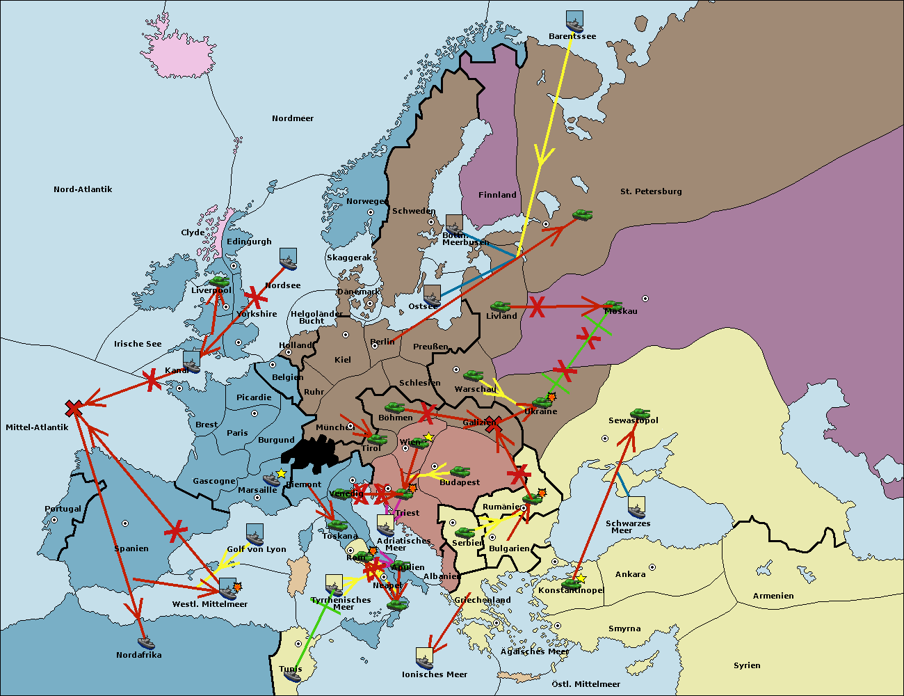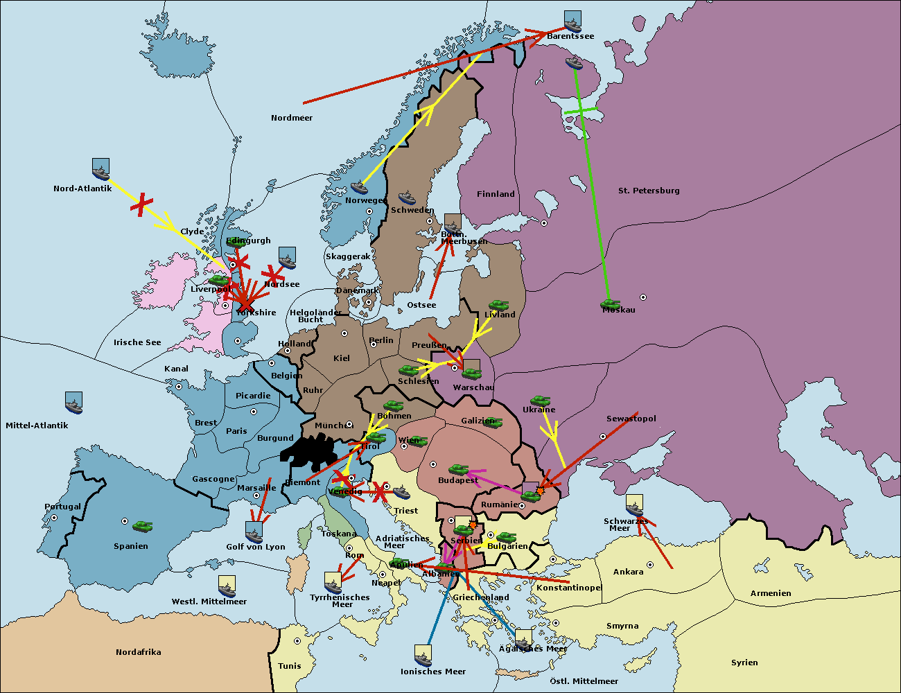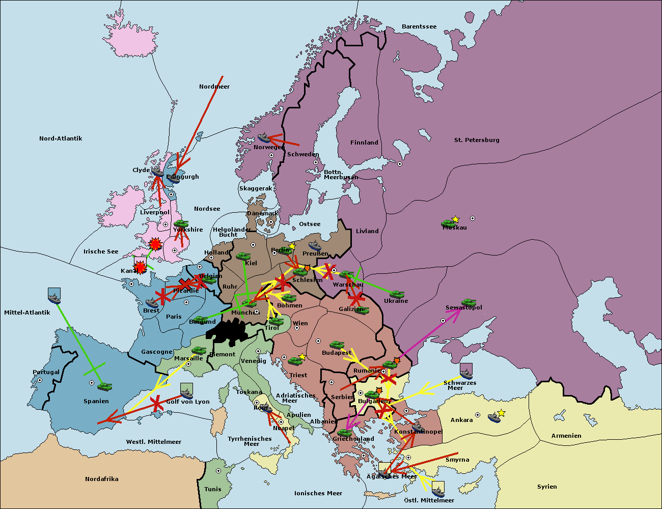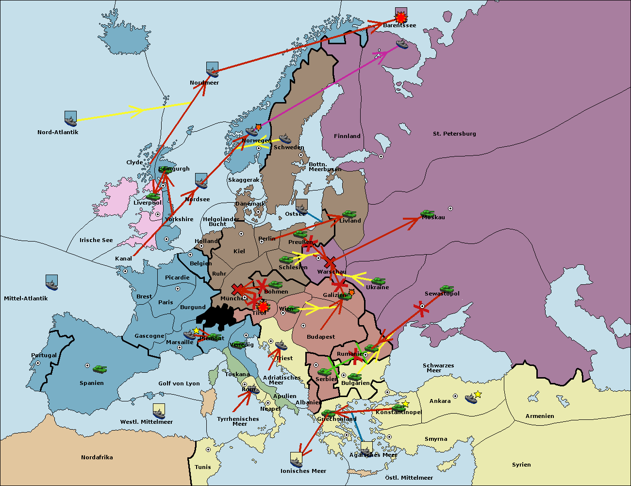 • Die Armee in München wird zerstörtFlotte in München gebaut.