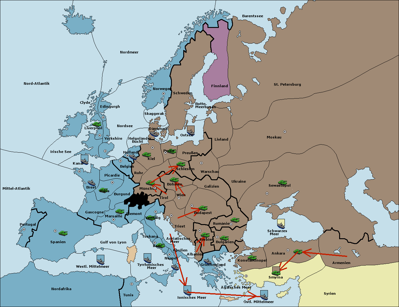 • Die Flotte in Ägäisches Meer support hold nach östl. Mittelmeer. (gescheitert)