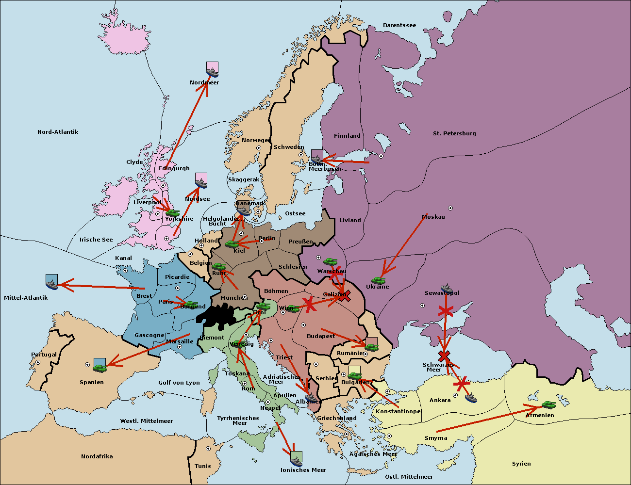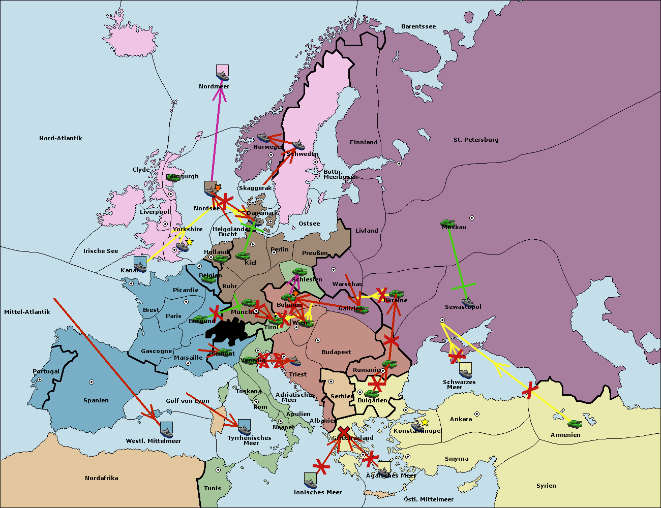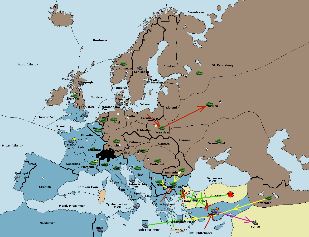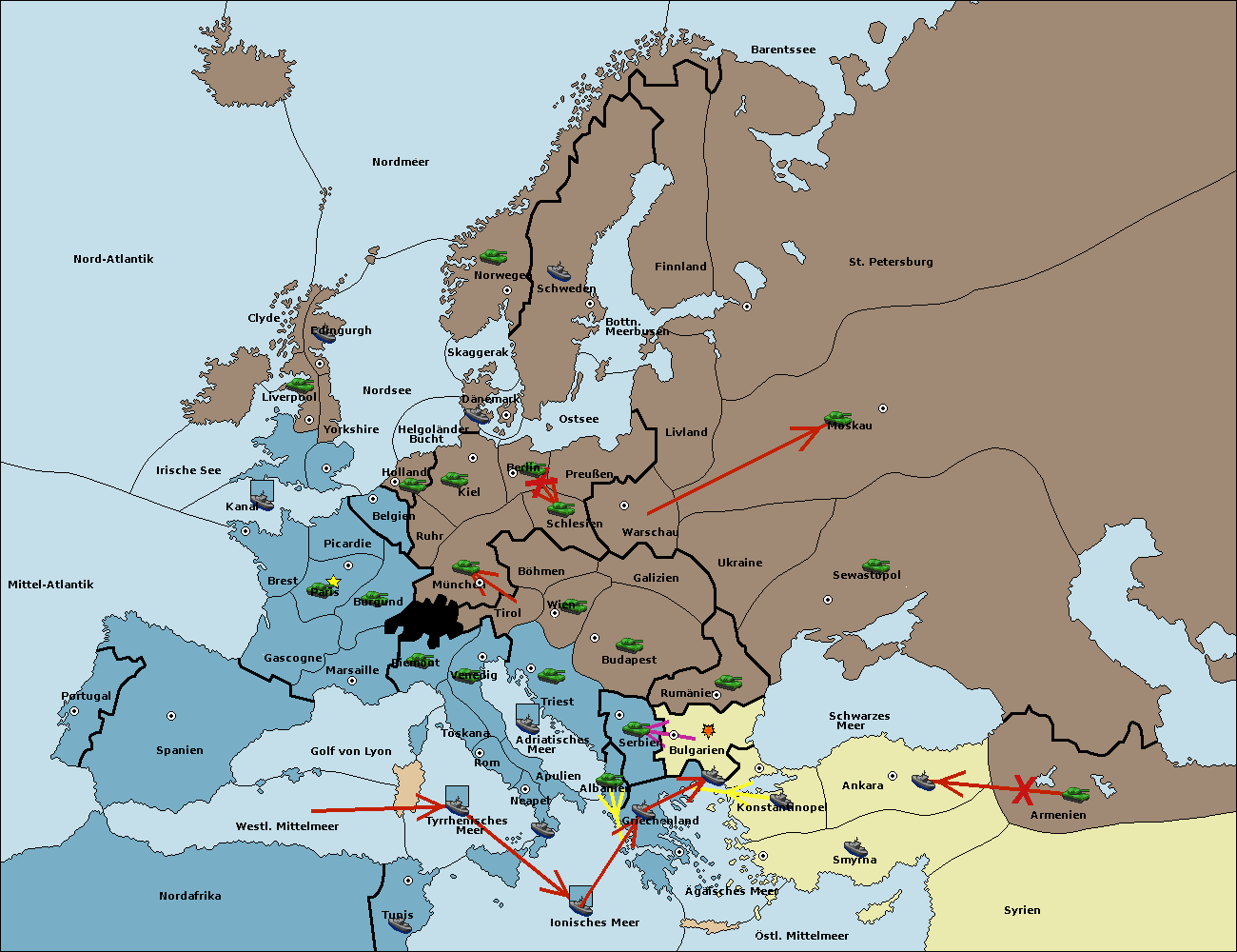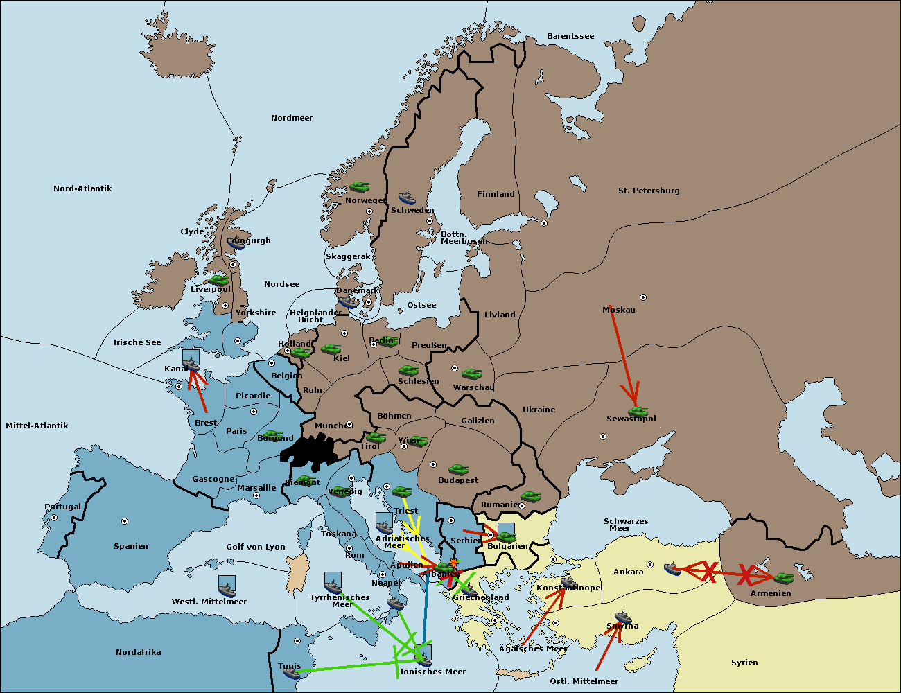 • Die Flotte in Bulgarien (Südküste) support hold nach Konstantinopel. (gescheitert)