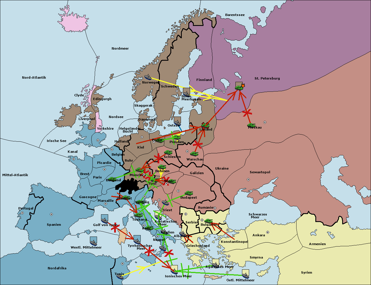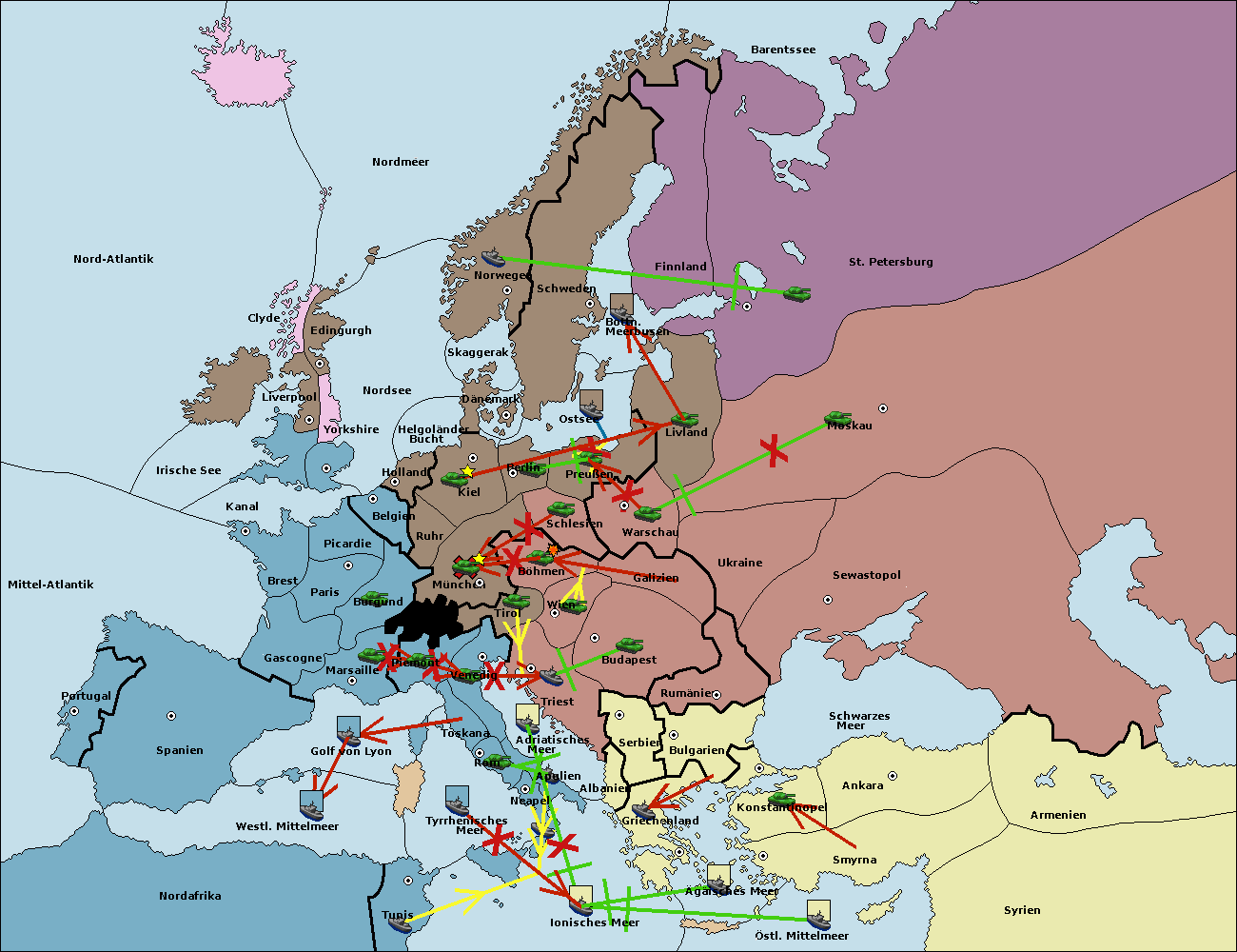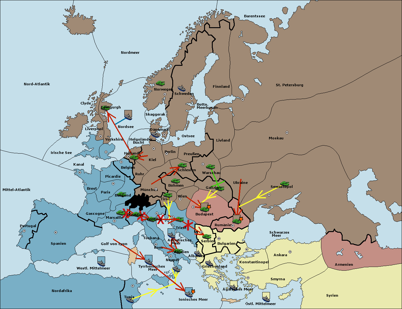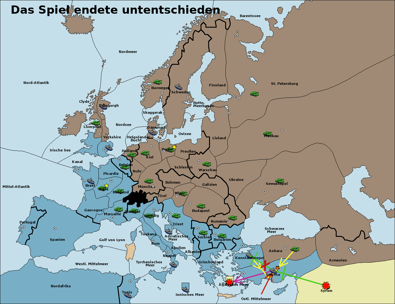 • Die Flotte in Bulgarien (Südküste) support hold nach Konstantinopel. (gescheitert)