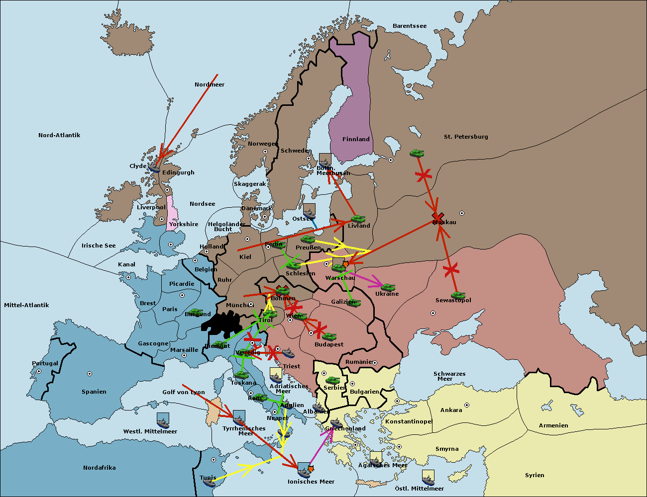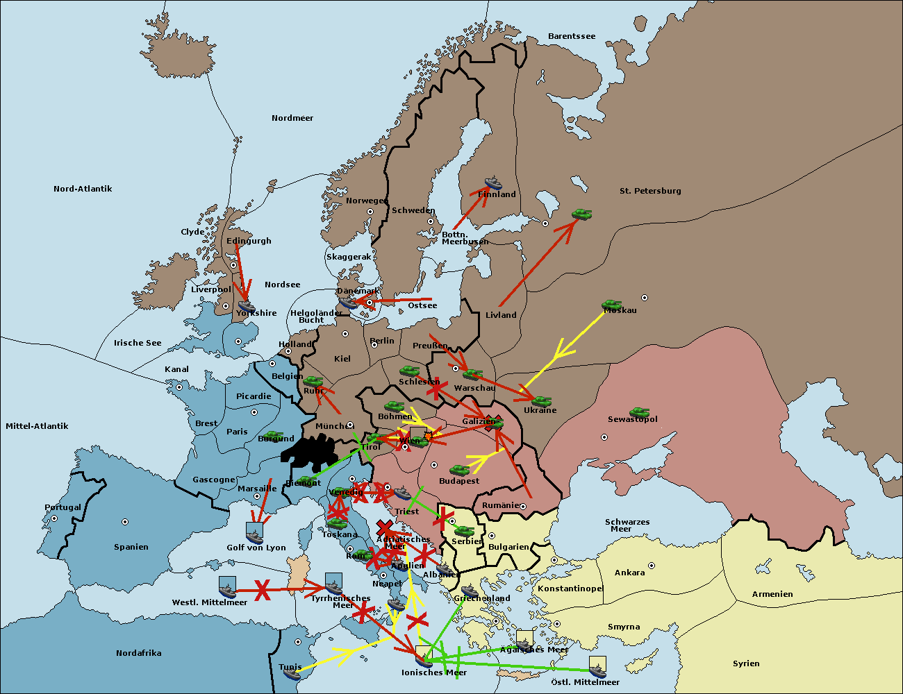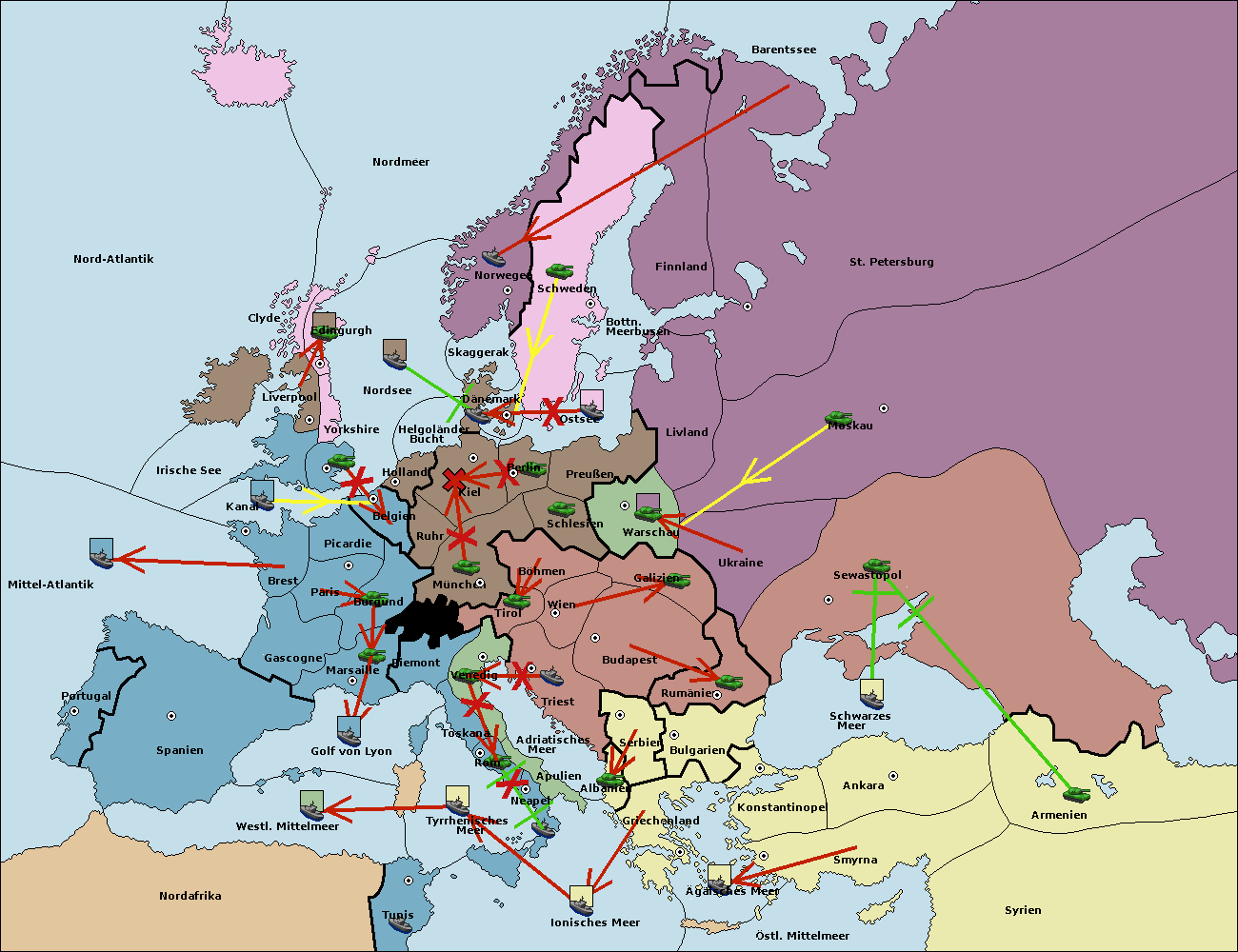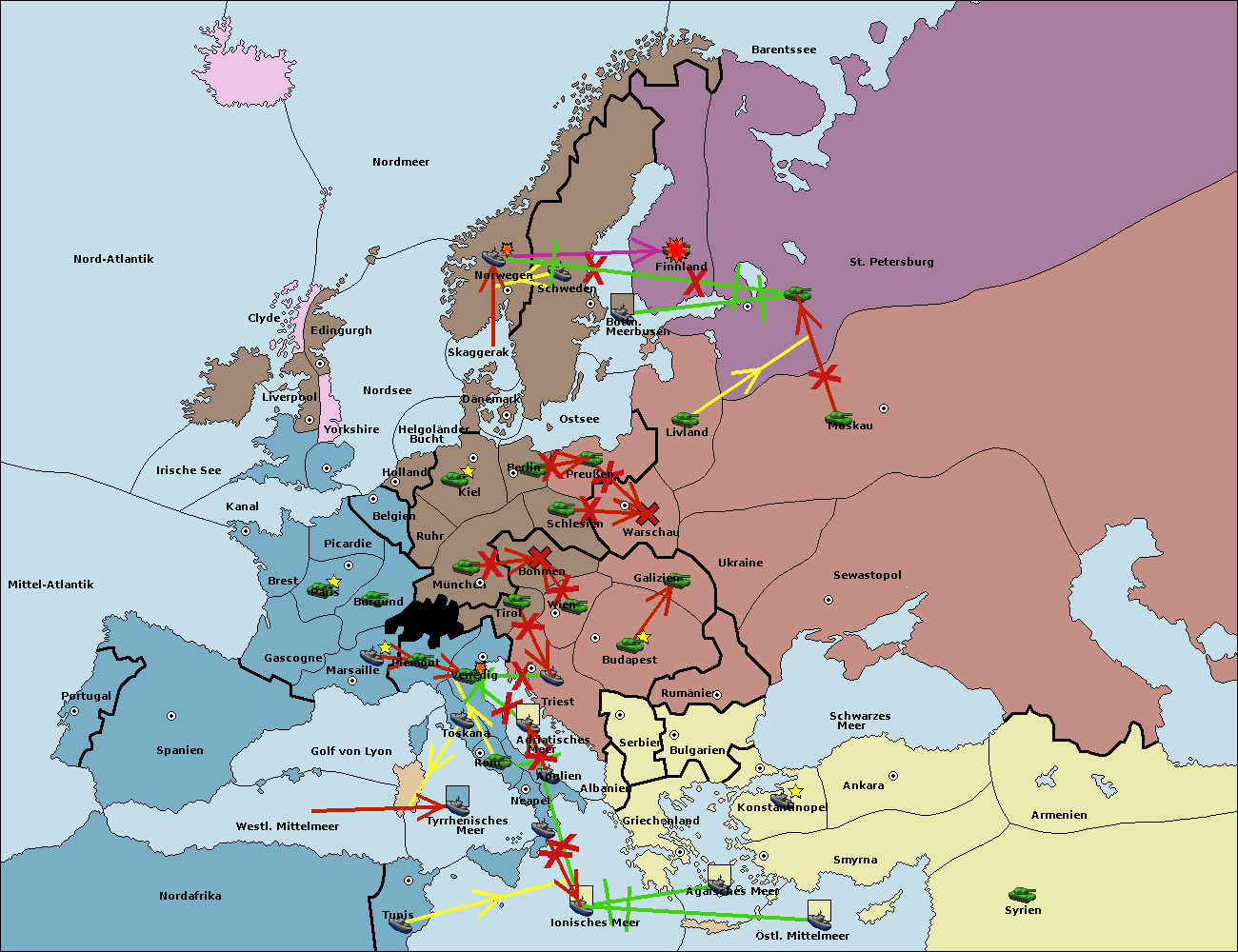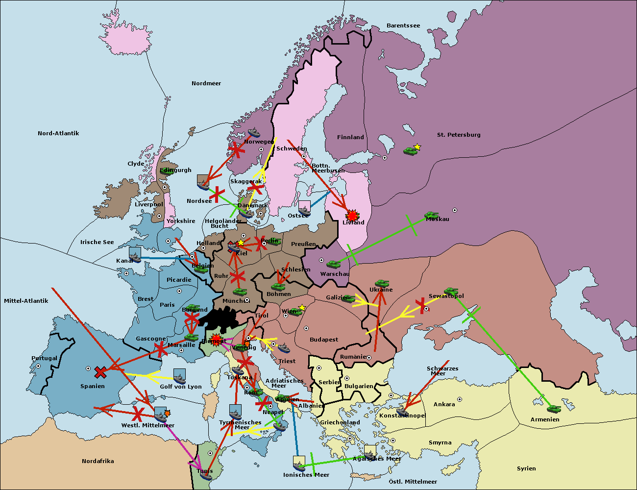 • Die Flotte in Bulgarien (Südküste) support hold nach Konstantinopel. (gescheitert)