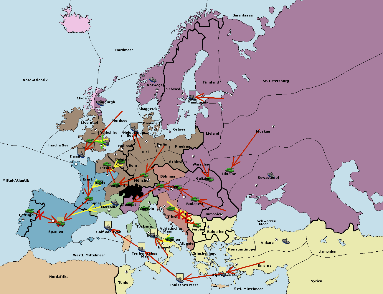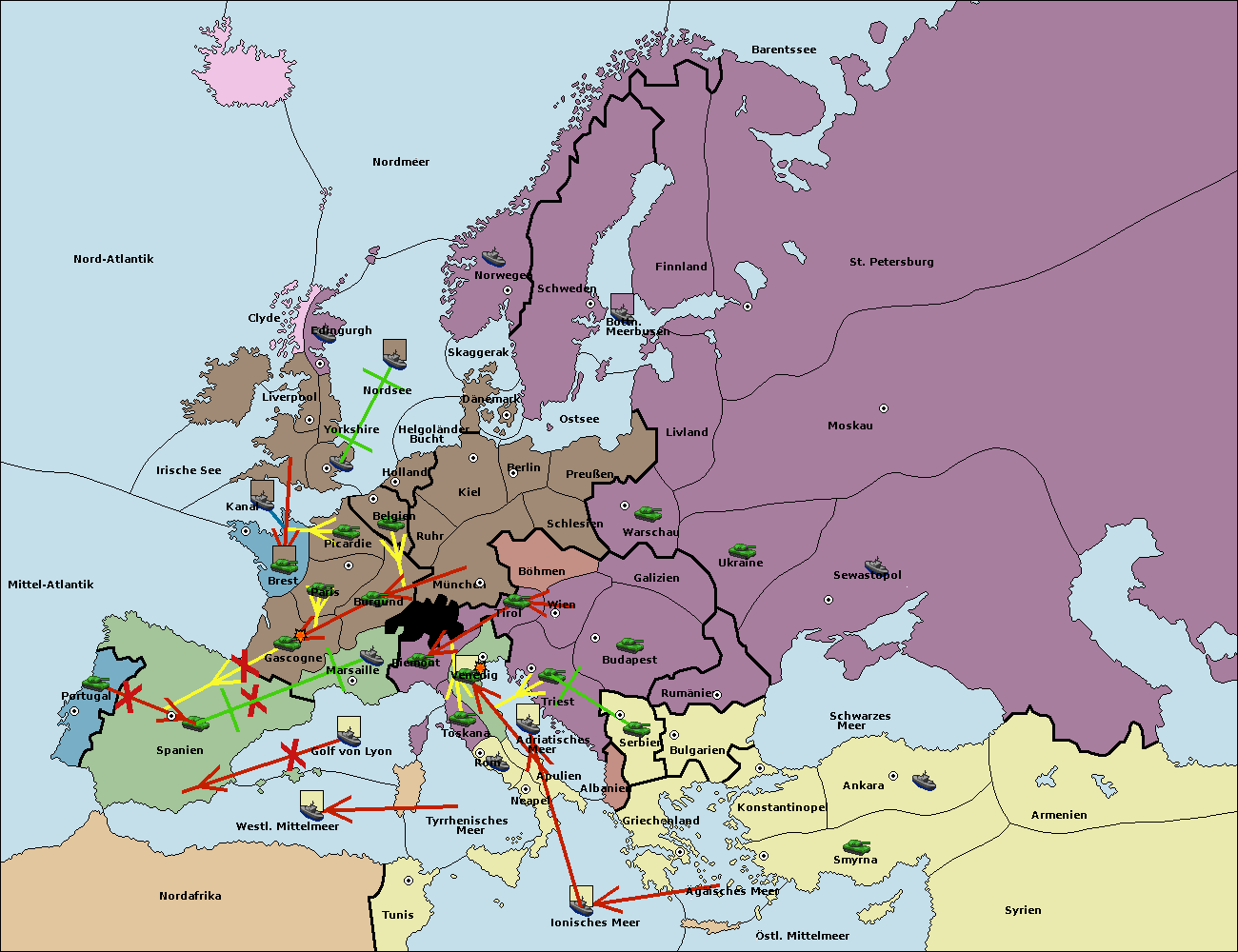 • Die Armee in Piemont support move nach Tirol von Triest.