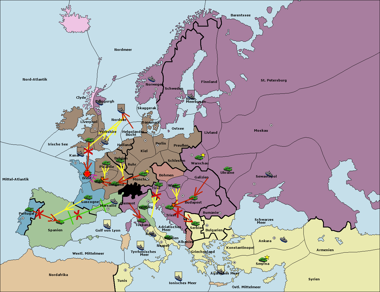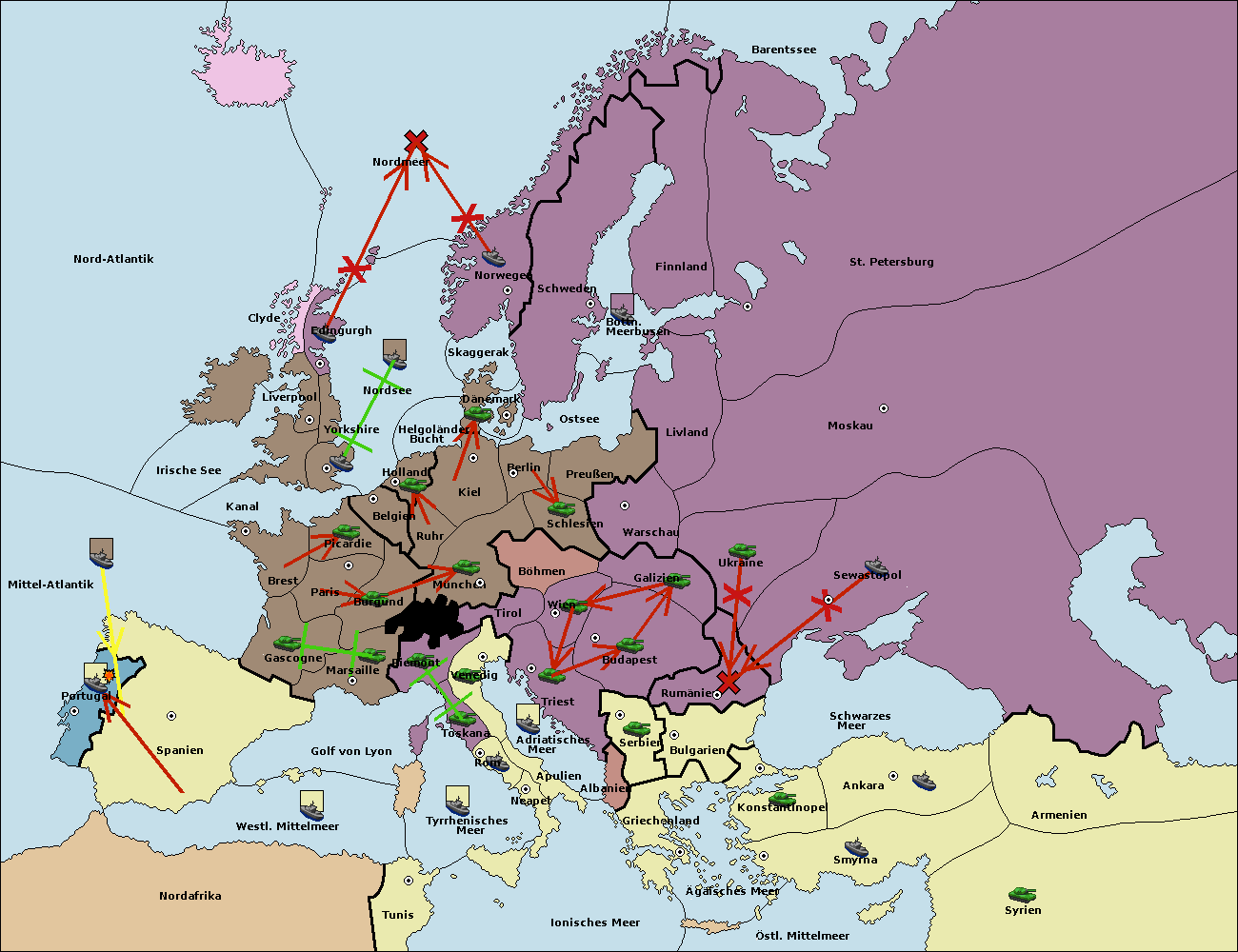 • Die Flotte in Spanien (Südküste) move nach Portugal.