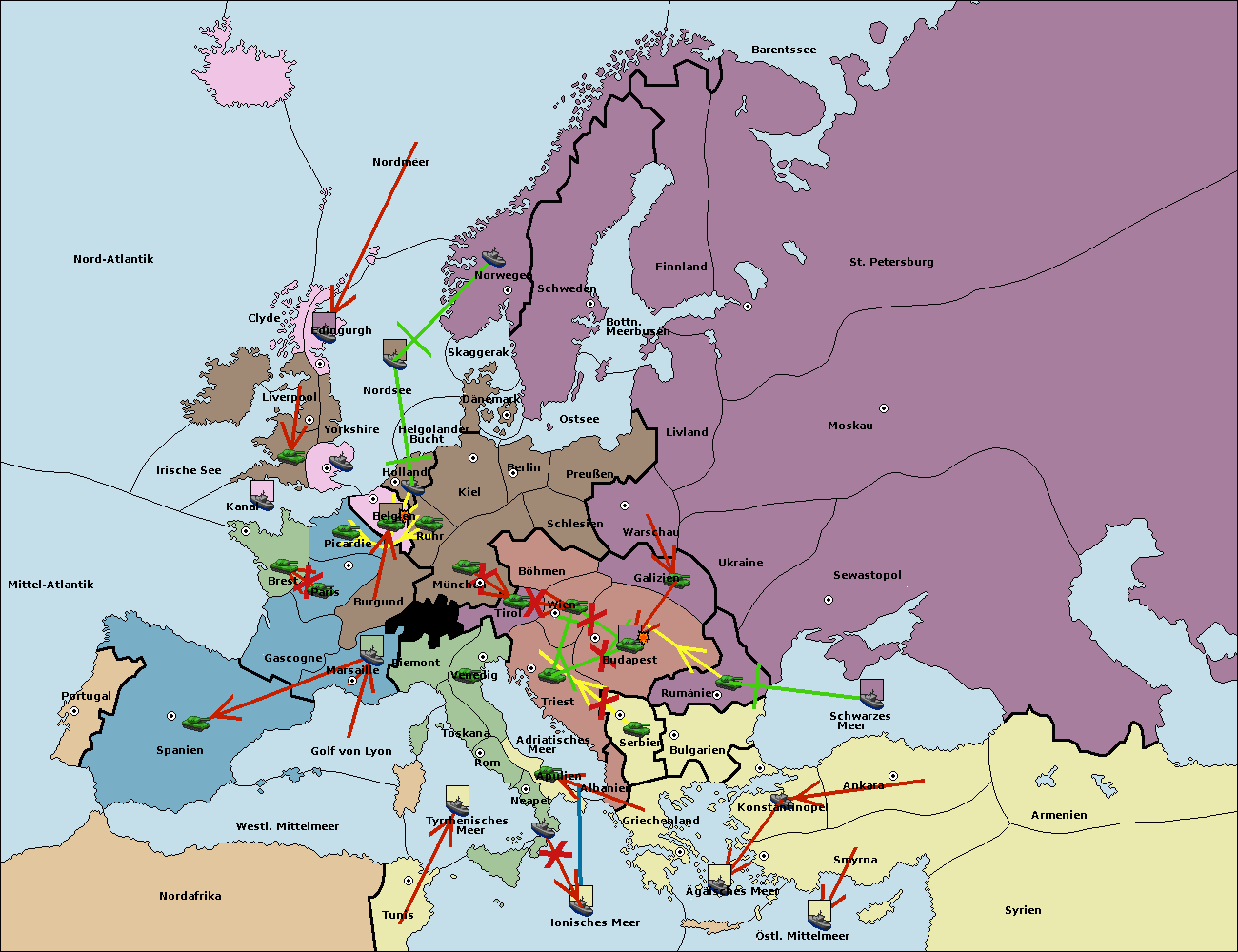 • Die Armee in Wien support move nach Galizien von Budapest.
