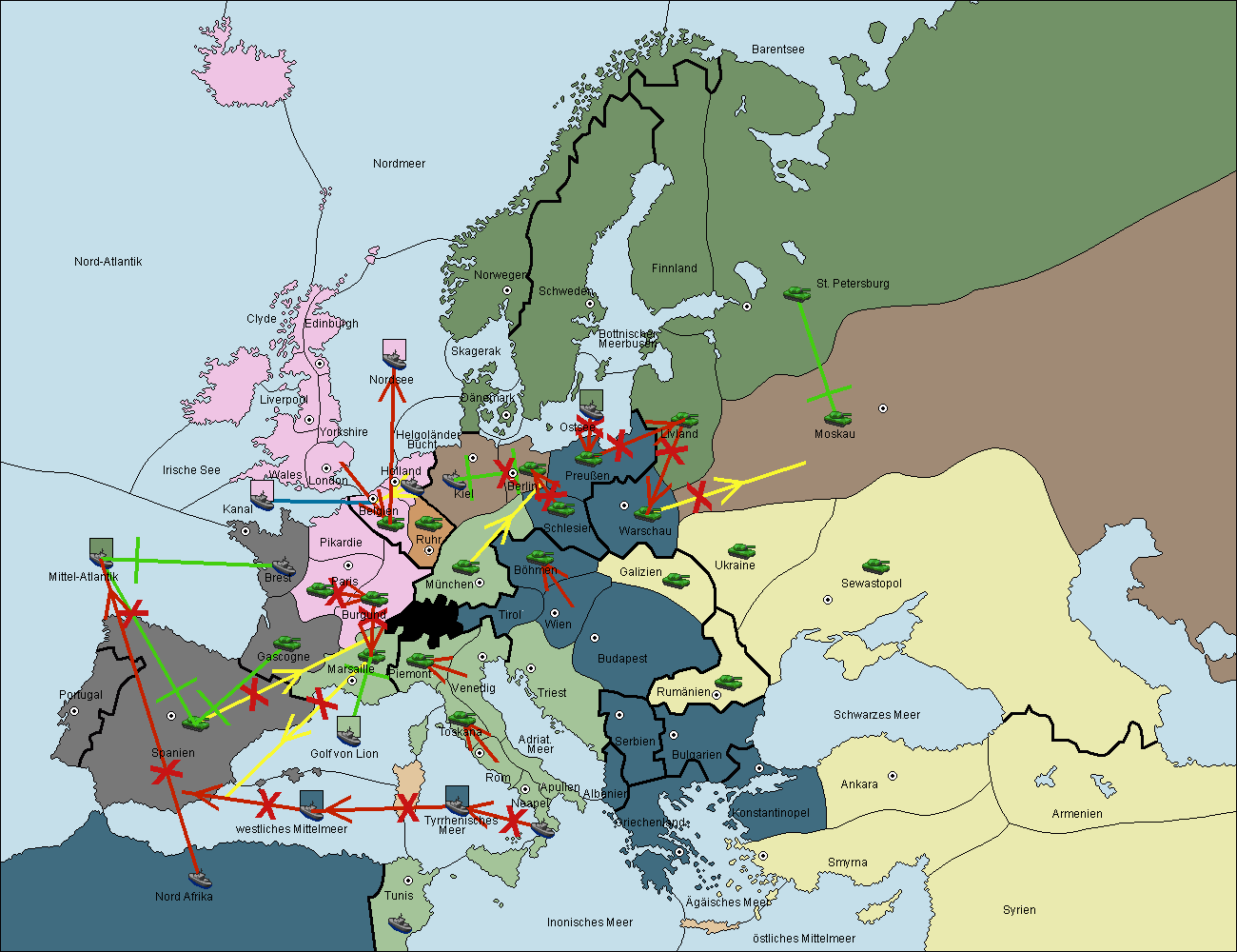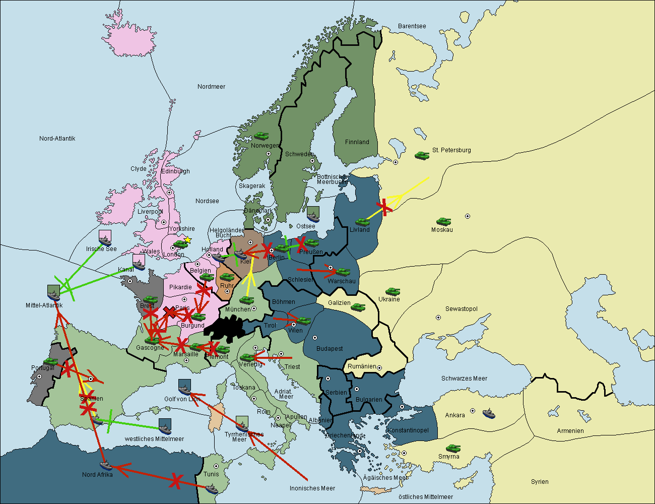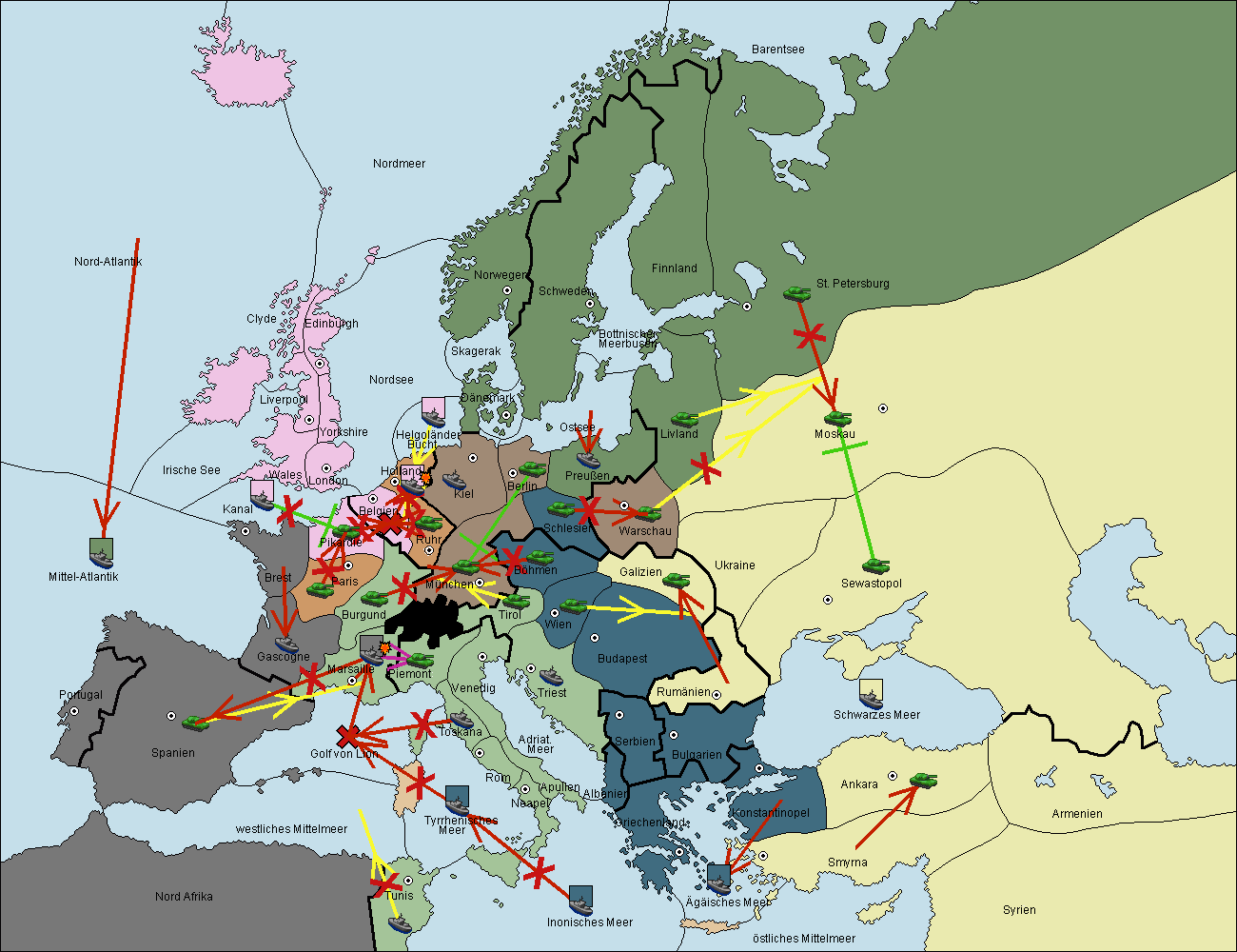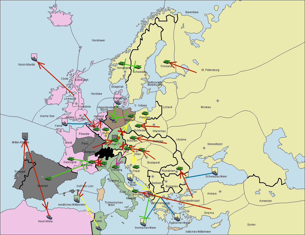 • Die Armee in München wird zerstörtFlotte in München gebaut.