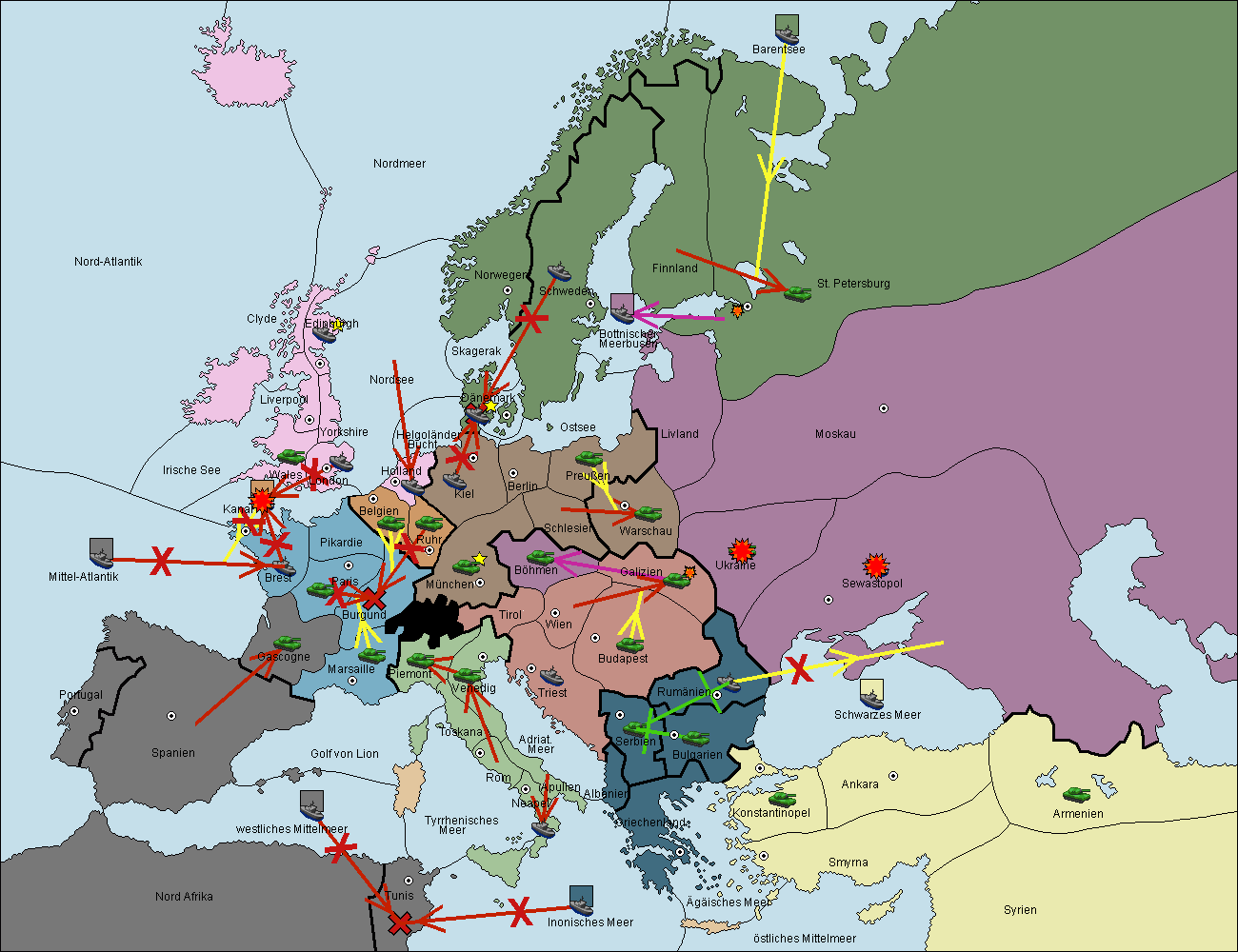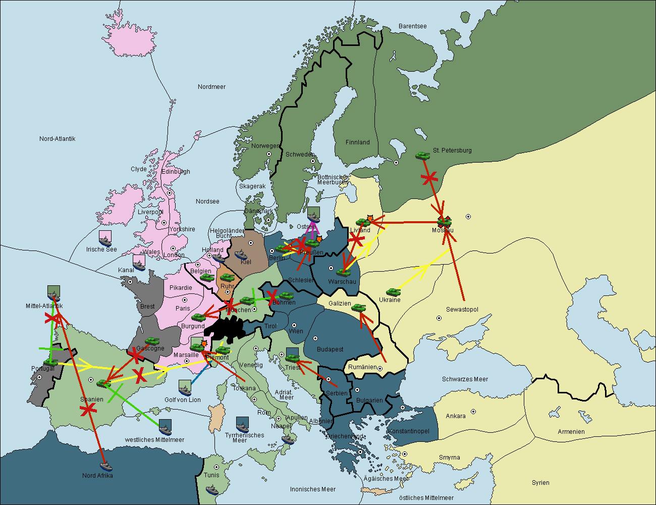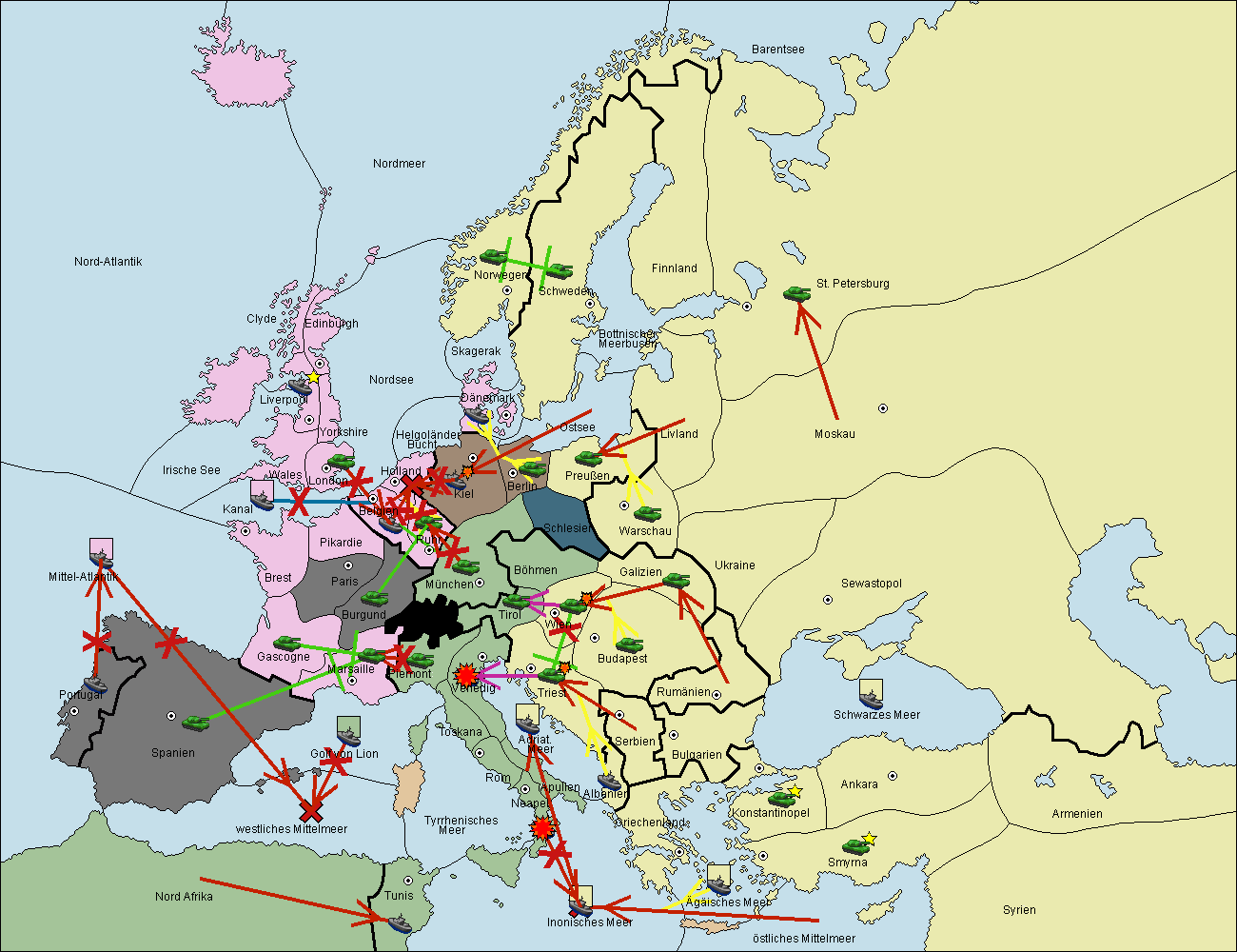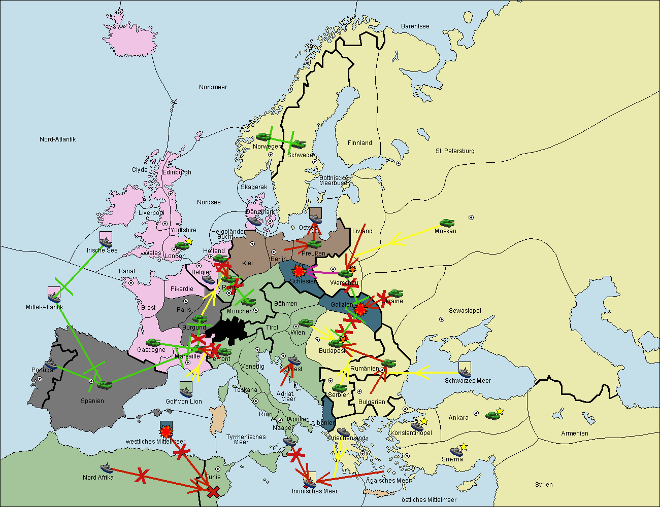 • Die Armee in München wird zerstörtFlotte in München gebaut.