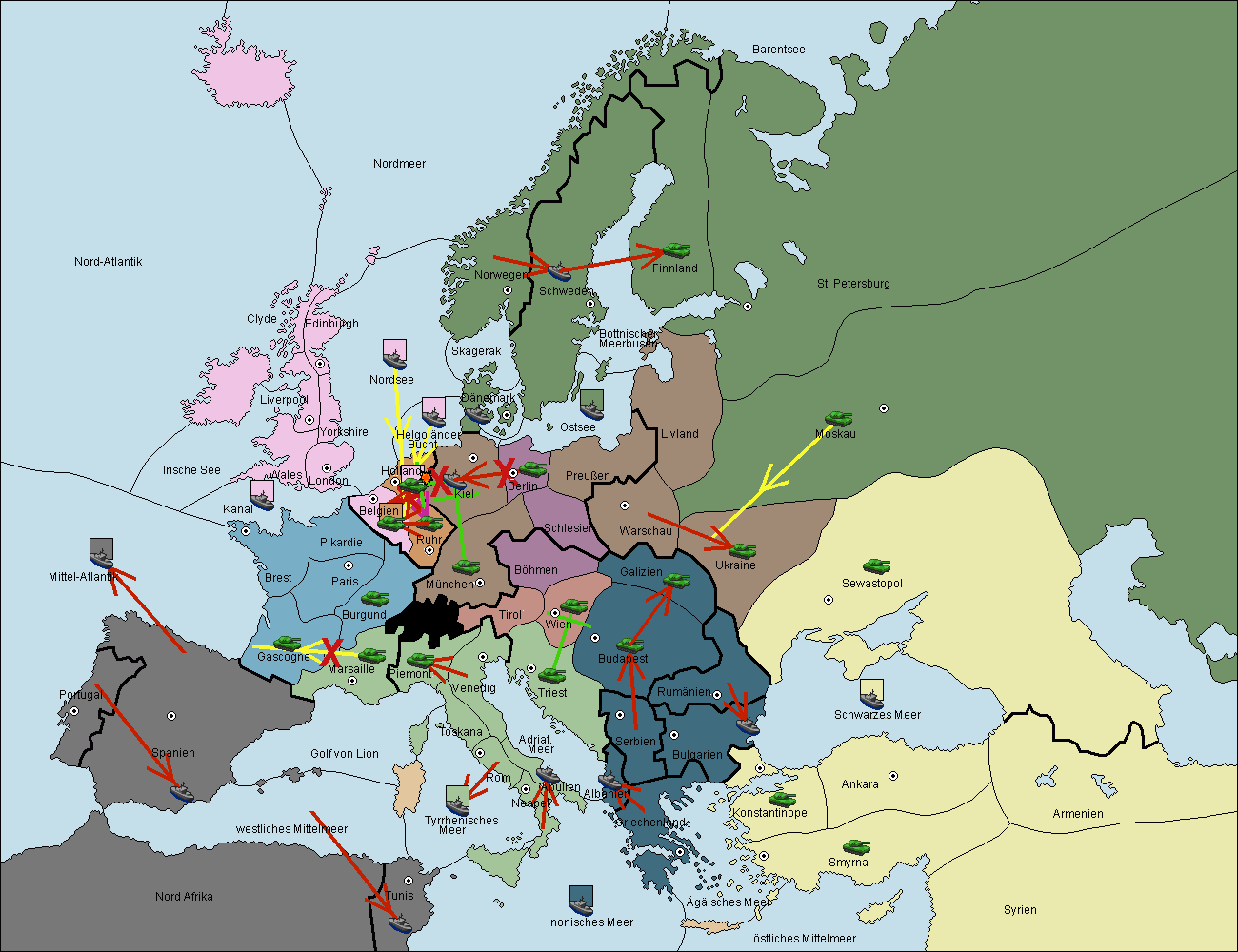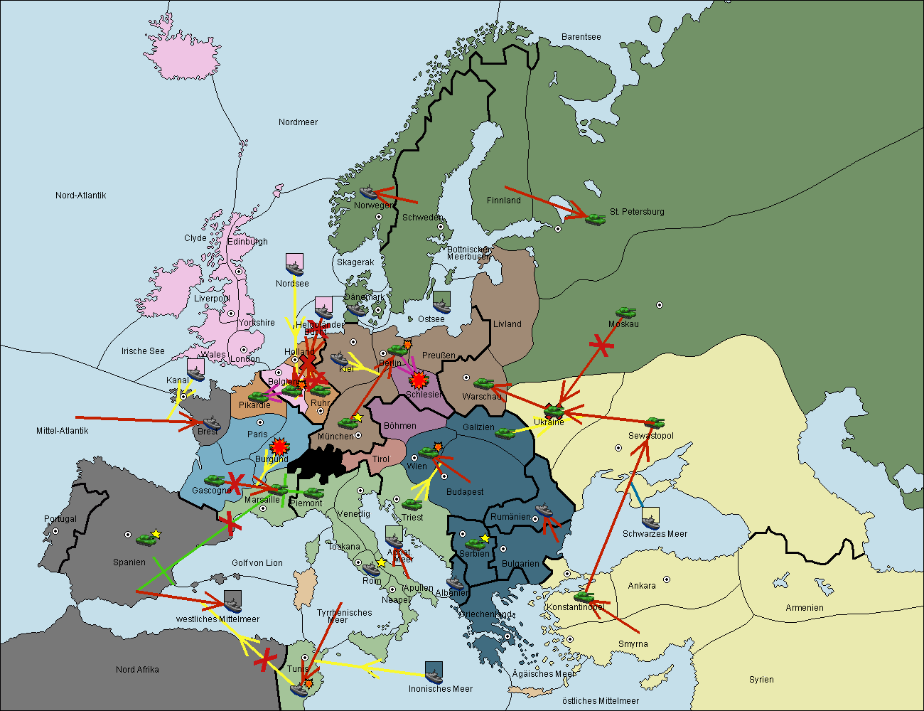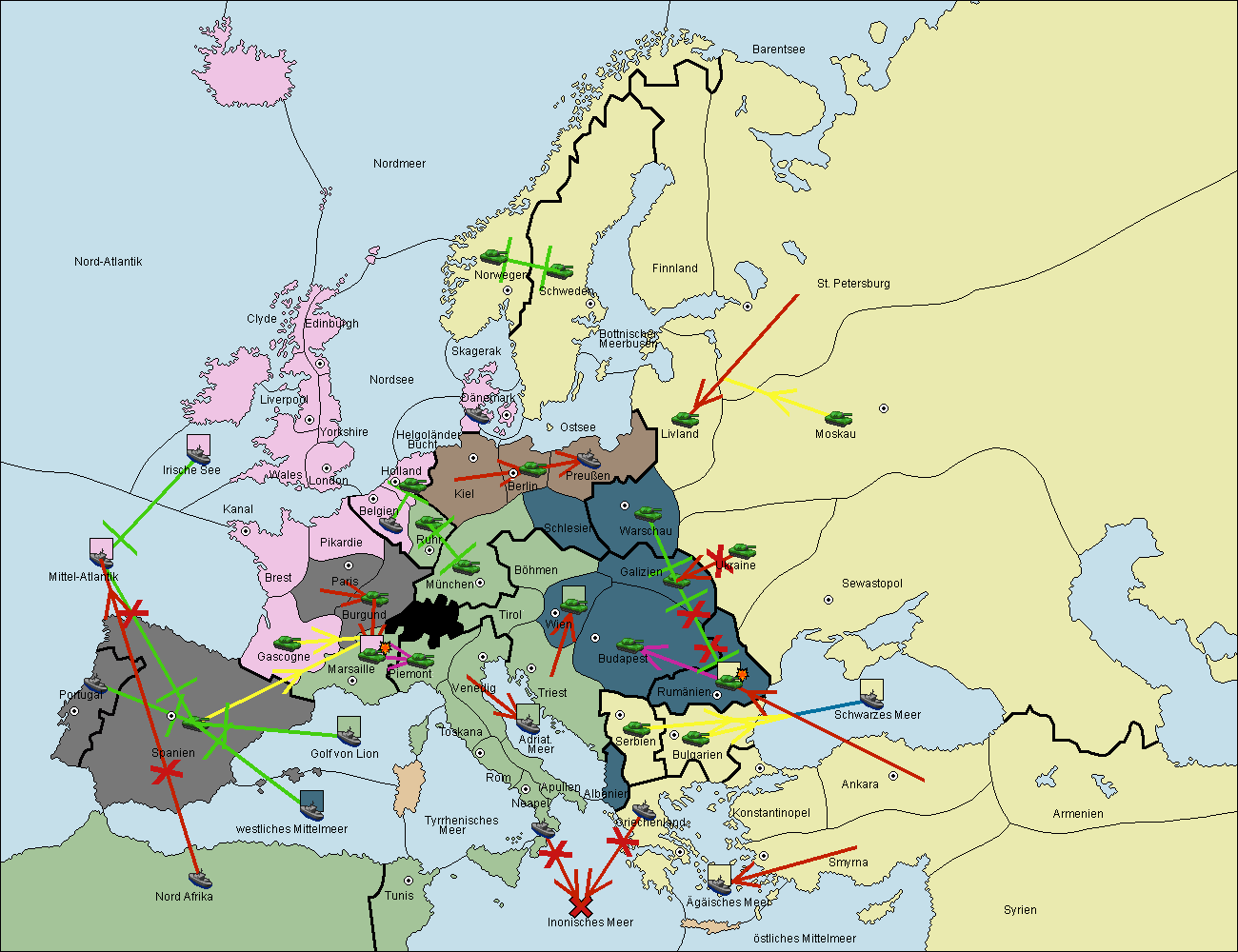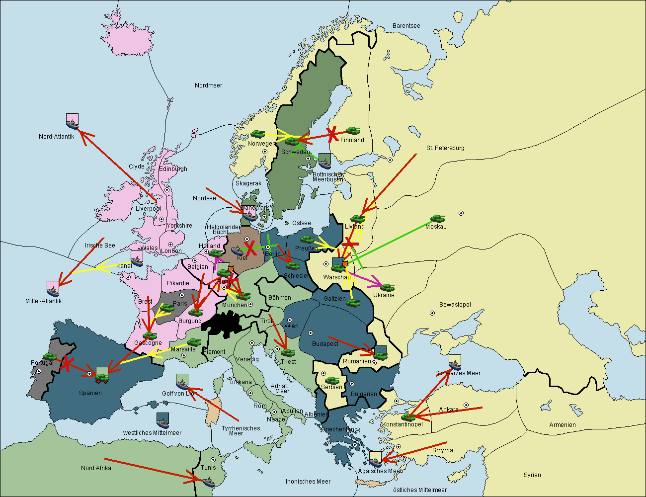 • Die Armee in München wird zerstörtFlotte in München gebaut.