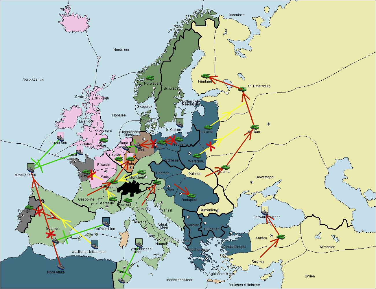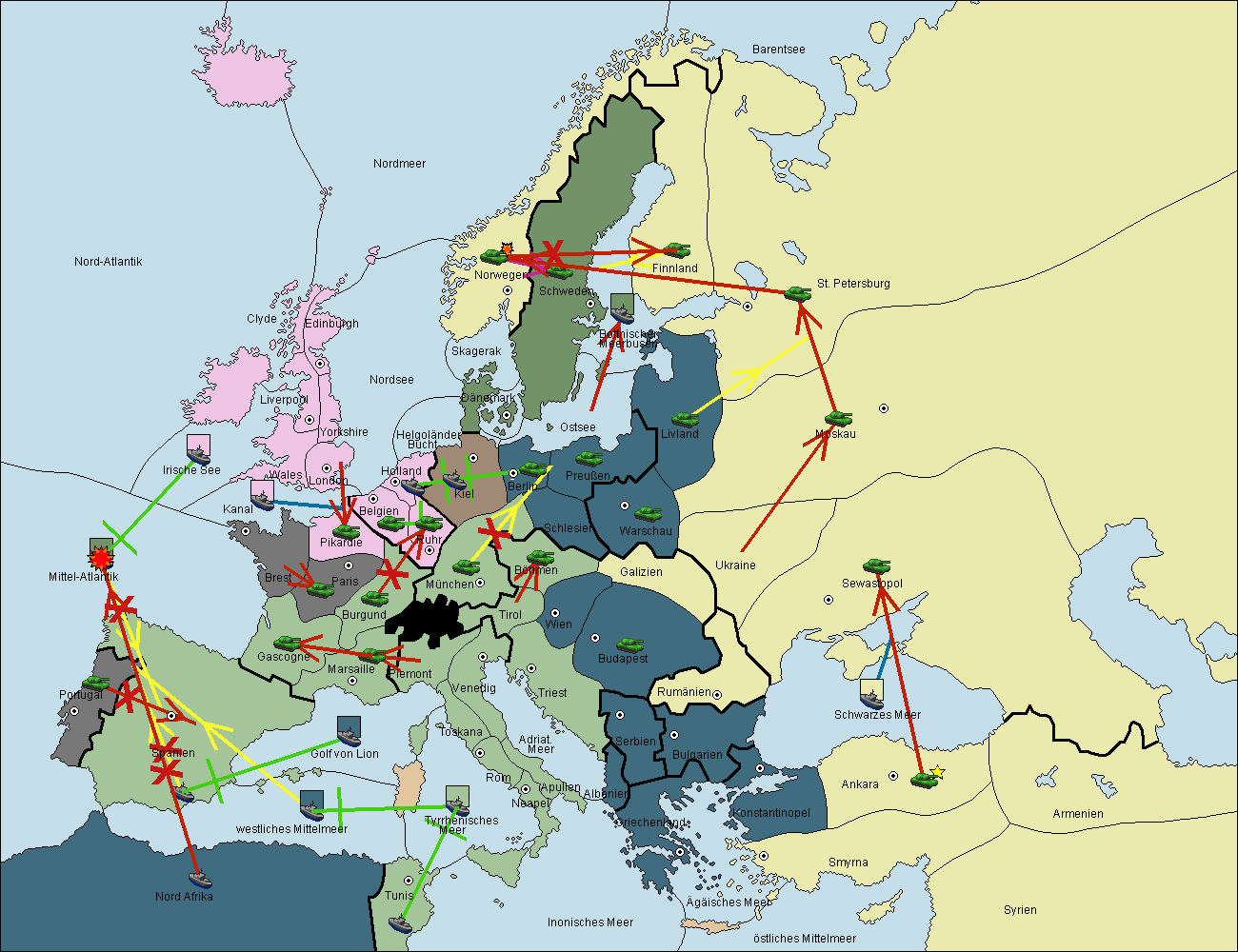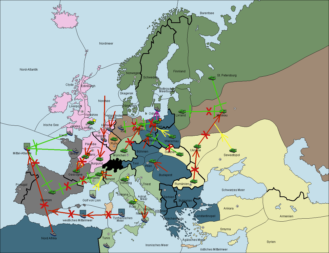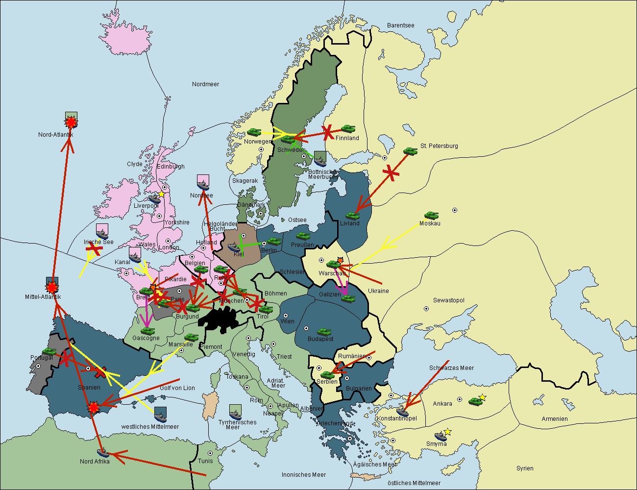 • Die Armee in München wird zerstörtFlotte in München gebaut.