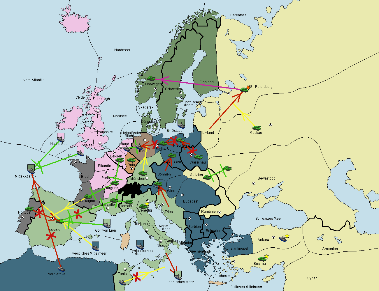 • Die Armee in Warschau support move nach Moskau von St. Petersburg.