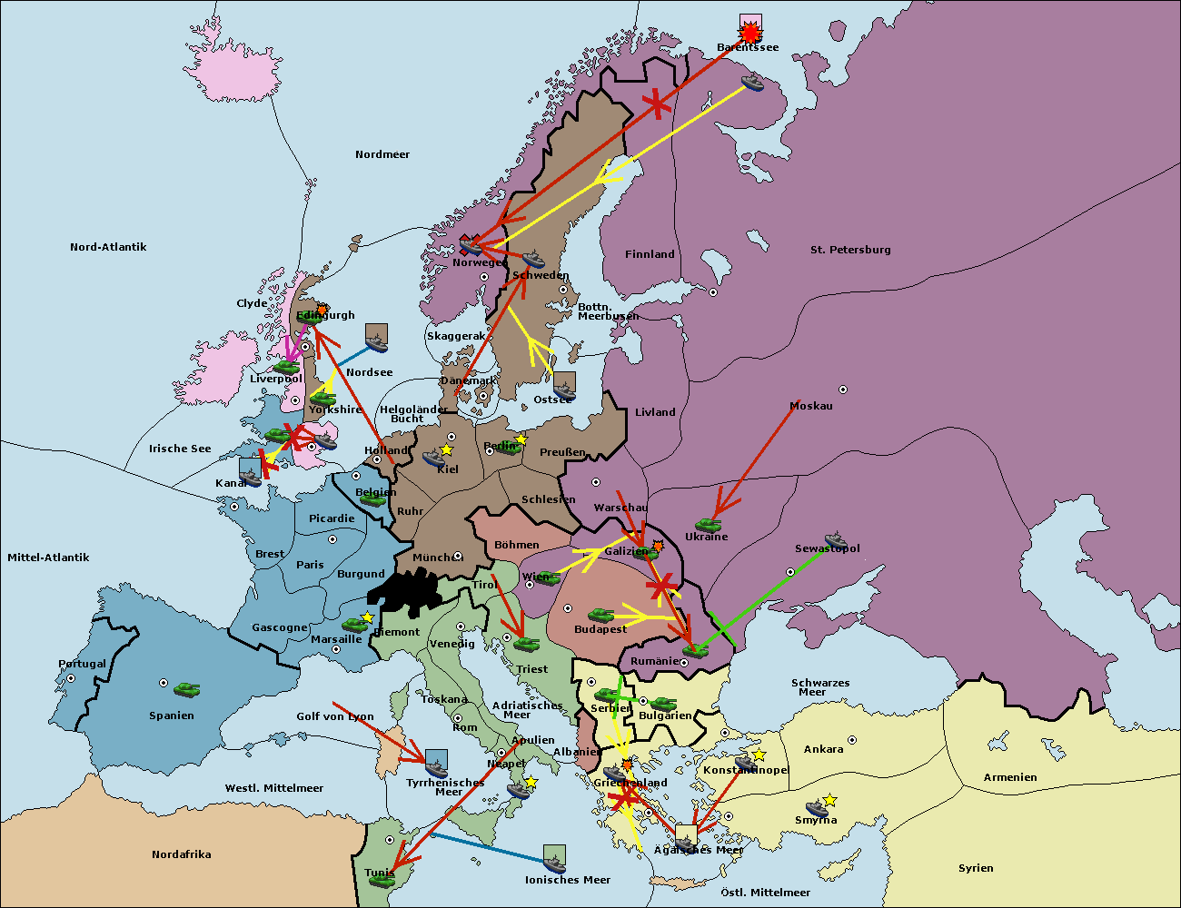 • Die Flotte in St. Petersburg (Nordküste) support move nach Norwegen von Schweden.