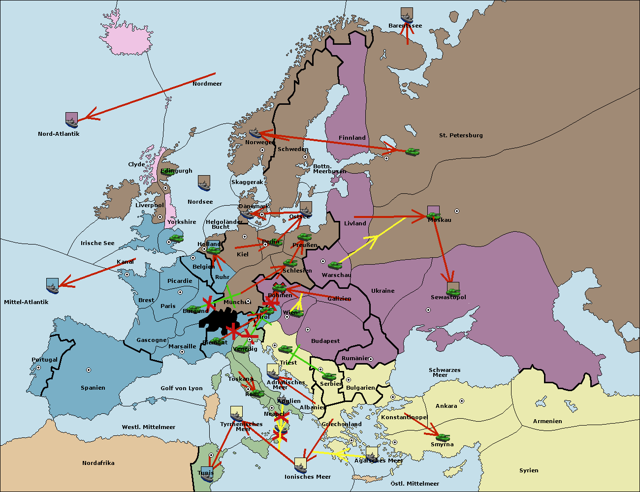• Die Armee in Wien support move nach Triest von Tirol.