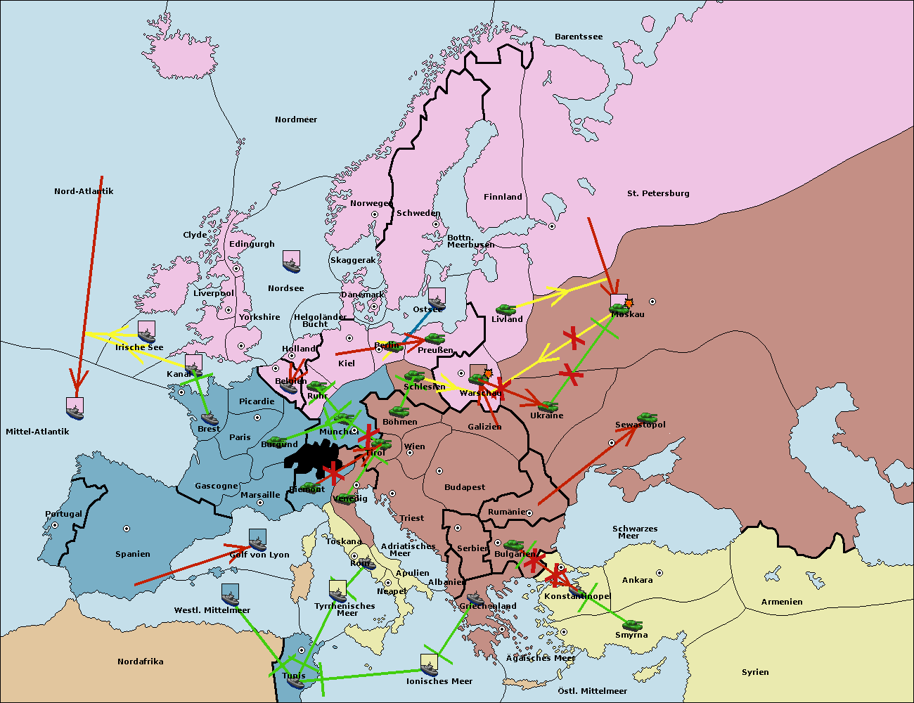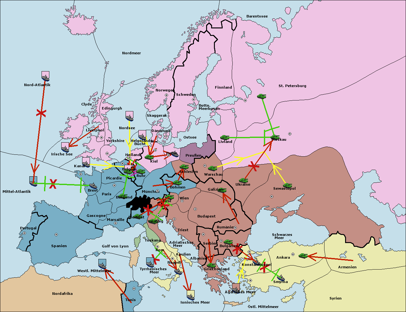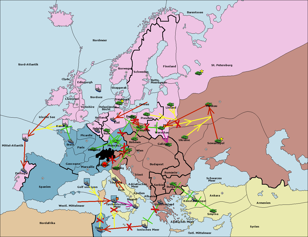 • Die Flotte in Nord Afrika support move nach Tunis von westl. Mittelmeer.