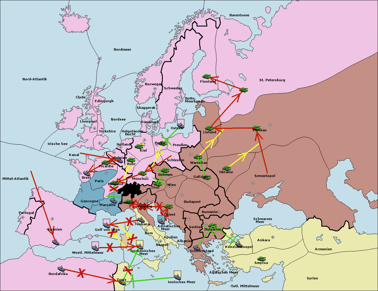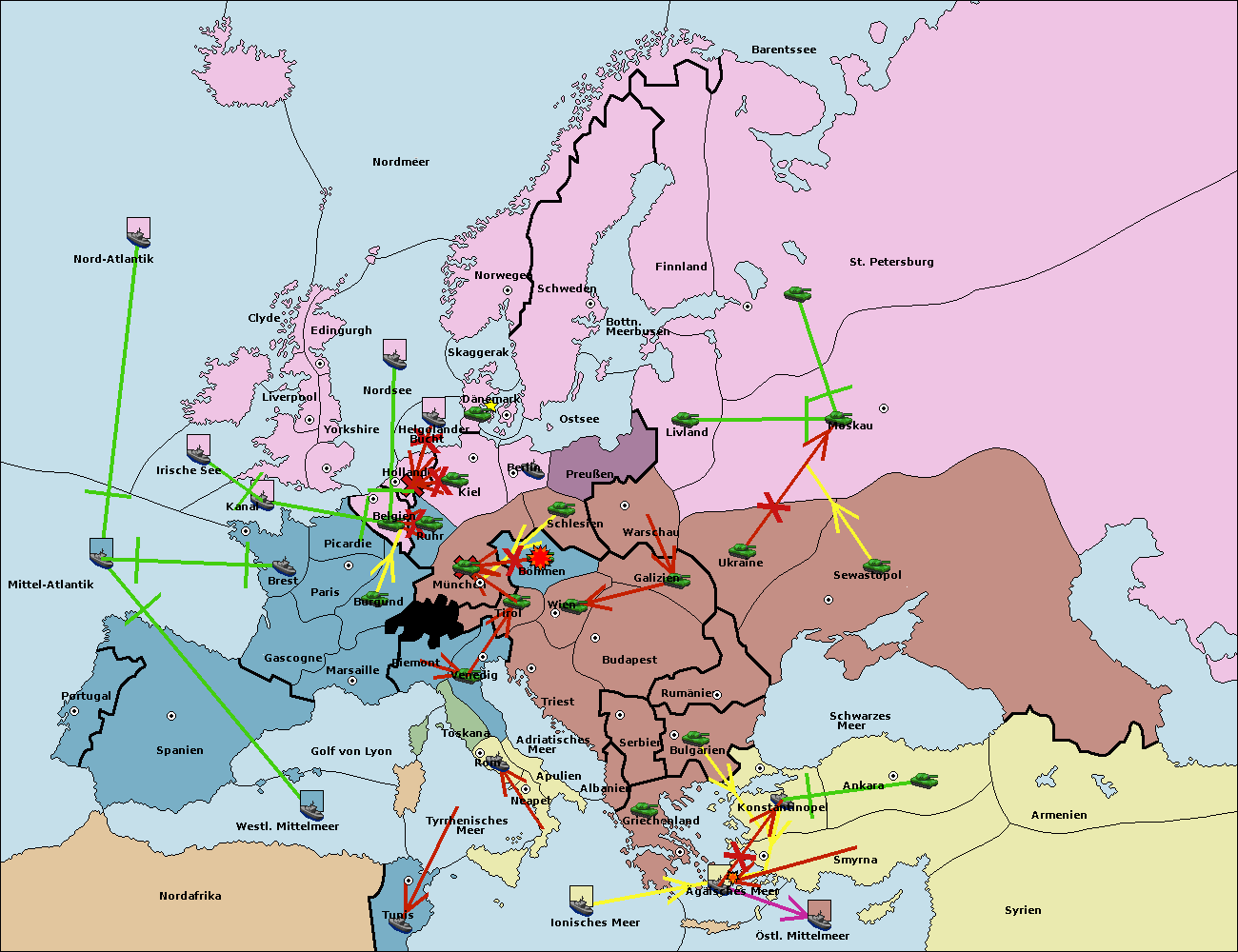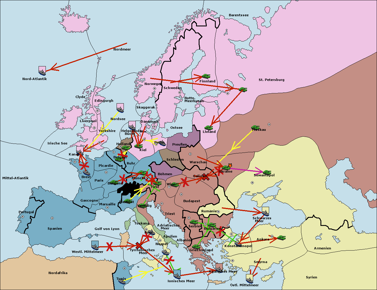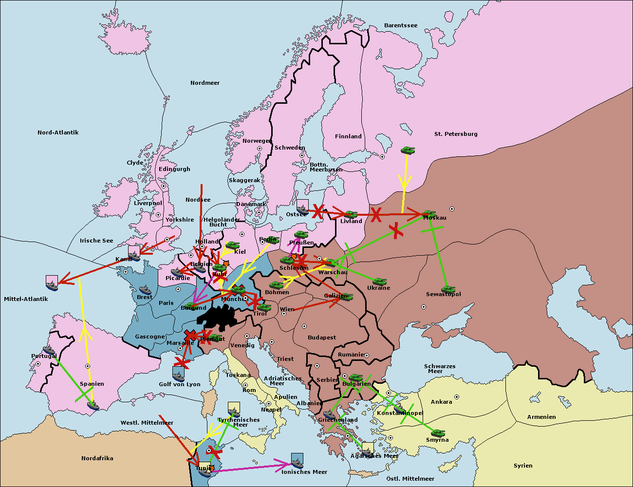 • Die Flotte in Nord Afrika support move nach Tunis von westl. Mittelmeer.