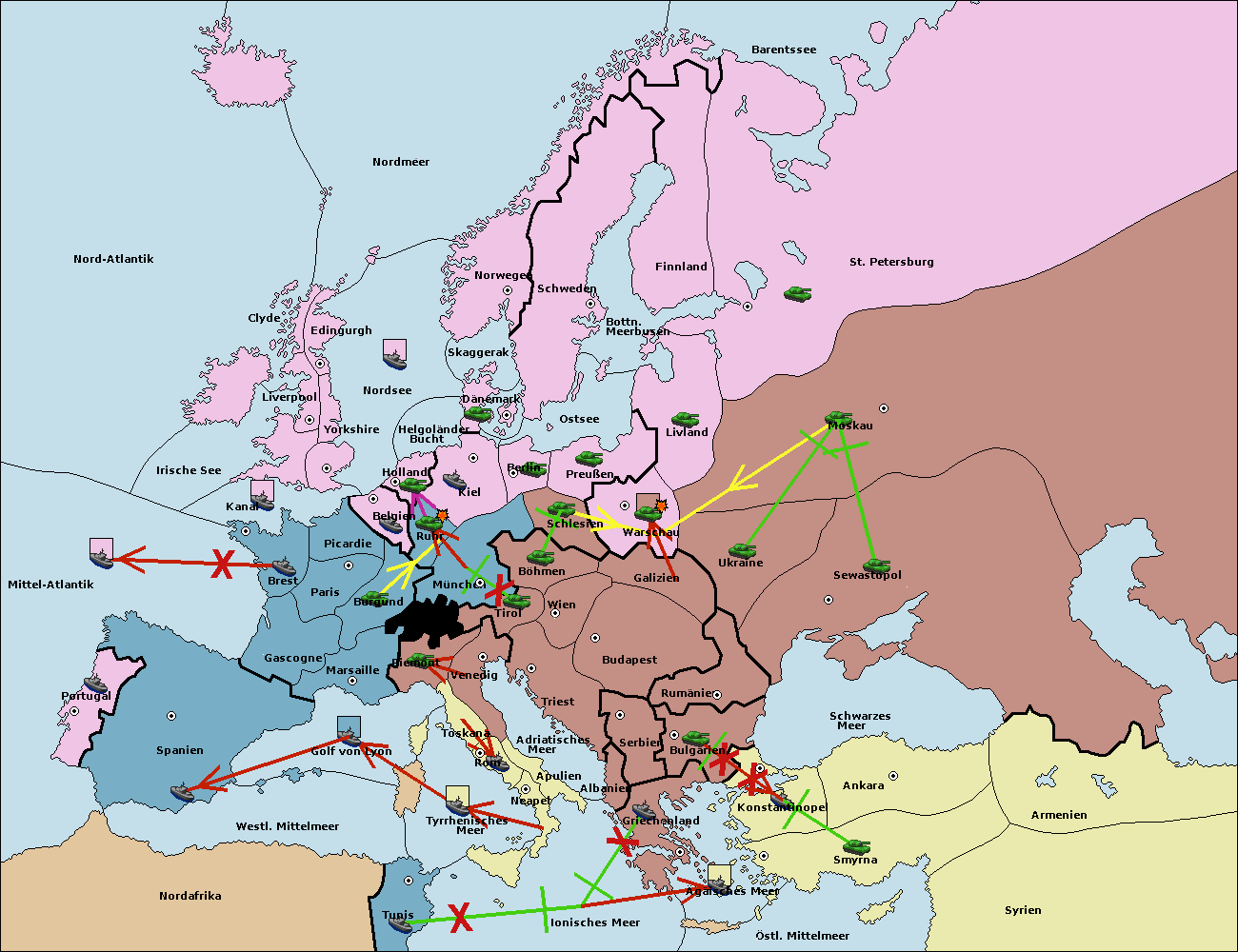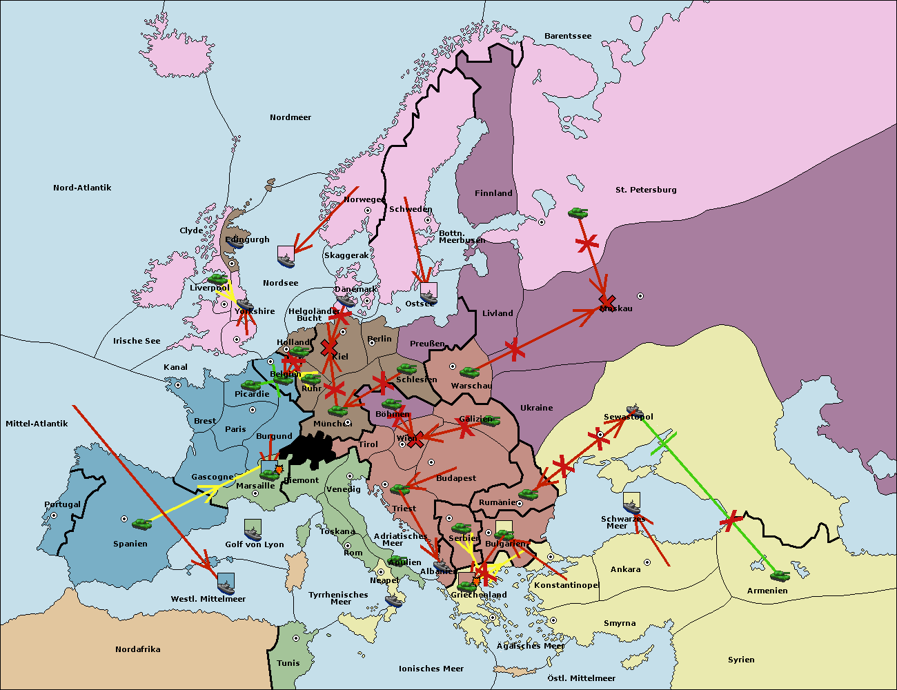 • Die Armee in Warschau support move nach Galizien von Wien.
