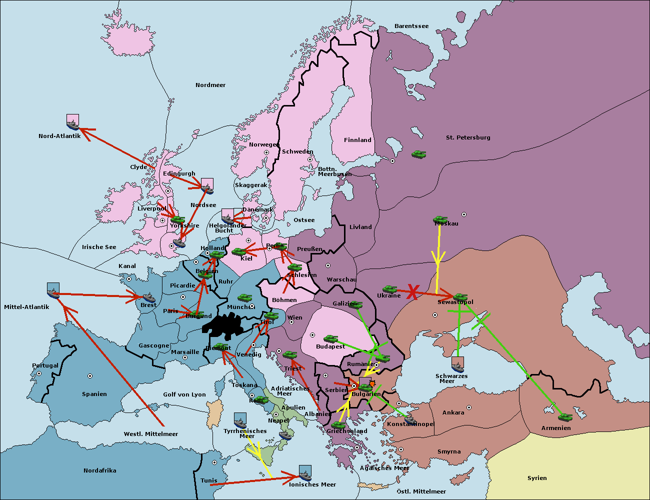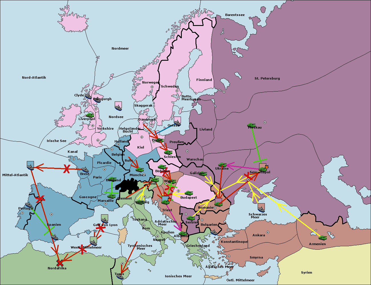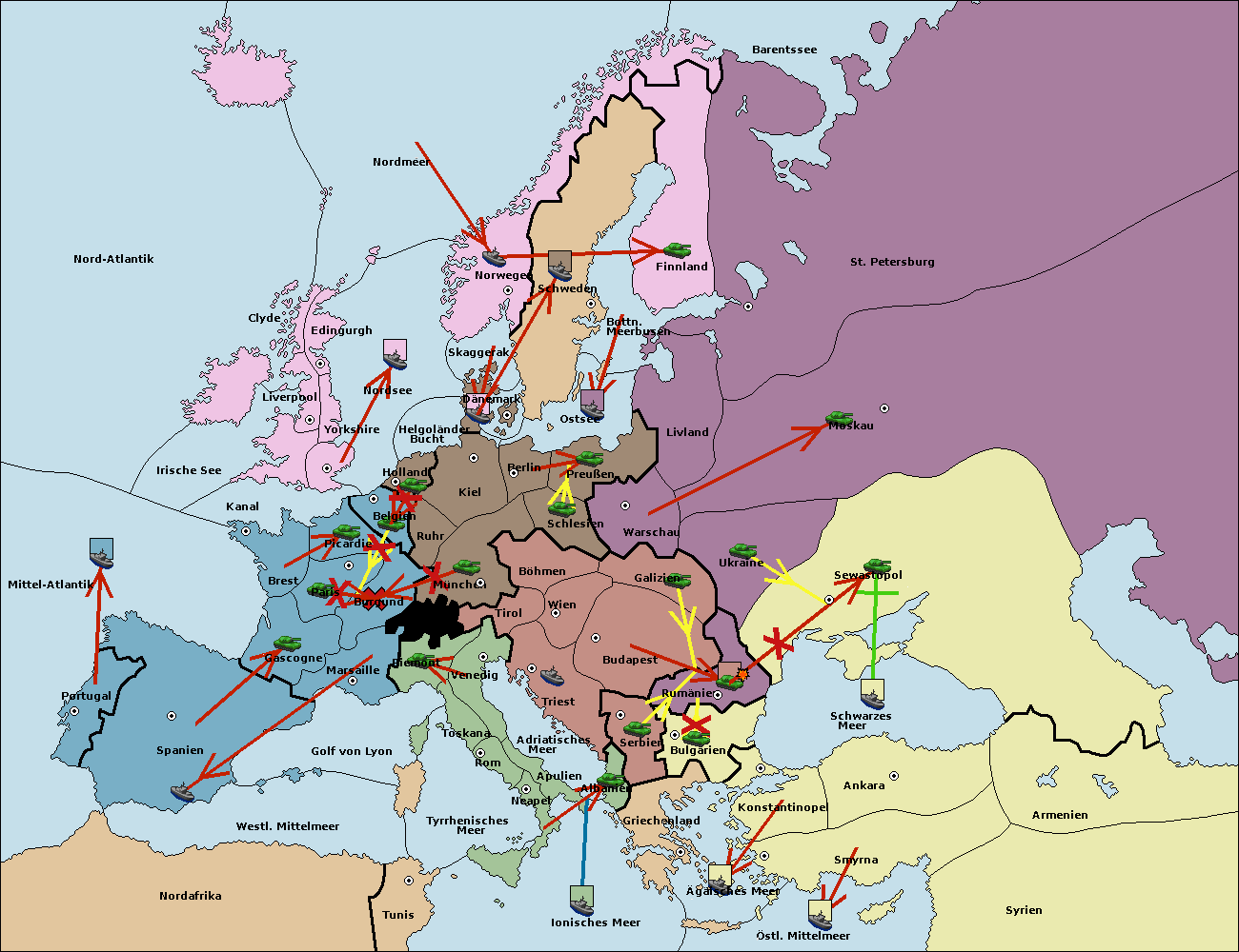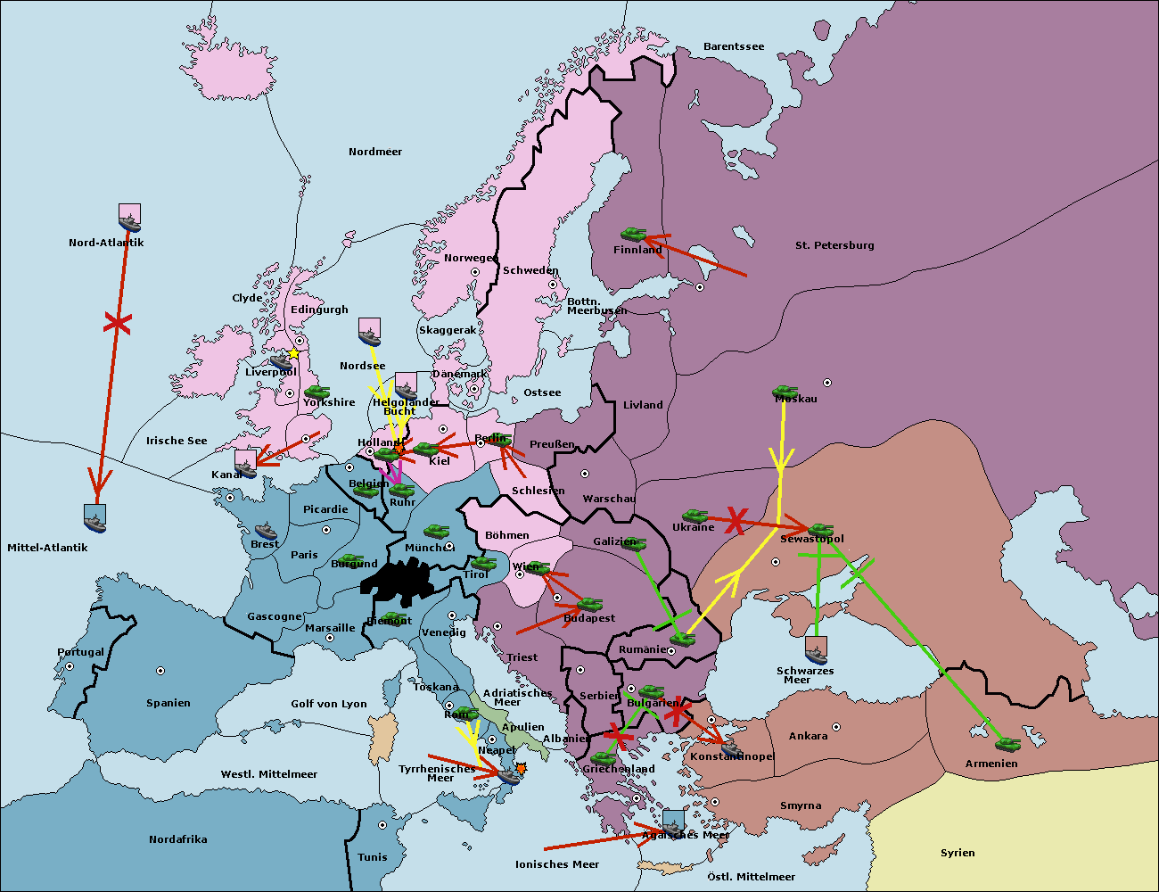• Die Flotte in Dänemark support move nach Kiel von Ostsee. (gescheitert)