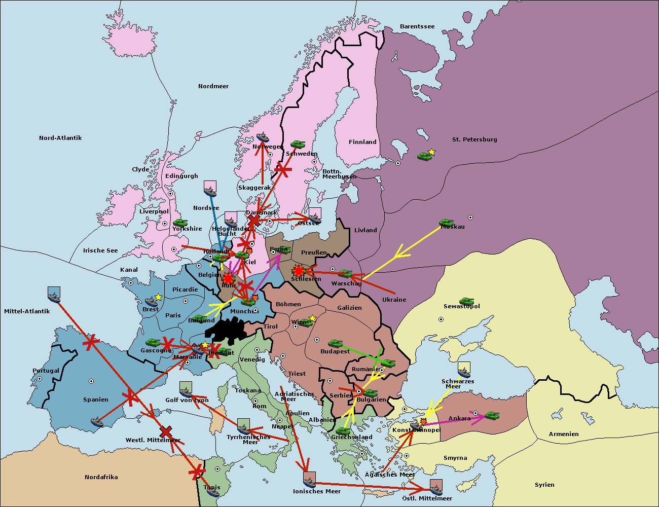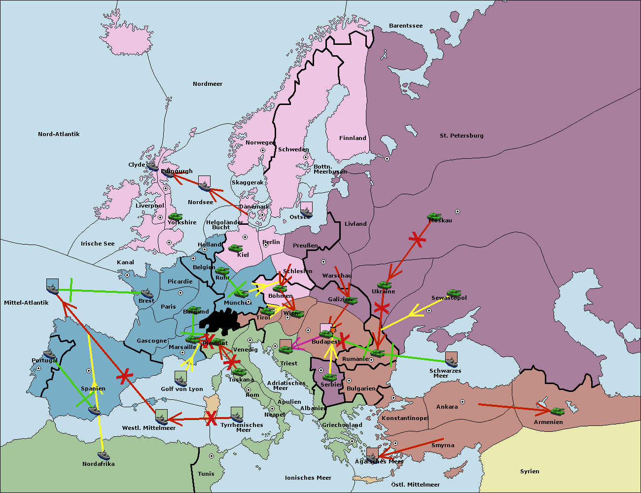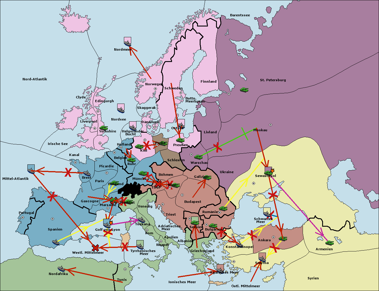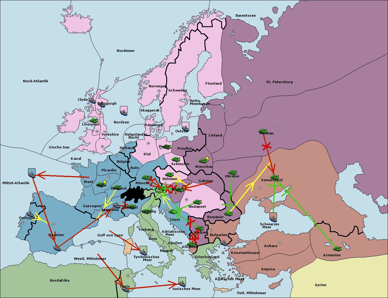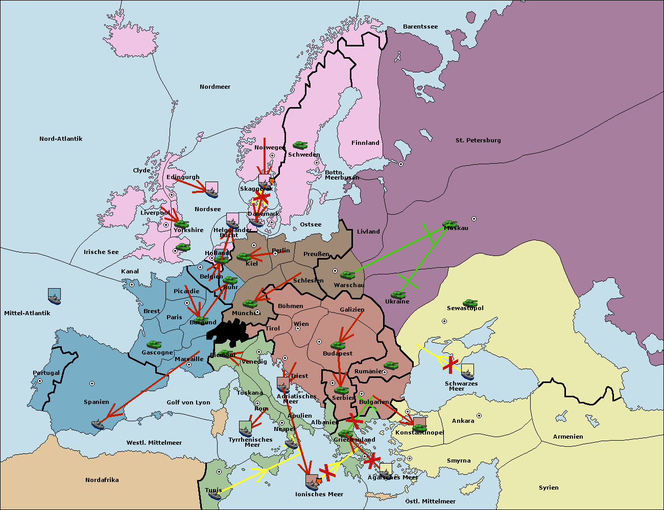• Die Flotte in Dänemark support move nach Kiel von Ostsee. (gescheitert)