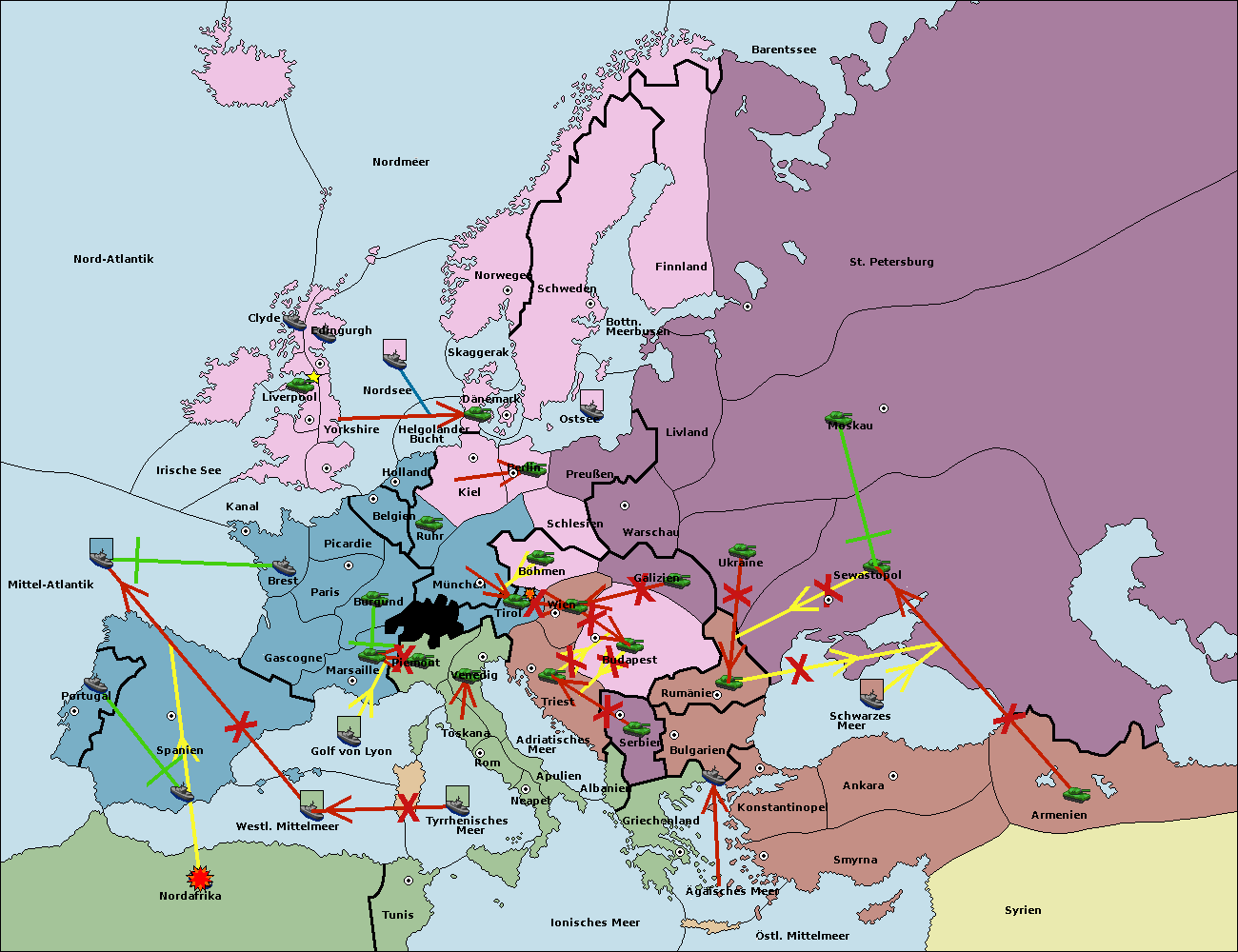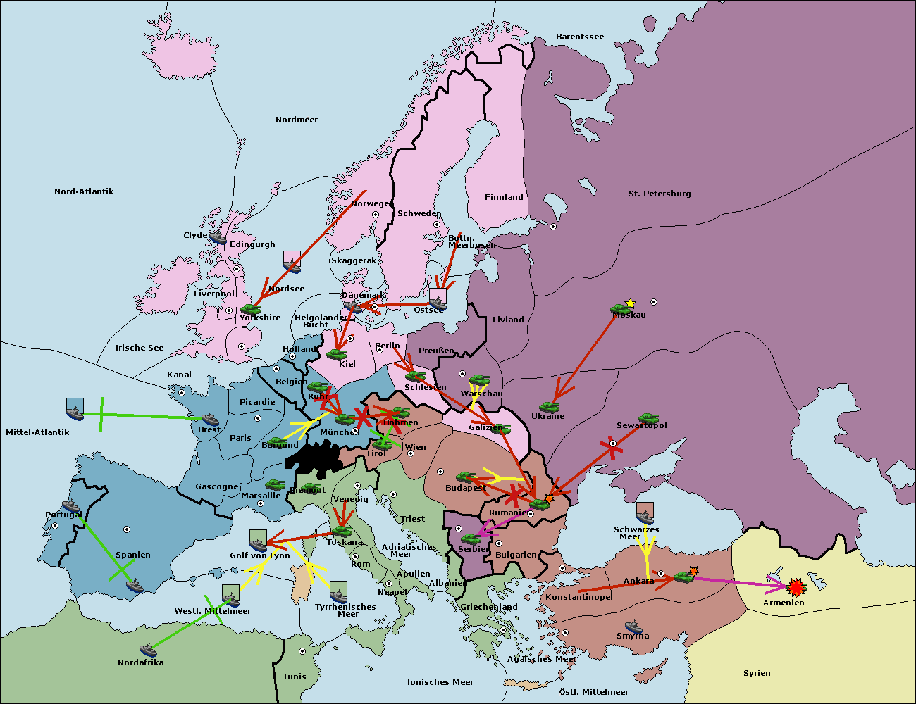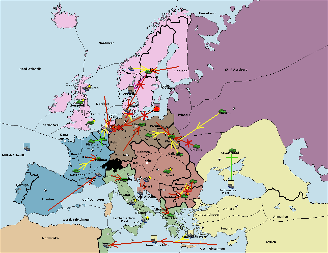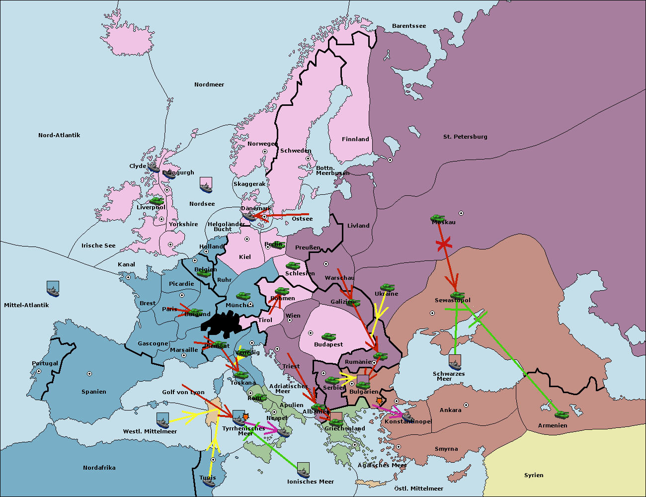 • Die Flotte in Dänemark support move nach Kiel von Ostsee. (gescheitert)