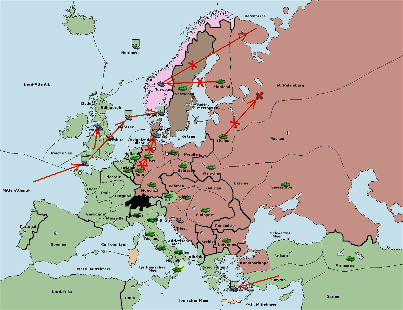 • Die Flotte in Barentssee move nach St. Petersburg (Nordküste). (gescheitert)