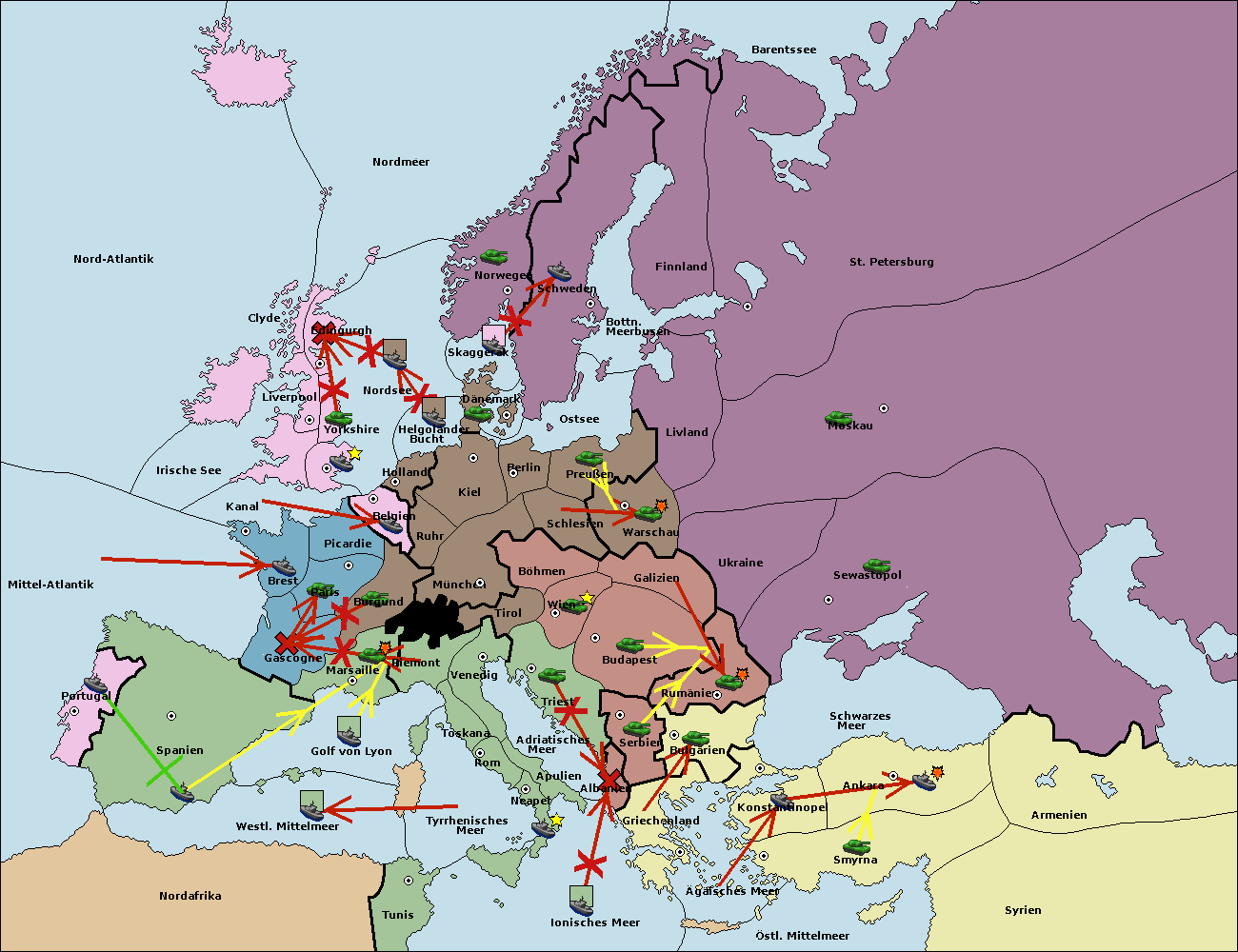 • Die Flotte in Spanien (Südküste) support move nach Marseille von Piemont. (gescheitert)
