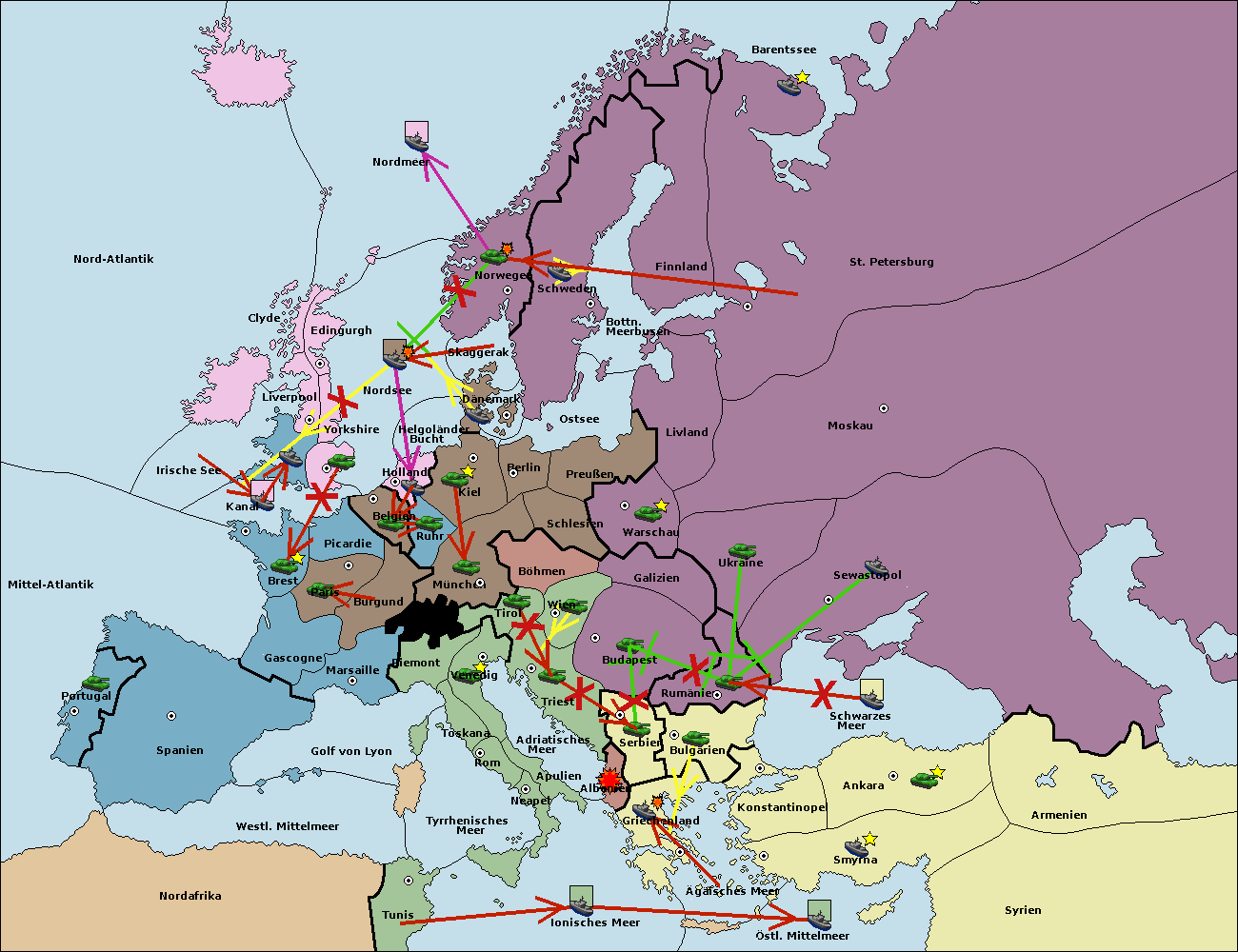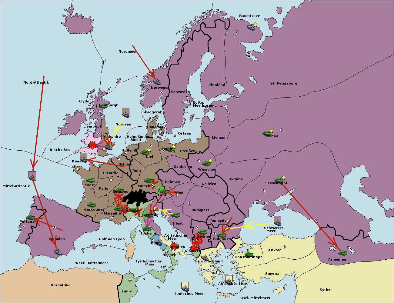 • Die Armee in Bulgarien wird zerstörtFlotte in Bulgarien gebaut.