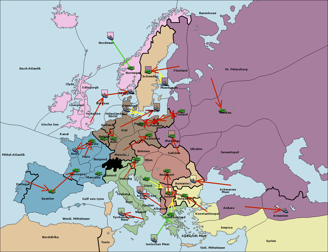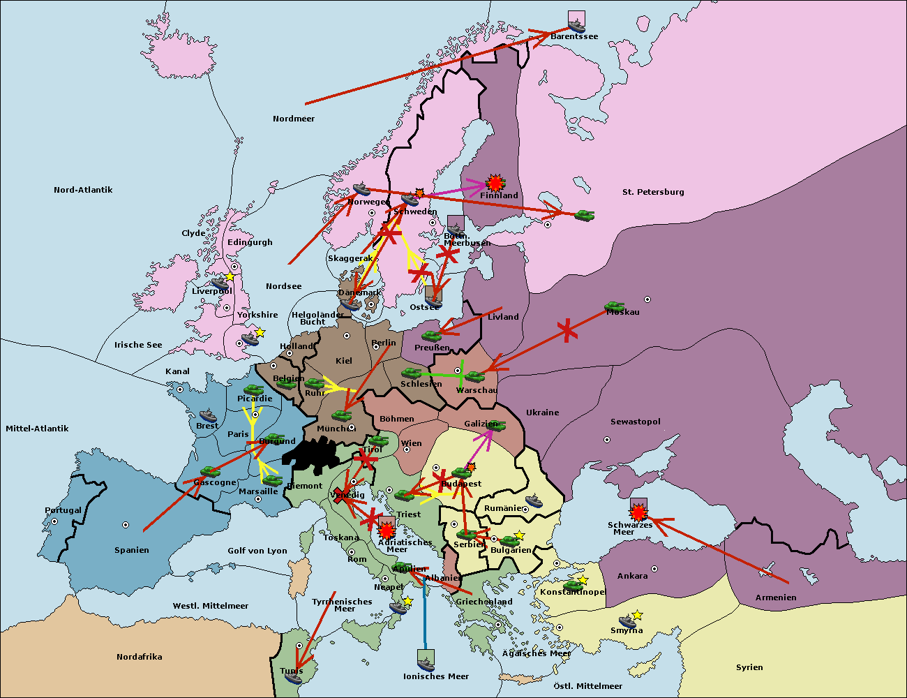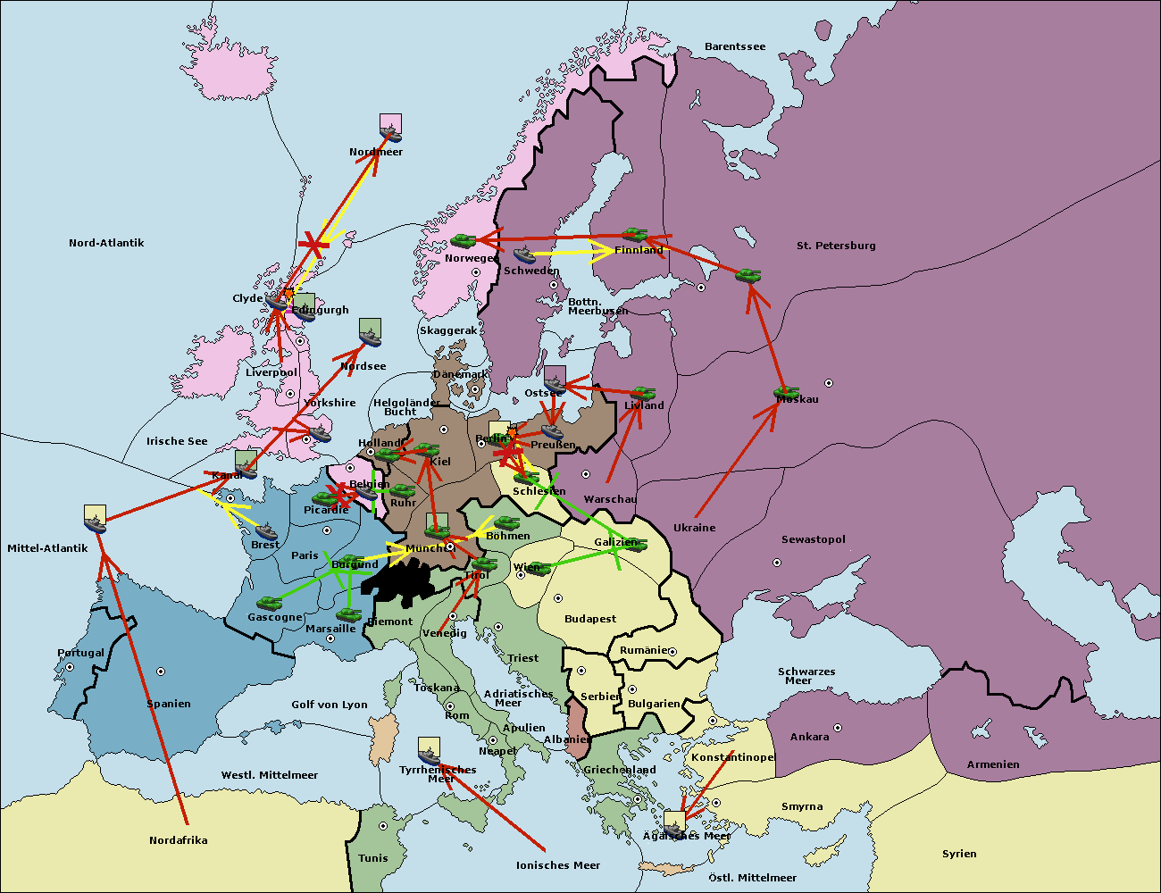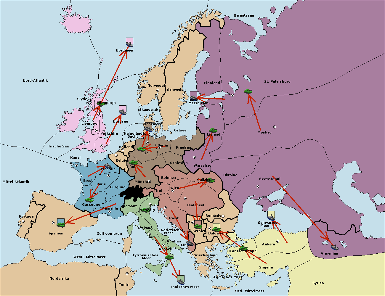 • Die Armee in Triest support move nach Serbien von Bulgarien.