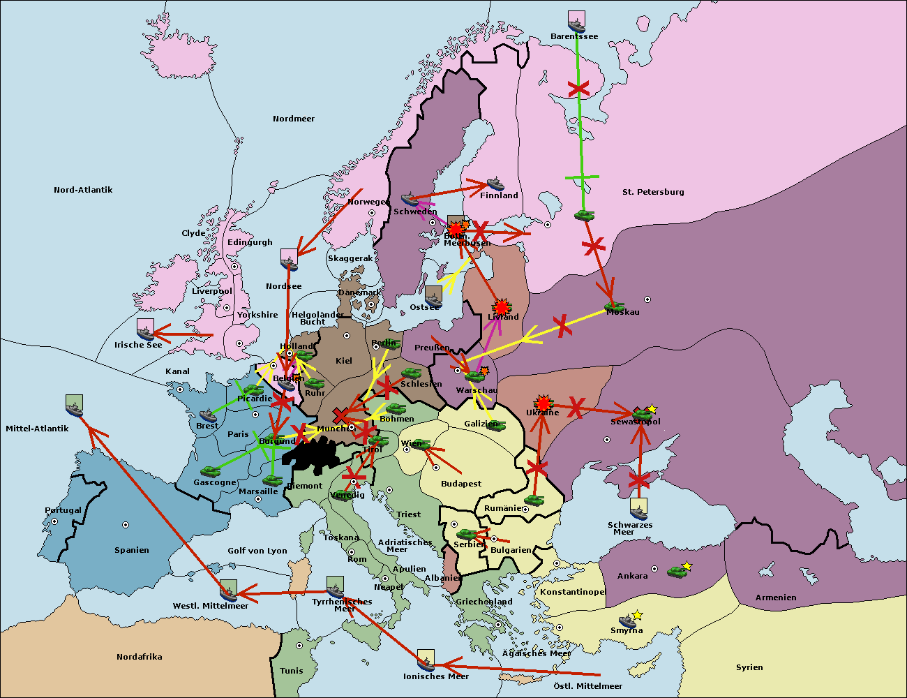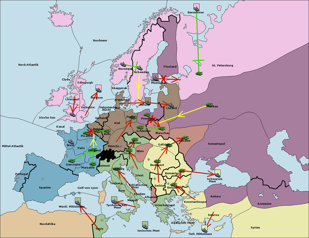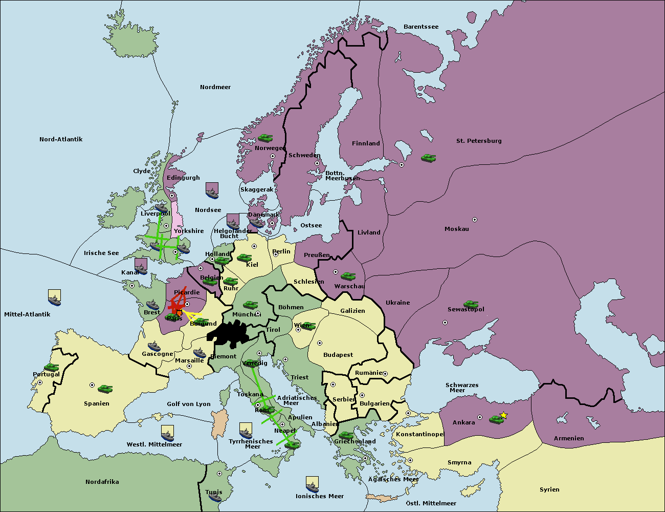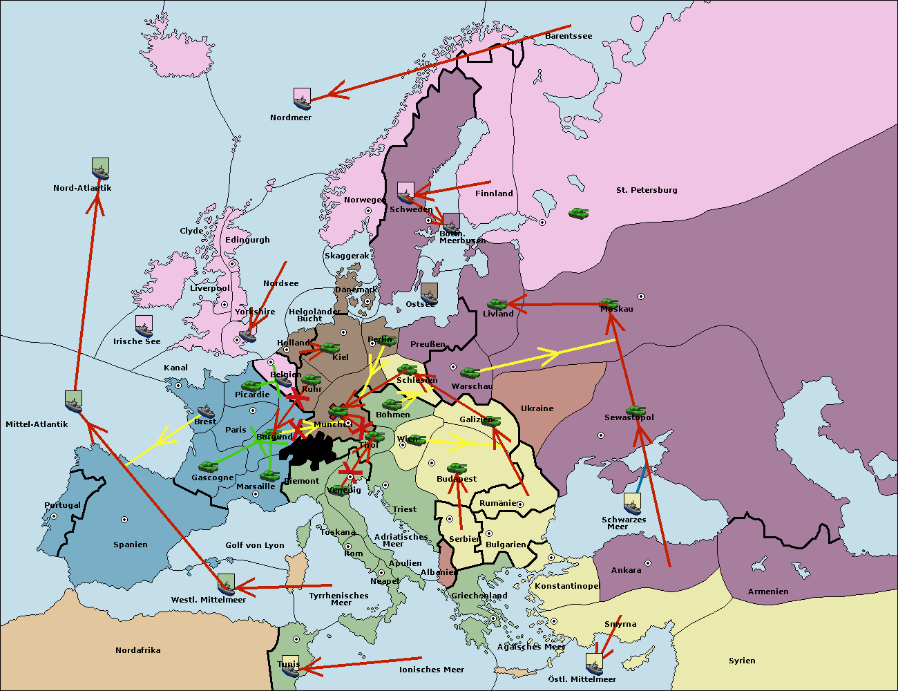 • Die Armee in Triest support move nach Serbien von Bulgarien.