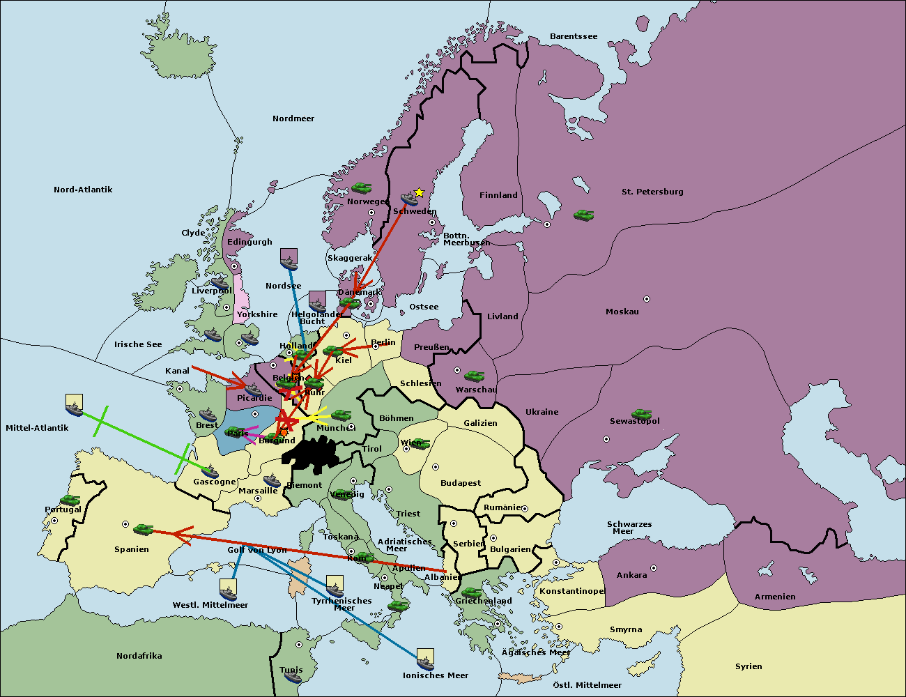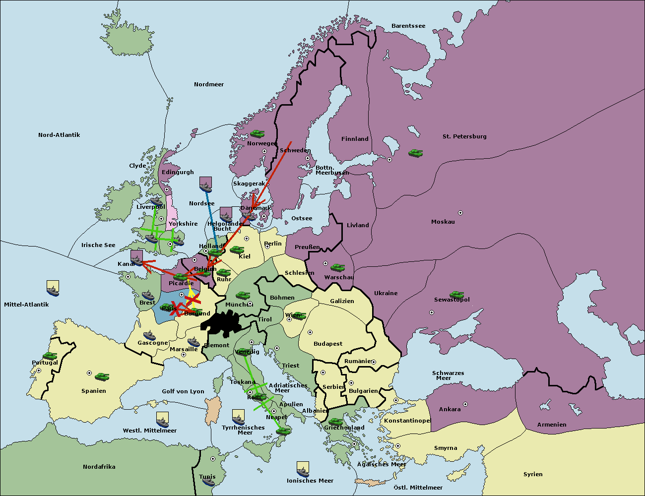 • Die Armee in Holland support move nach Belgien von Dänemark.
