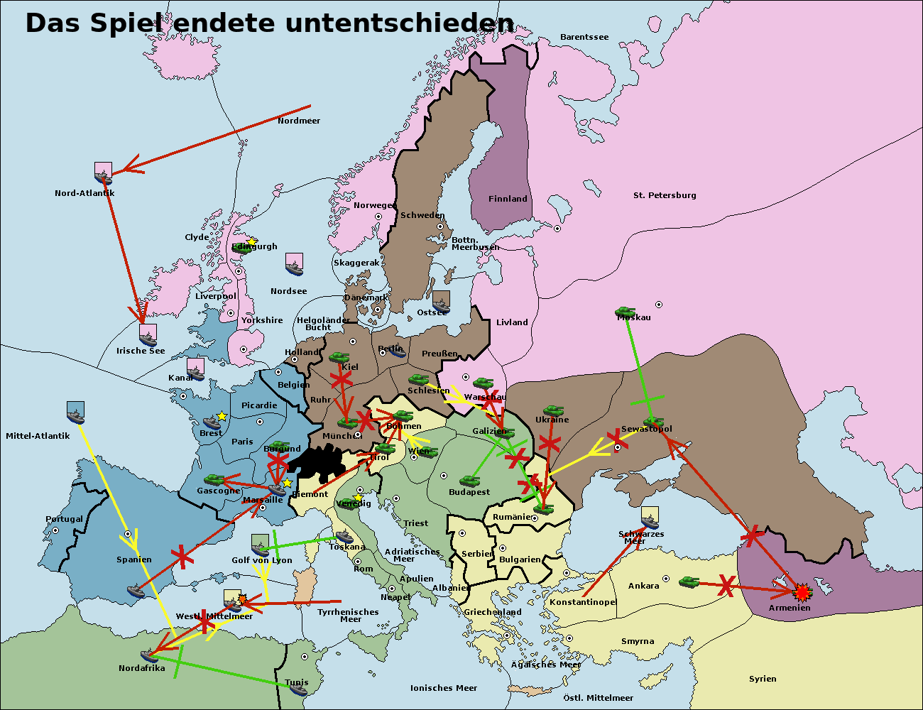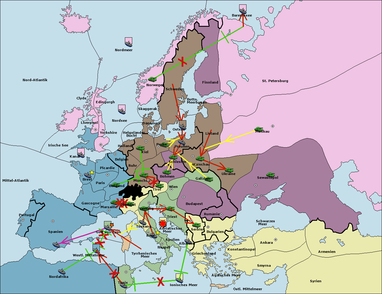 • Die Flotte in Spanien (Südküste) support move nach westl. Mittelmeer von Mittel-Atlantik. (gescheitert)