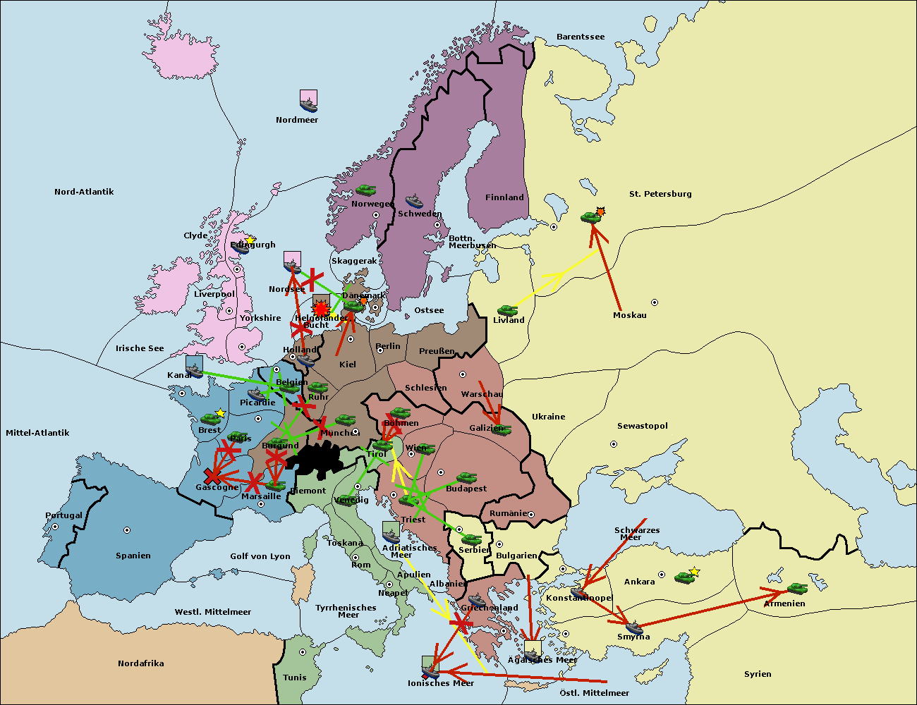 • Die Armee in Kiel support move nach München von Ruhr. (gescheitert)