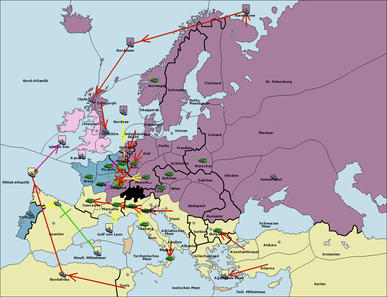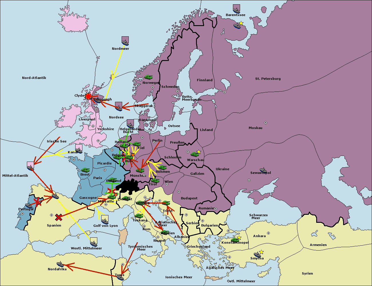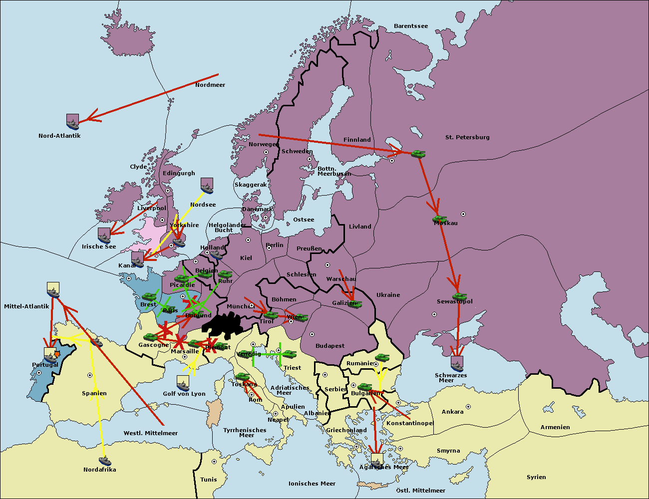 • Die Flotte in Nord Afrika support move nach Mittel-Atlantik von westl. Mittelmeer.