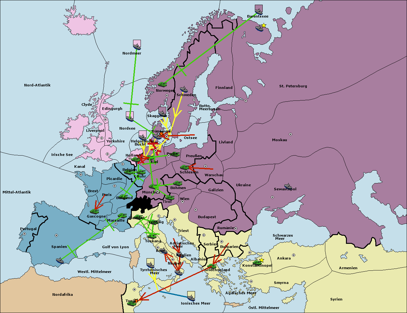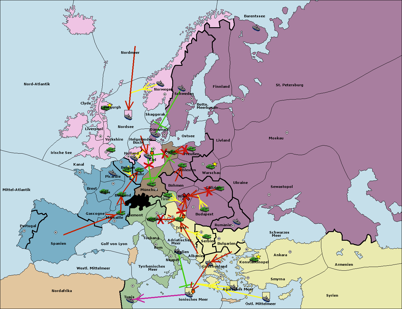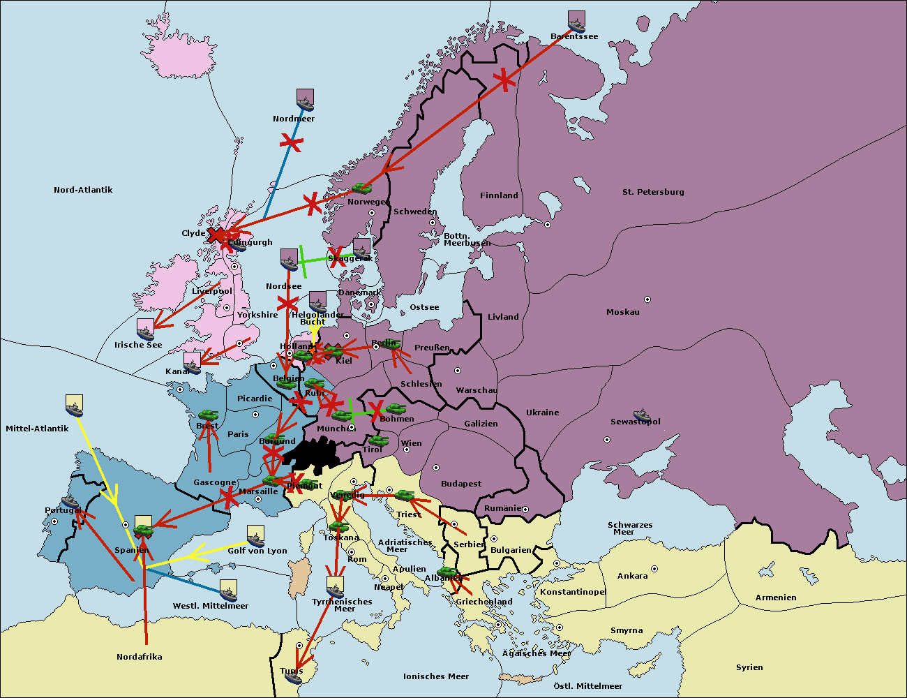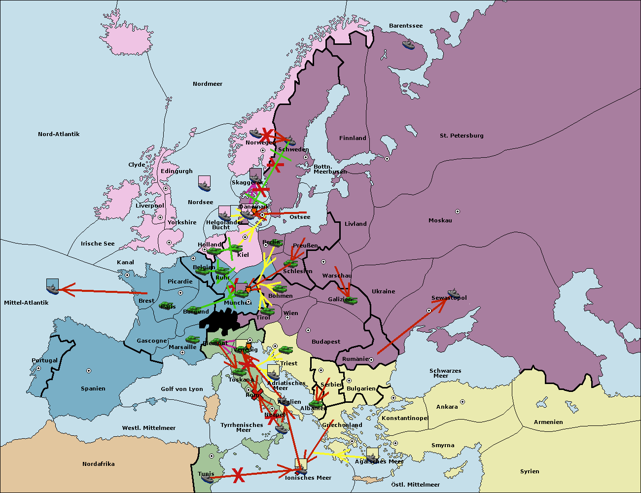 • Die Flotte in Nord Afrika support move nach Mittel-Atlantik von westl. Mittelmeer.