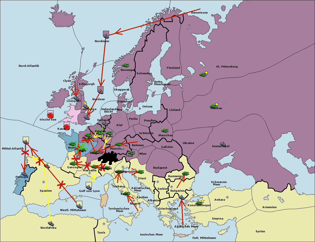 • Die Armee in Bulgarien wird zerstörtFlotte in Bulgarien gebaut.