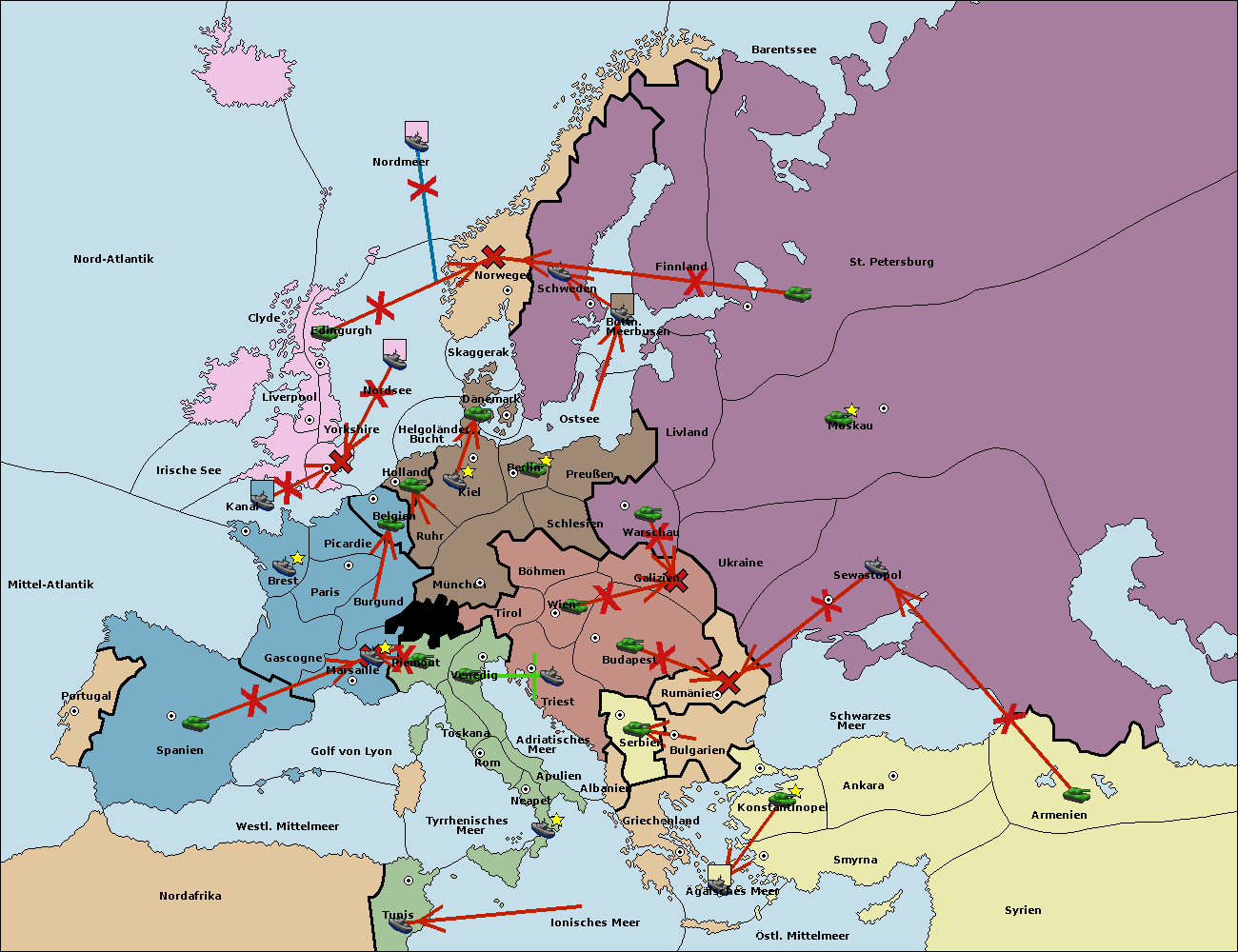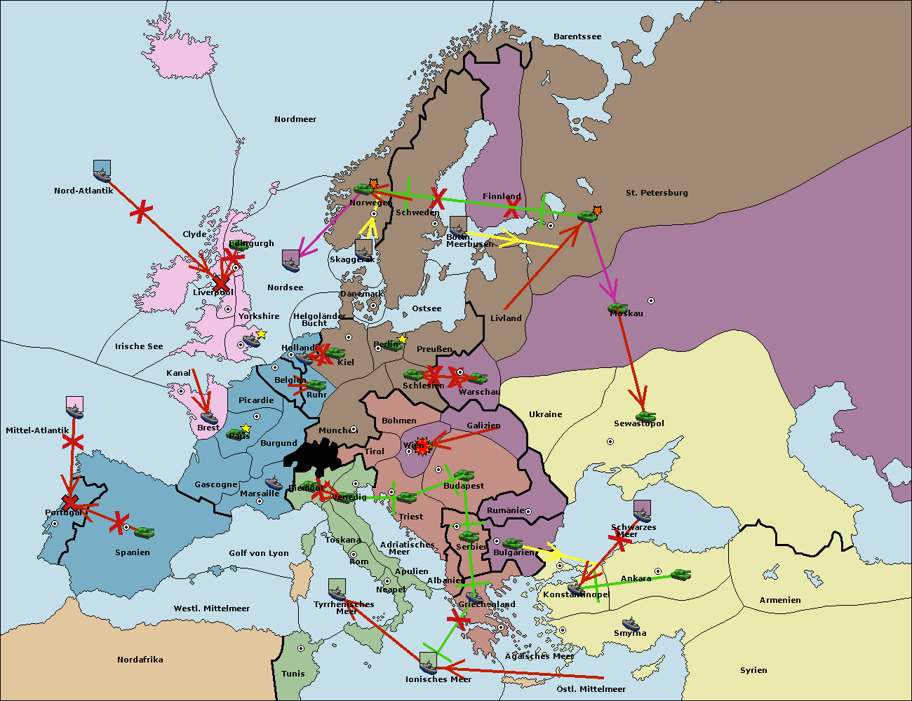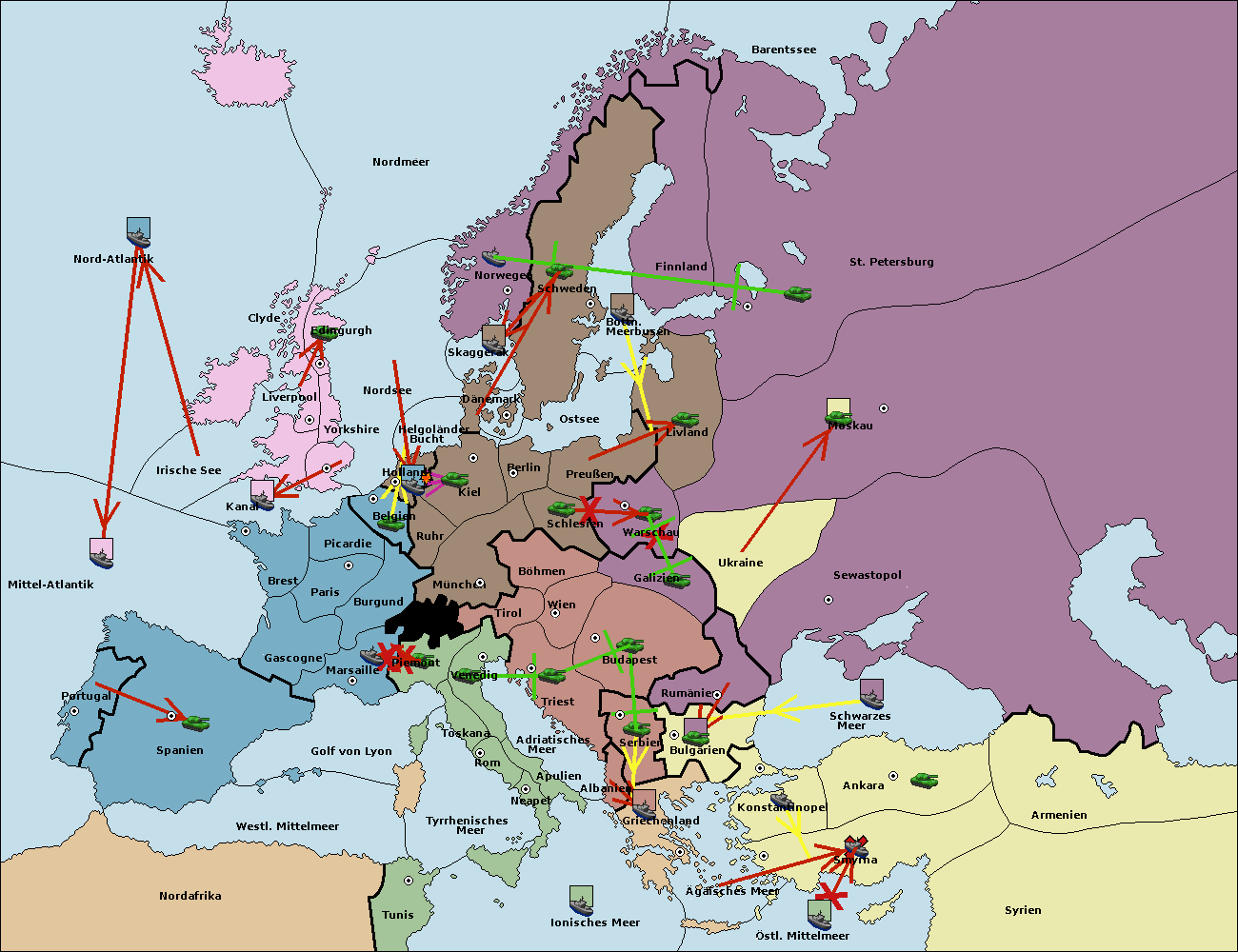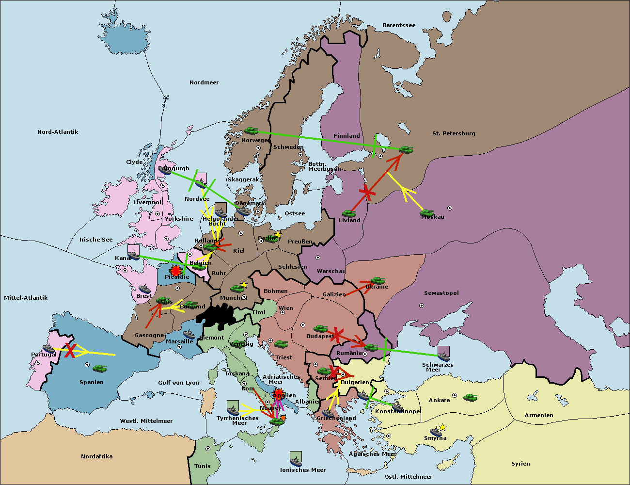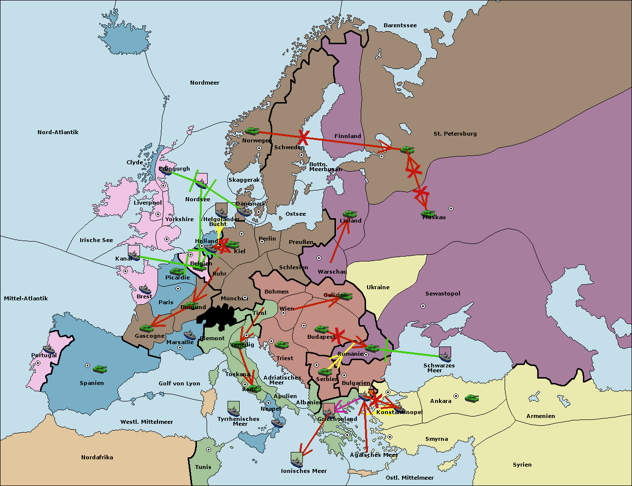 • Die Armee in St. Petersburg support hold nach Norwegen. (gescheitert)