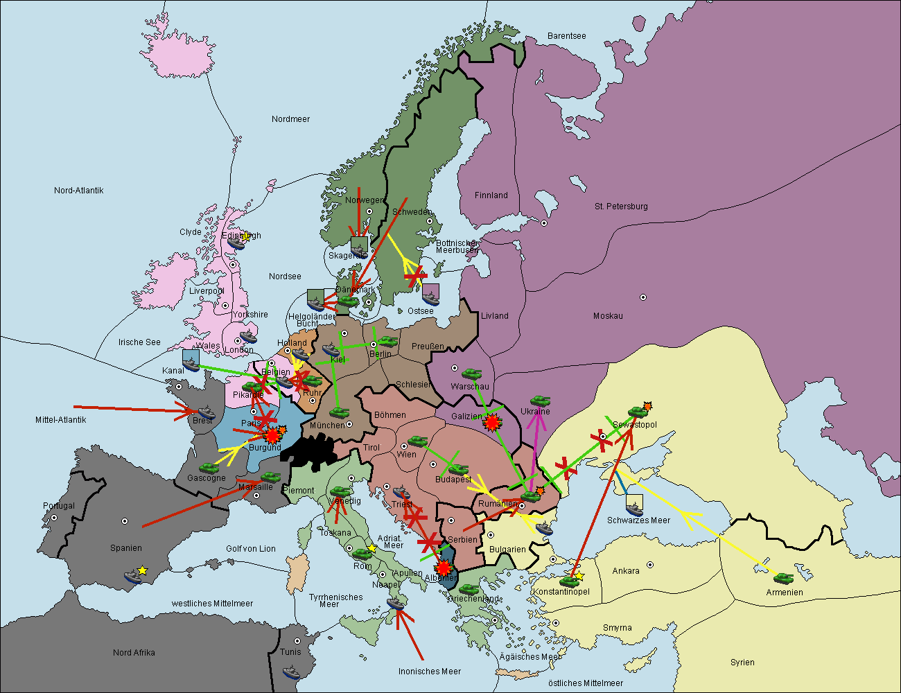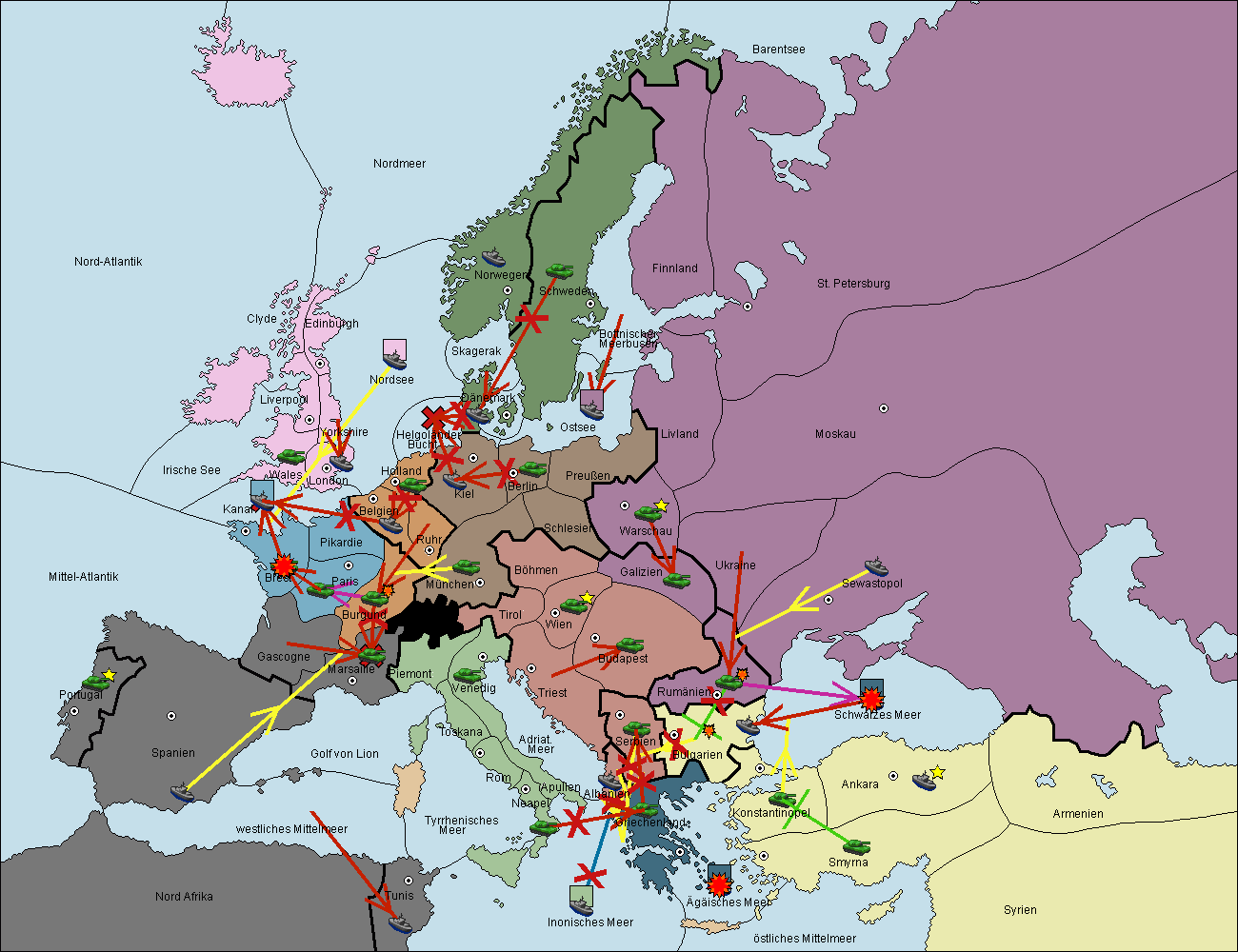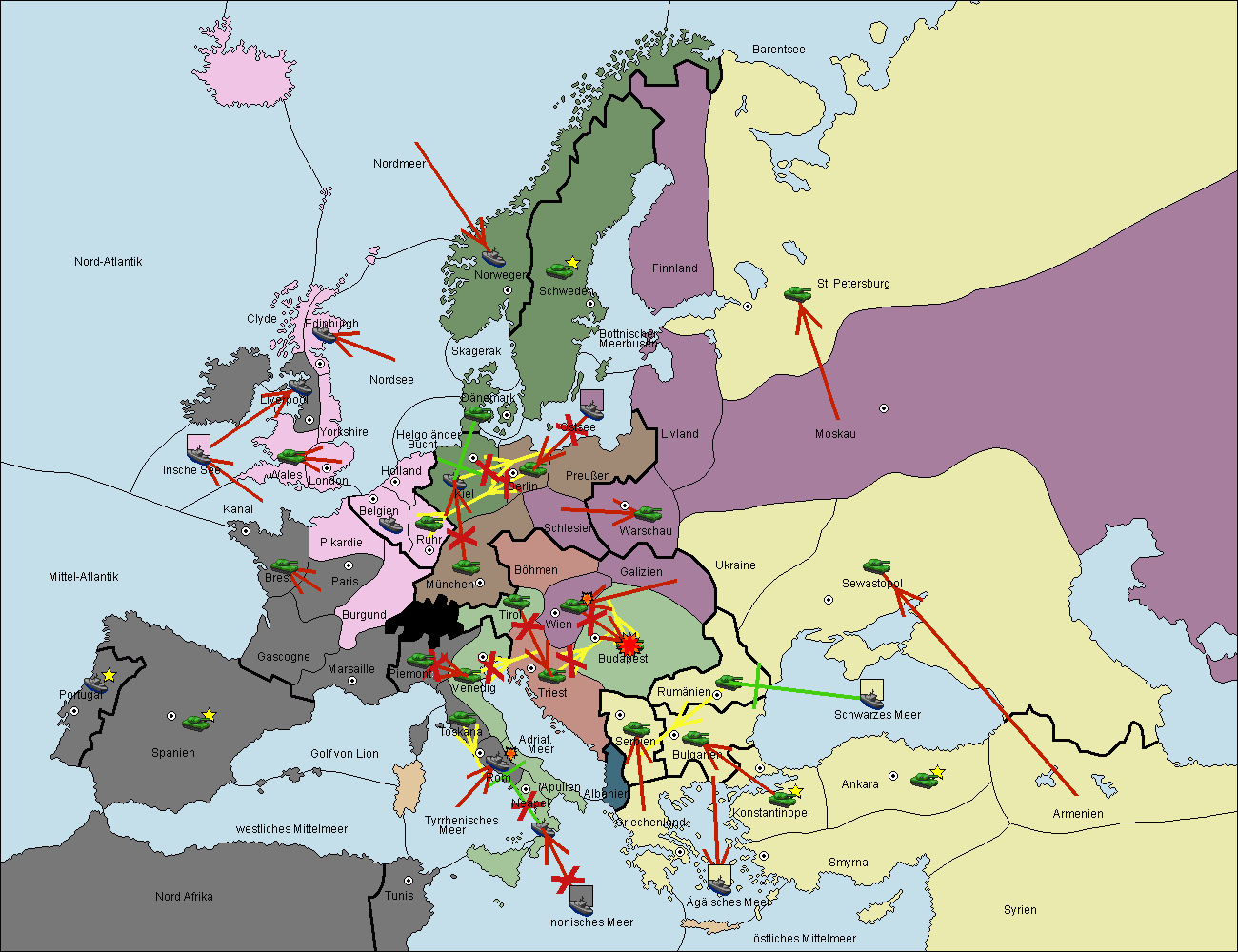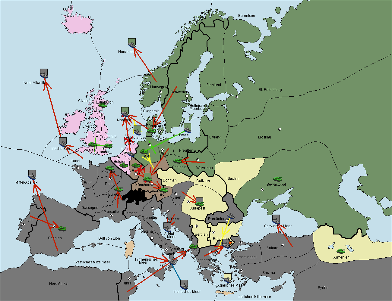 • Die Armee in Bulgarien wird zerstörtFlotte in Bulgarien gebaut.