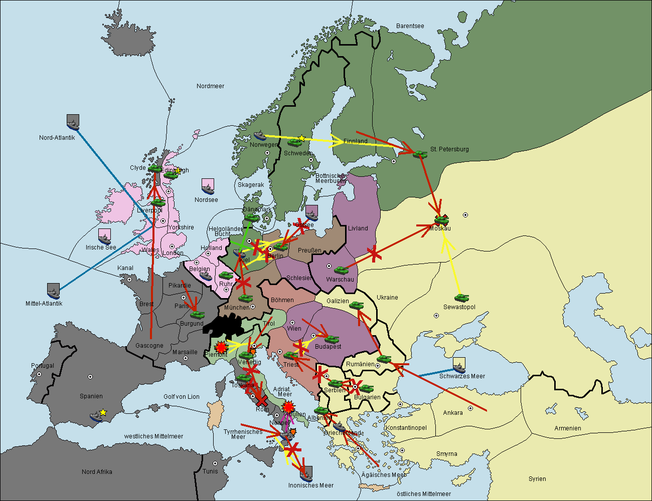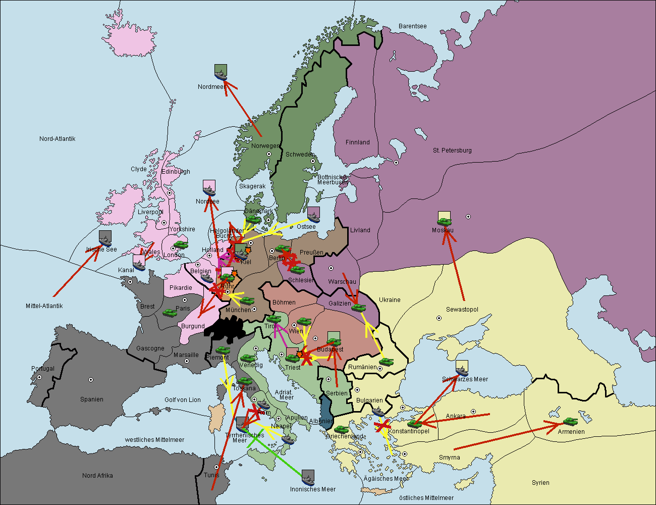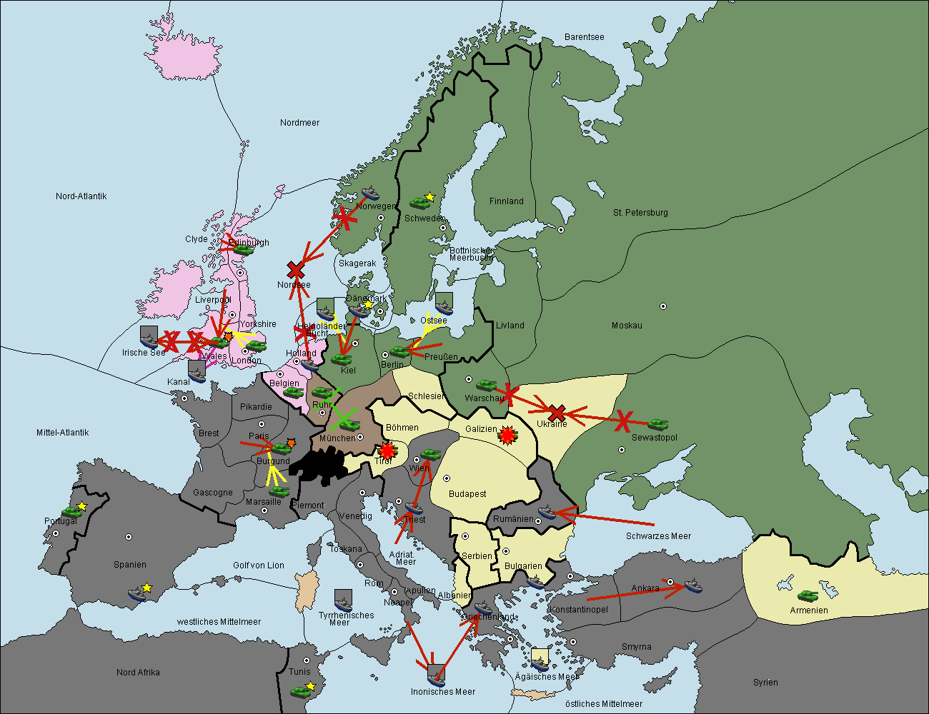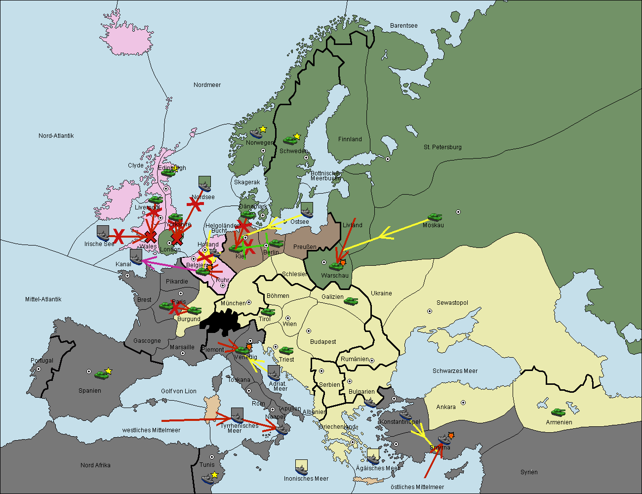 • Die Armee in Bulgarien wird zerstörtFlotte in Bulgarien gebaut.