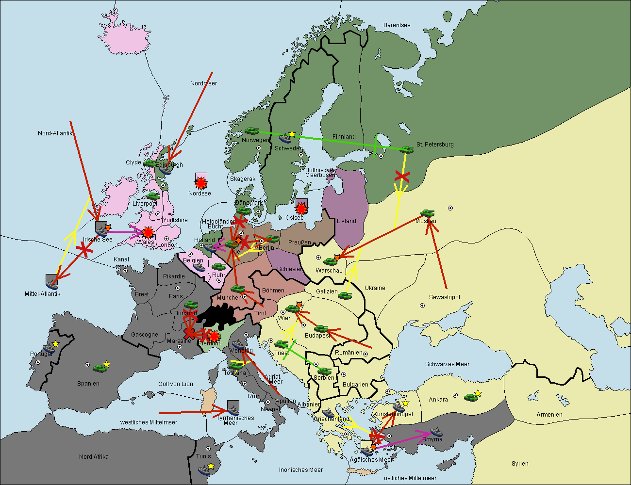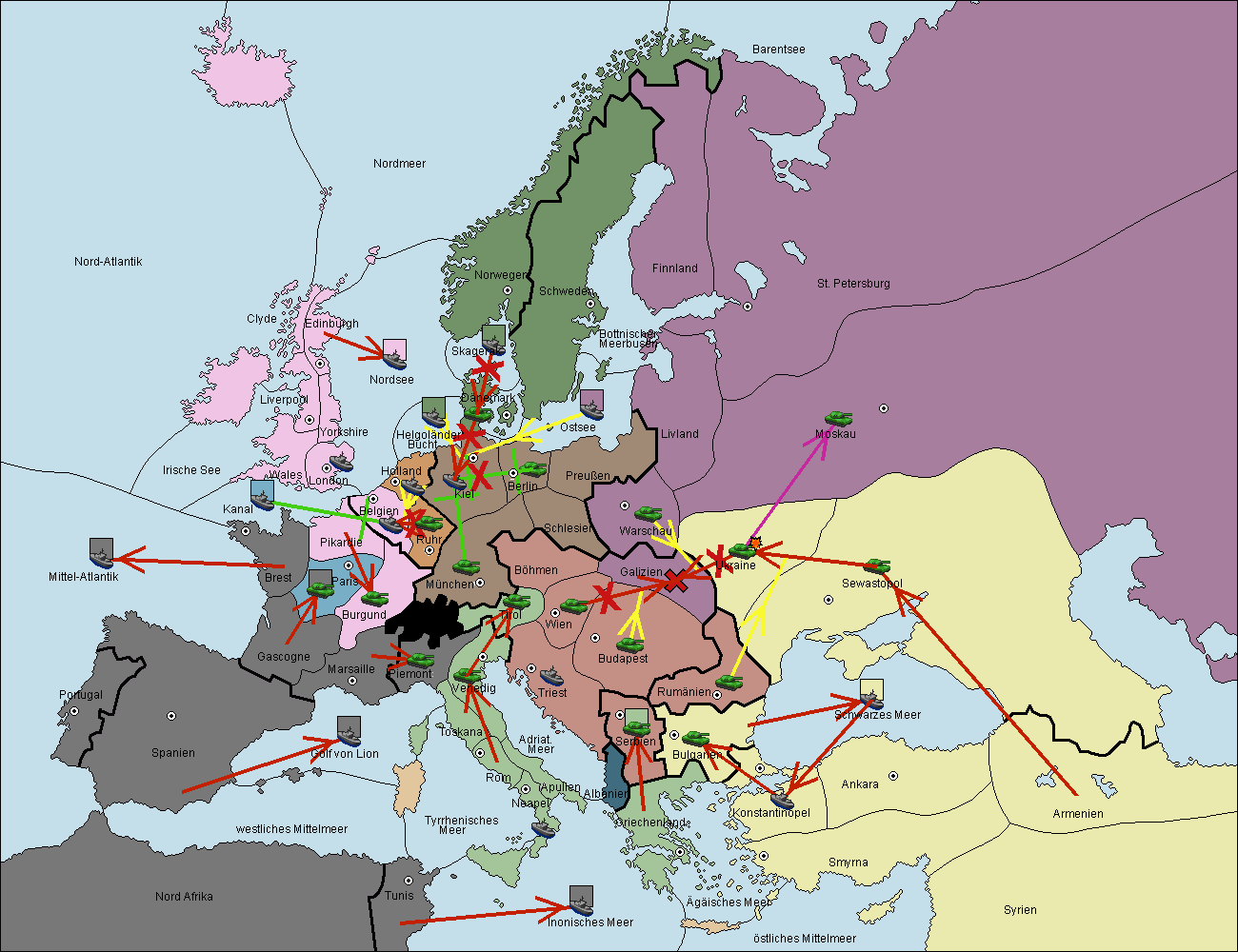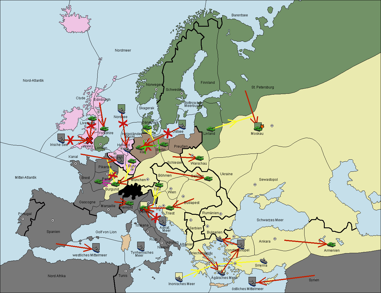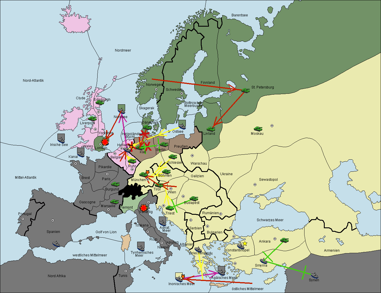 • Die Armee in Bulgarien wird zerstörtFlotte in Bulgarien gebaut.