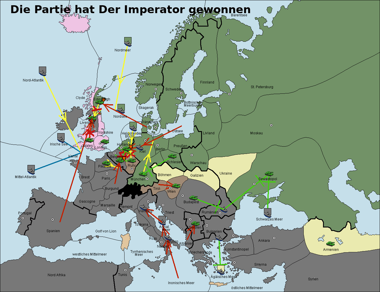 • Die Armee in Kiel support move nach München von Berlin.