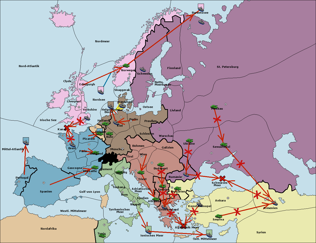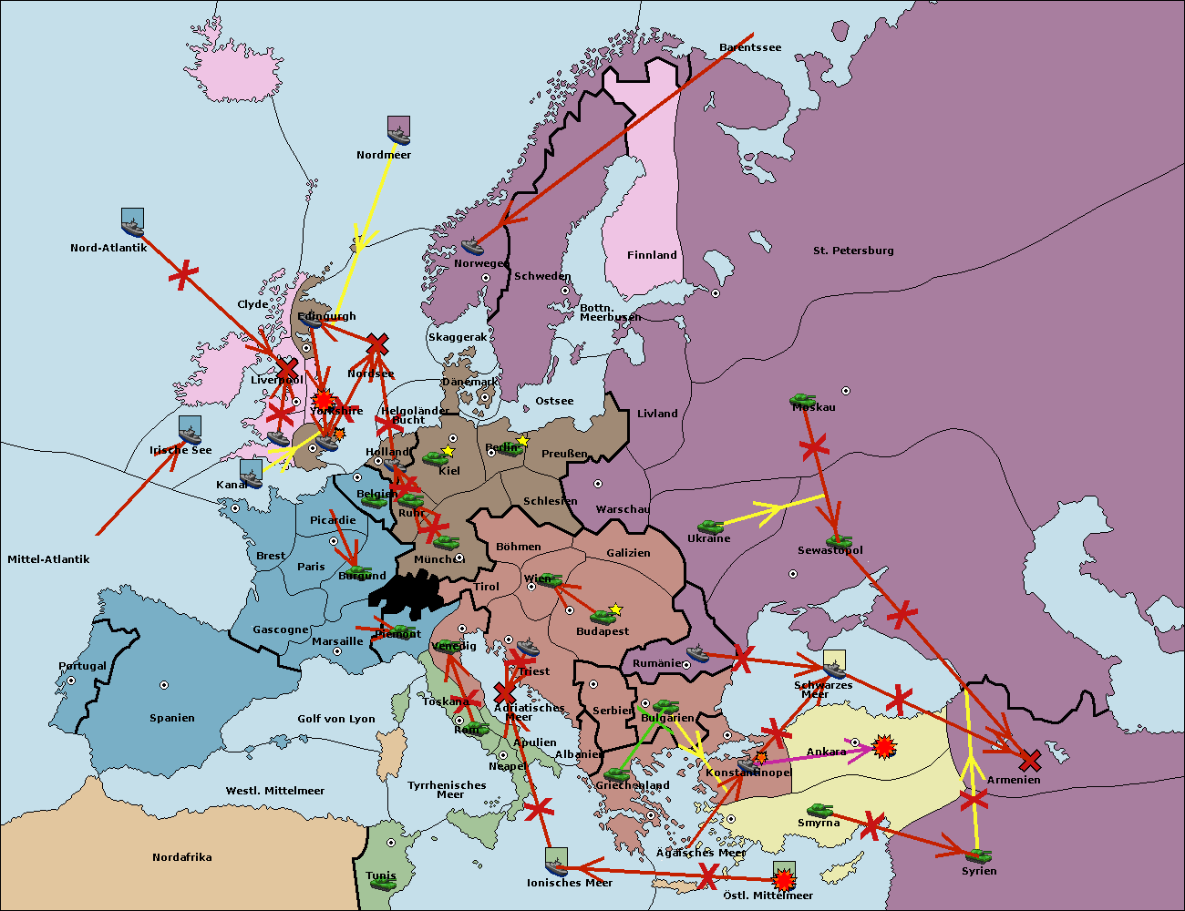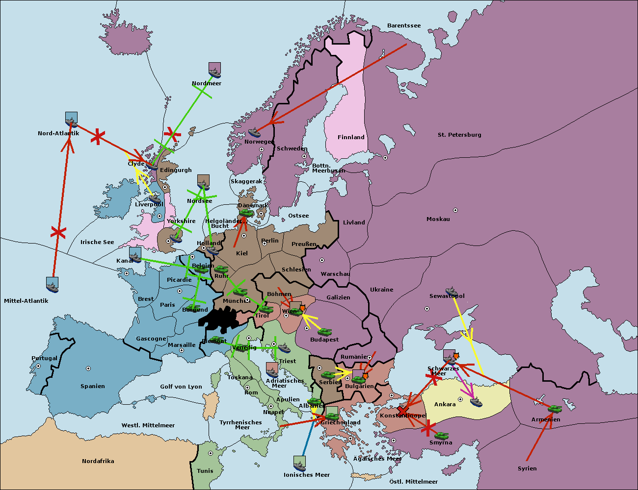 • Die Flotte in Konstantinopel support move nach Ägäisches Meer von östl. Mittelmeer. (gescheitert)