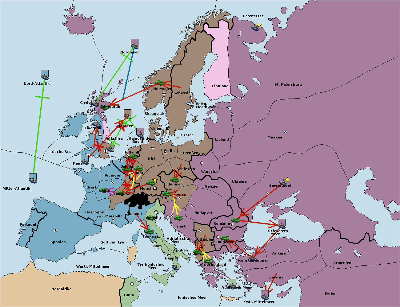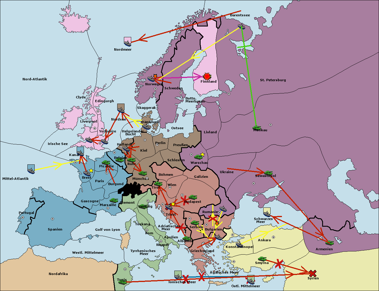 • Die Flotte in St. Petersburg (Nordküste) support move nach Norwegen von Schweden.