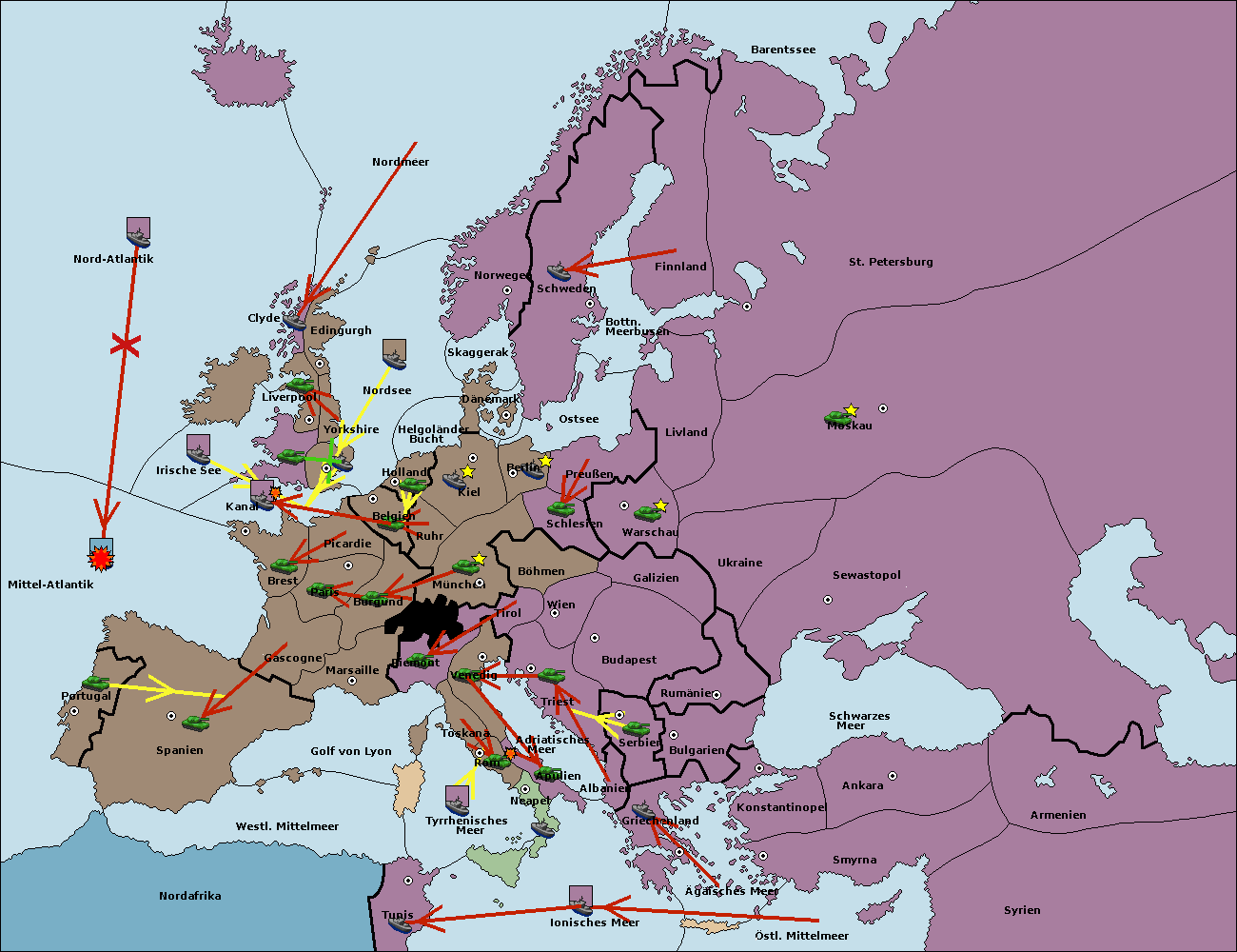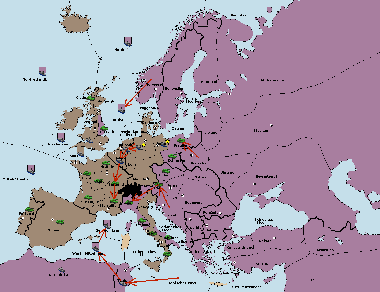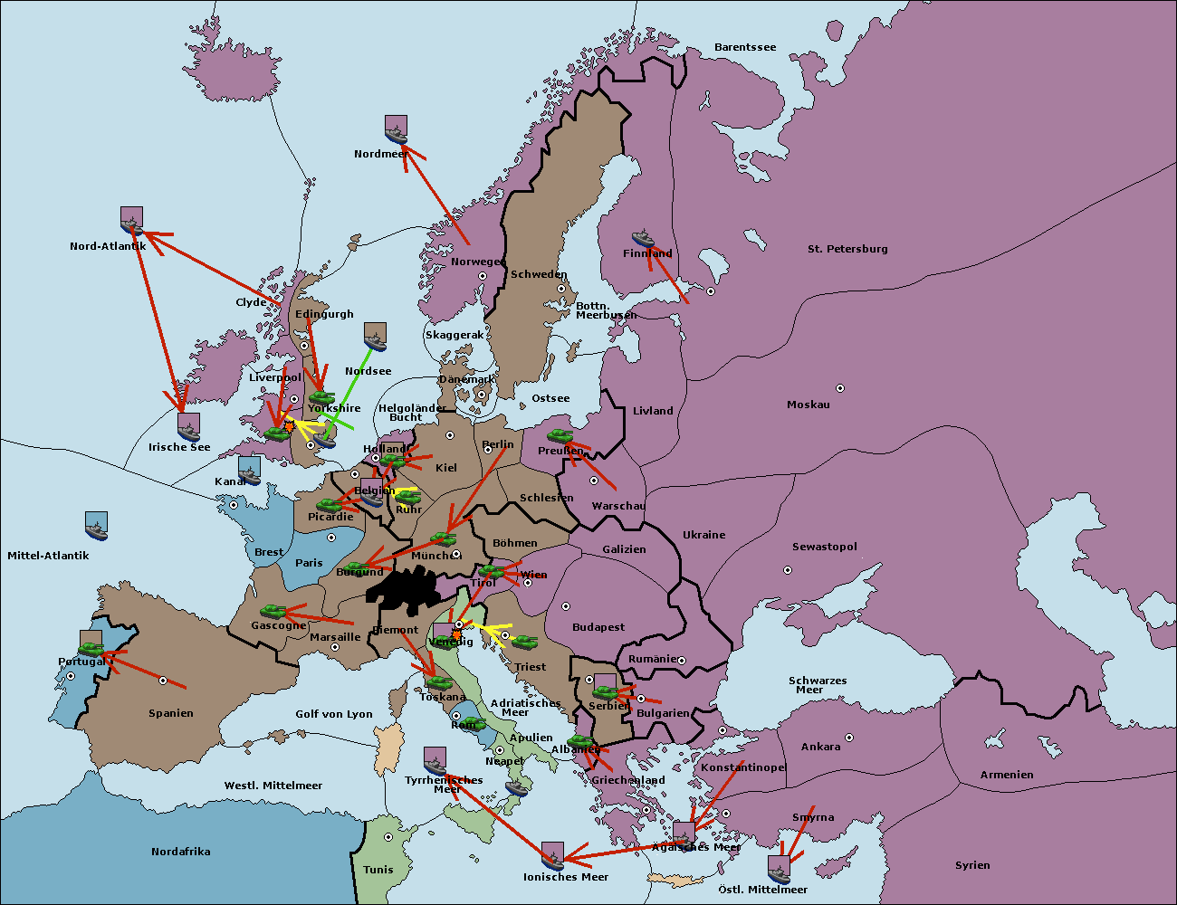 • Die Flotte in Mittel-Atlantik support move nach Kanal von Brest.