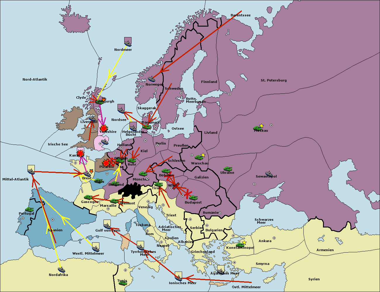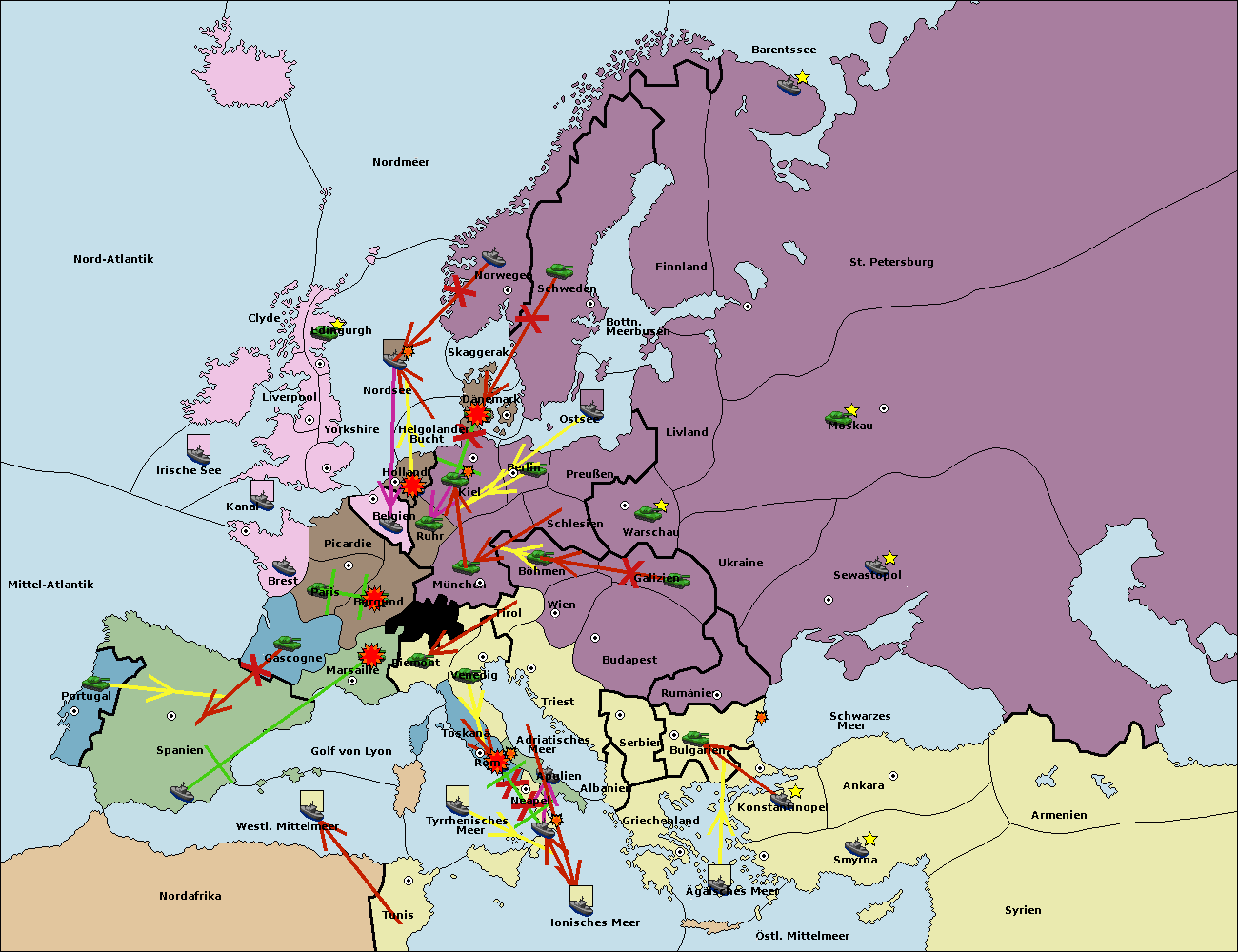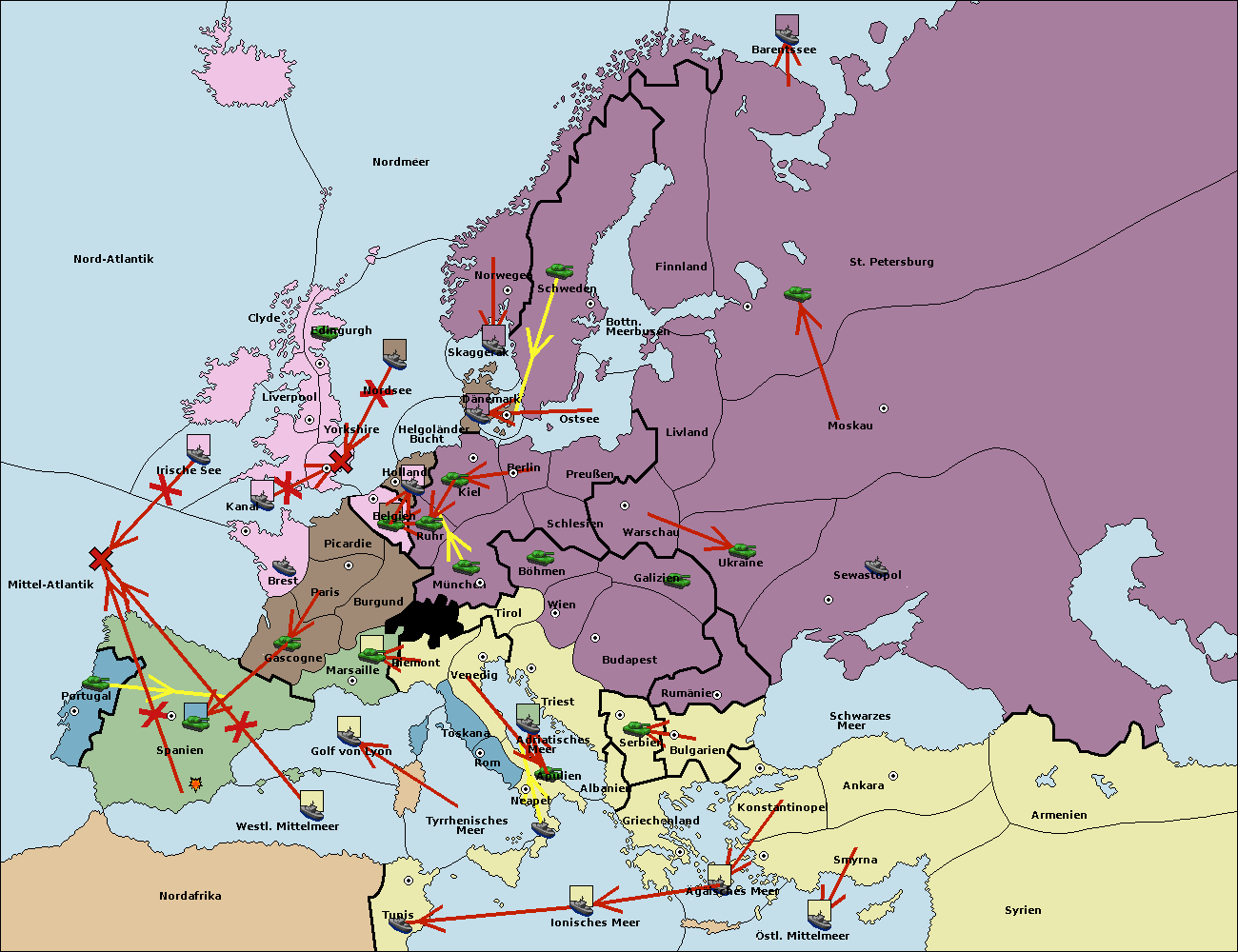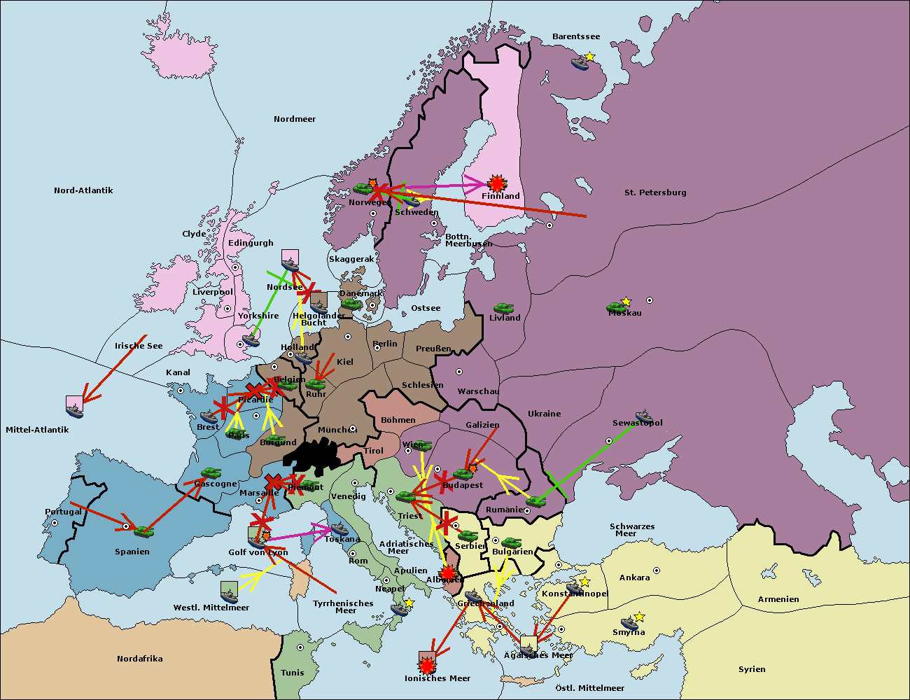 • Die Flotte in St. Petersburg (Nordküste) move nach Norwegen.