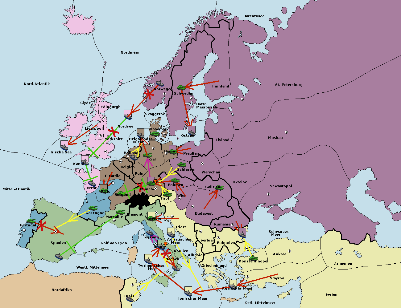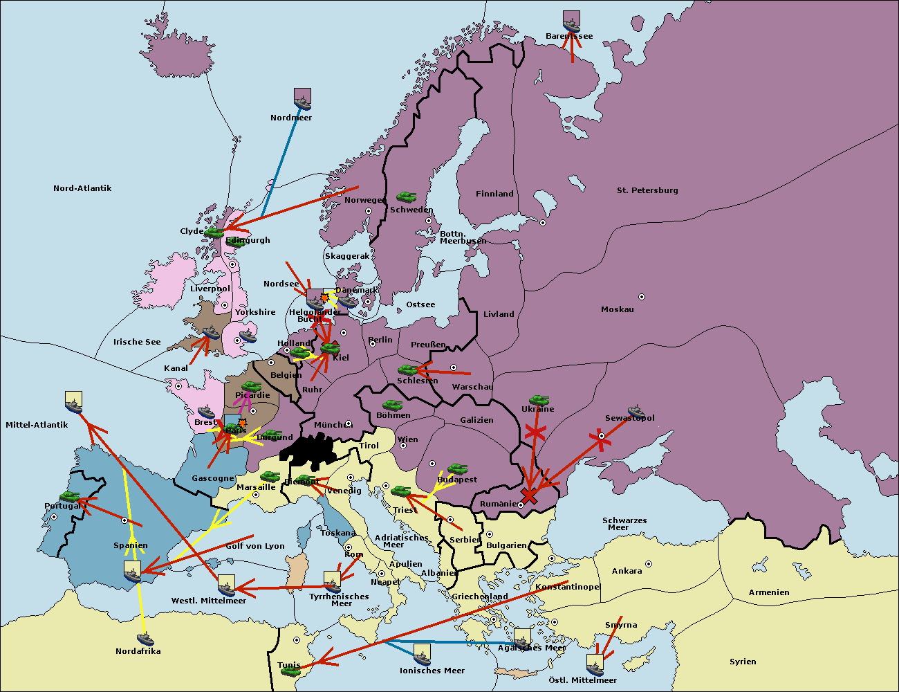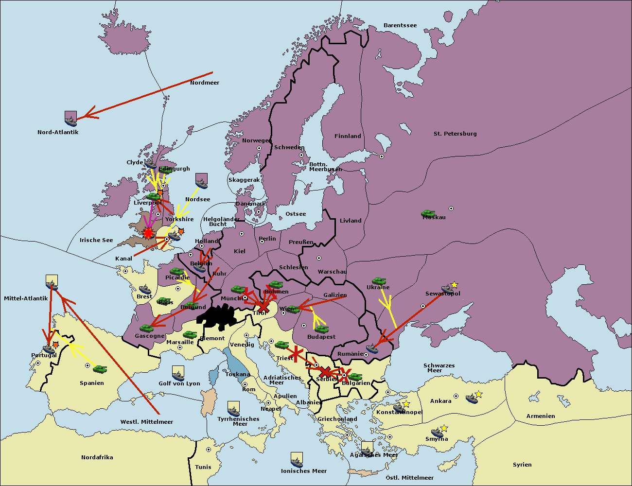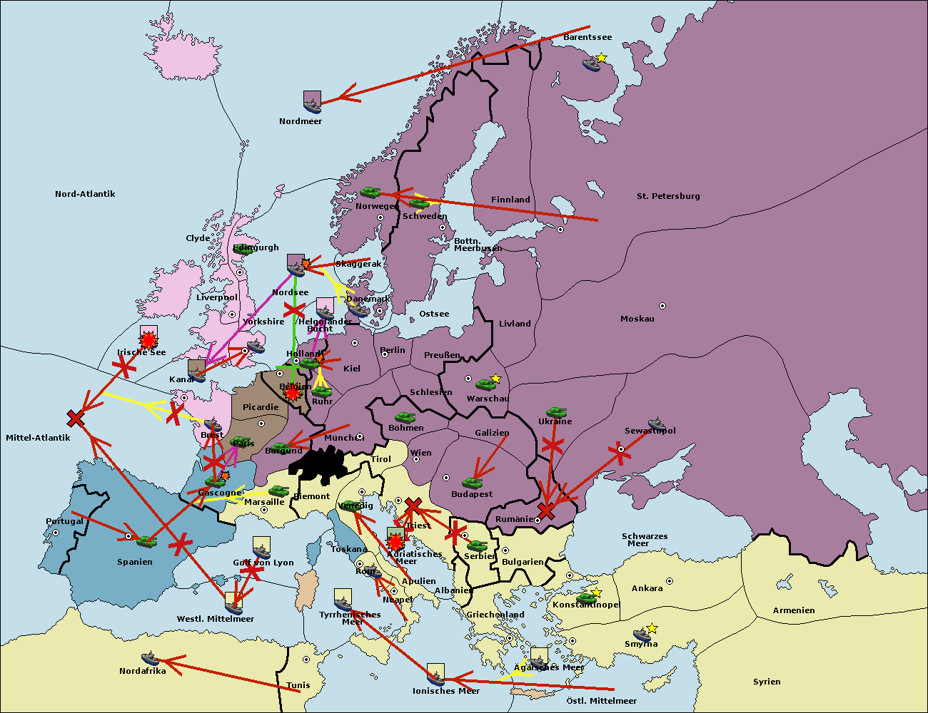 • Die Flotte in St. Petersburg (Nordküste) move nach Norwegen.