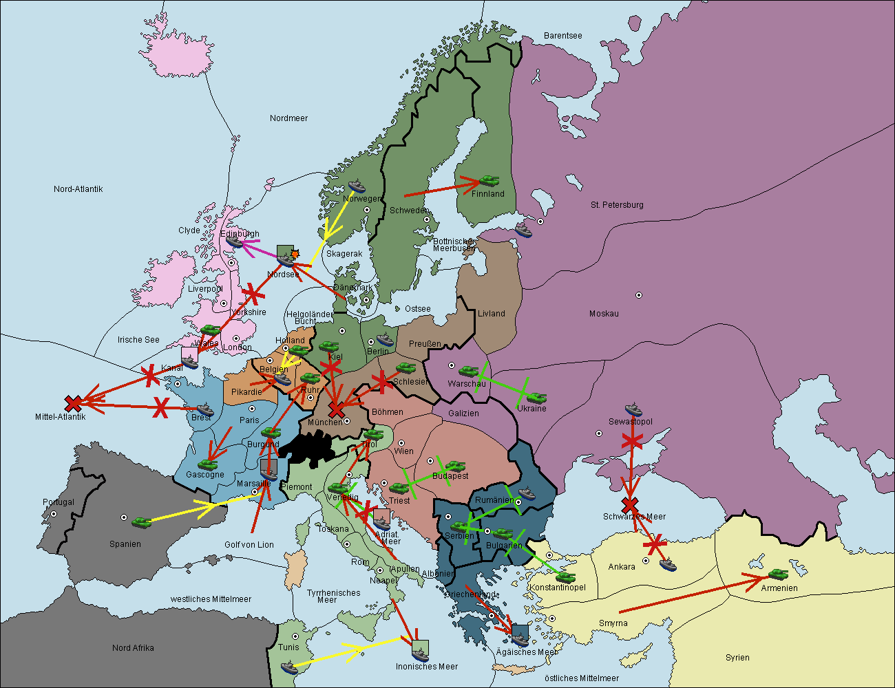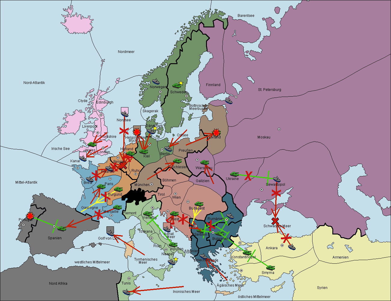• Die Armee in Konstantinopel support hold nach Bulgarien. (gescheitert)