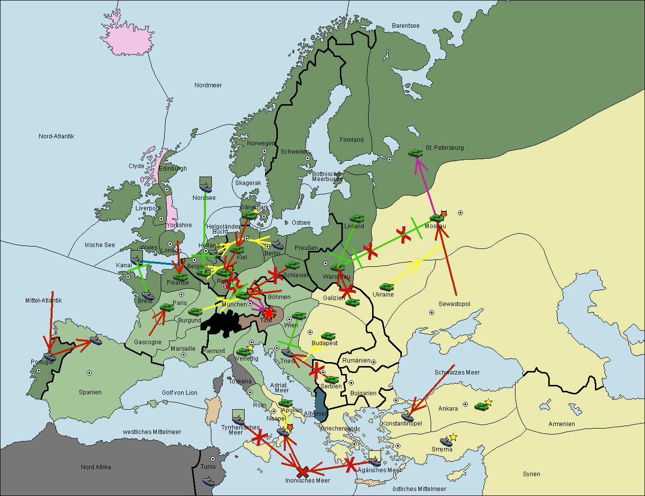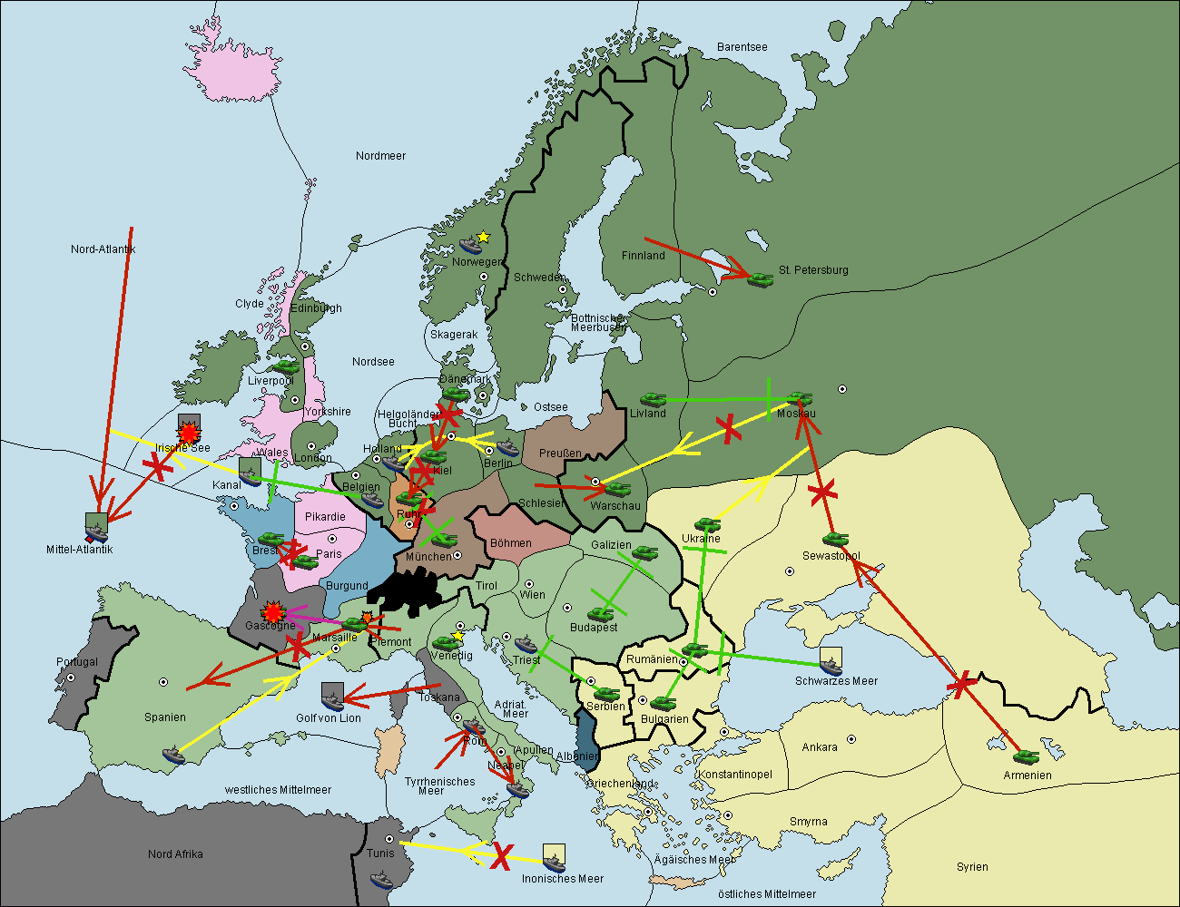 • Die Armee in Warschau support move nach Moskau von St. Petersburg. (gescheitert)