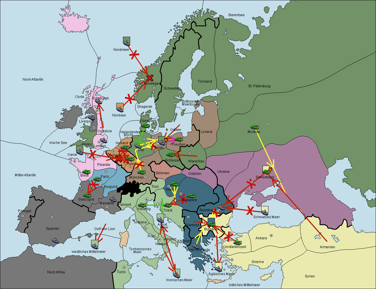 • Die Armee in Konstantinopel support hold nach Bulgarien.